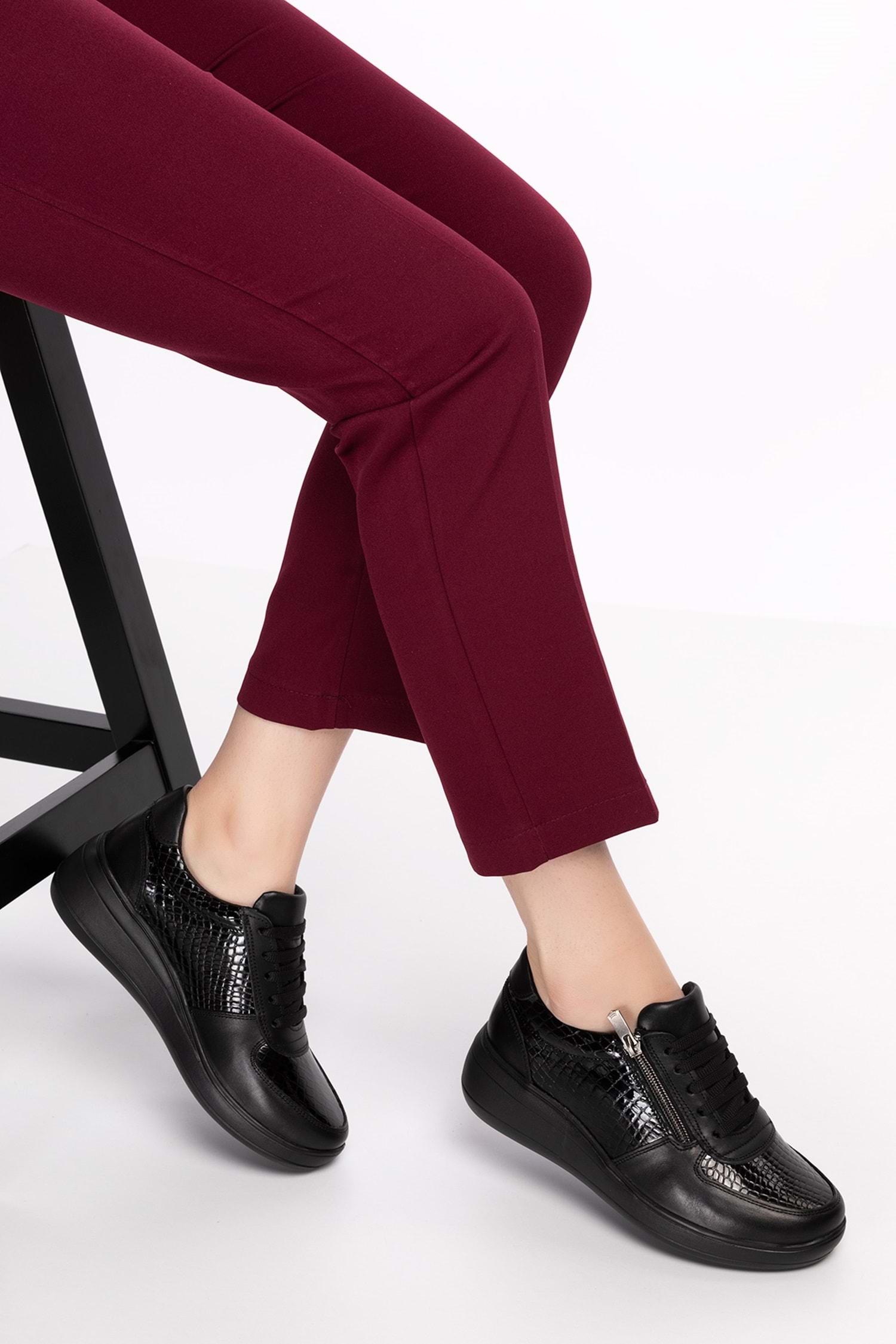 Hakiki Deri Anatomik Taban Rahat Ayakkabı Taraklı ve Şiş Ayaklar için Uygundur. Topuk Boyu 4 cm Fermuarlı Kolay Giyim
