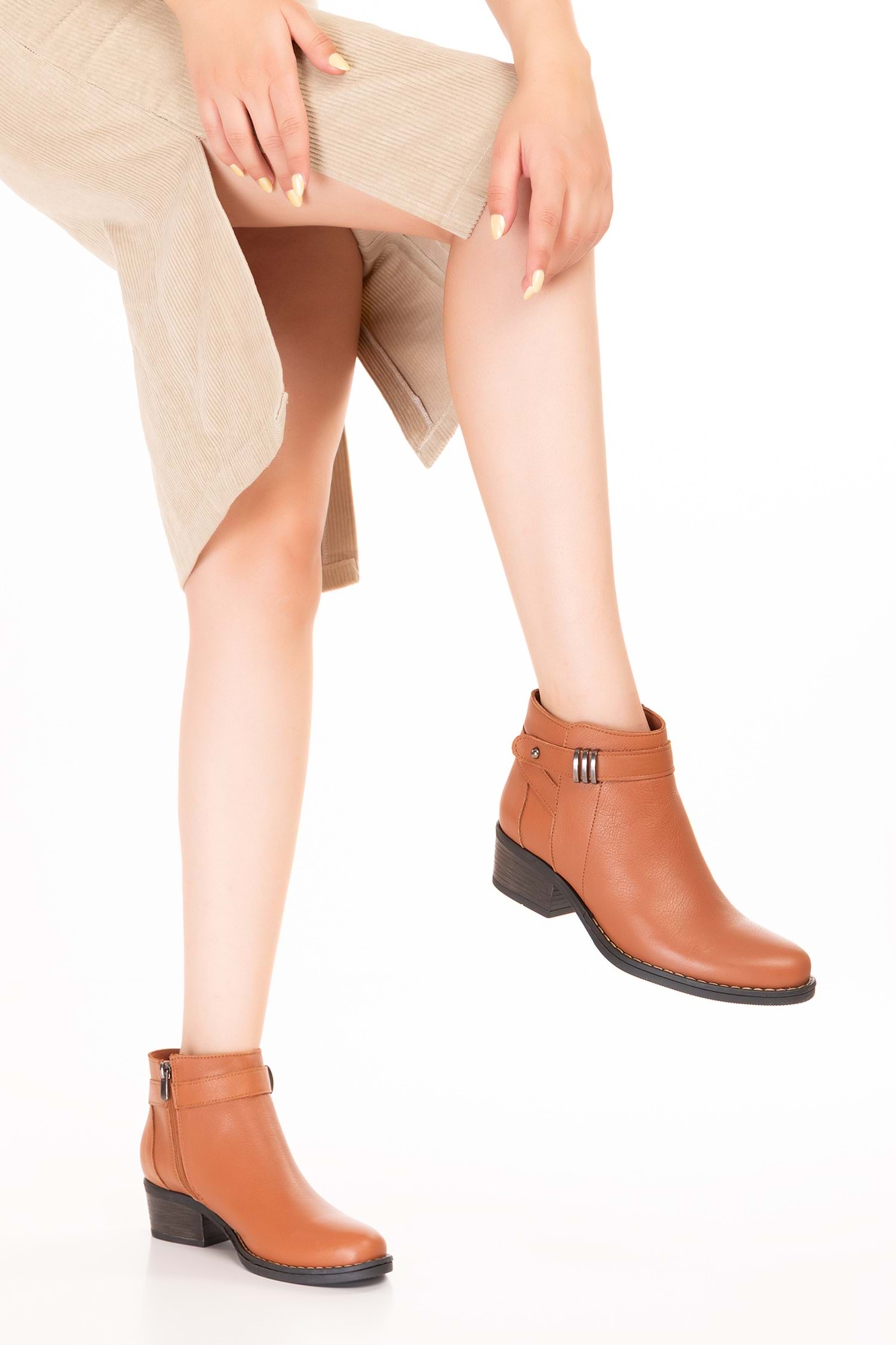 Yan fermuarı sayesinde kolay giyilip çıkarılabilirken, sade toka detayı modelin estetik görünümünü güçlendirir. Orta sertlikte topuğu ve kaymaz tabanı, gün boyu konfor ve denge sağlar.
