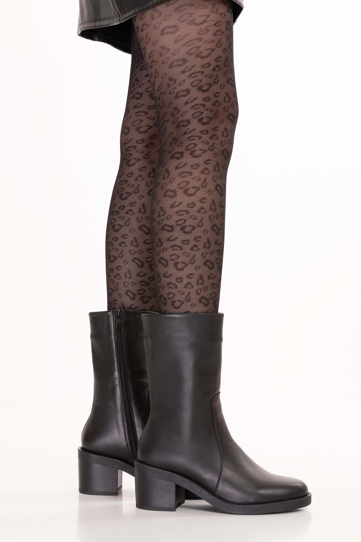 Hakiki Deri Orta Boy Kadın Bot – Siyah Renk & Klasik Topuklu Tasarım
