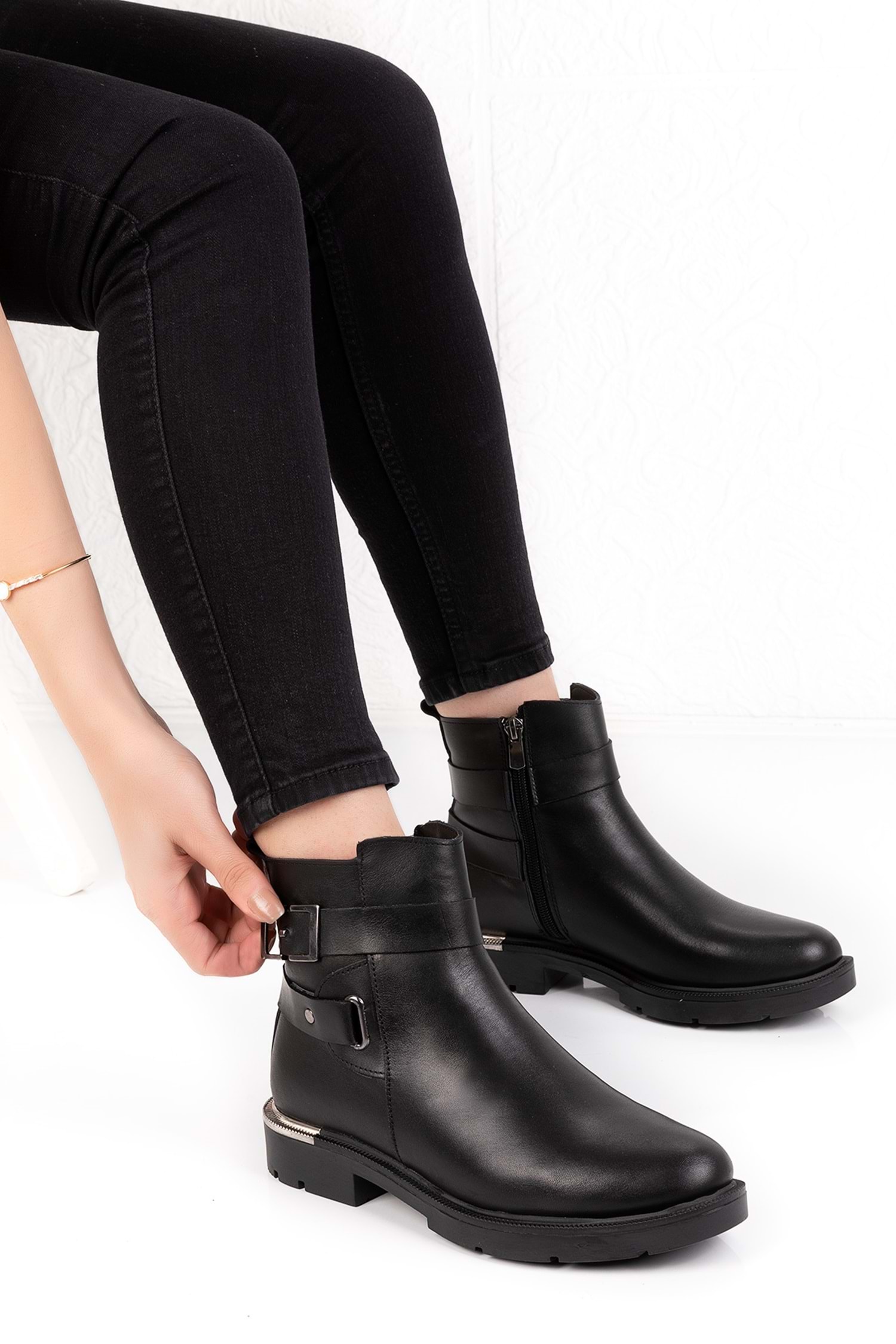 %100 Hakiki Deri Metal Topuk Detaylı Bot Topuk Yüksekliği 3 cm
