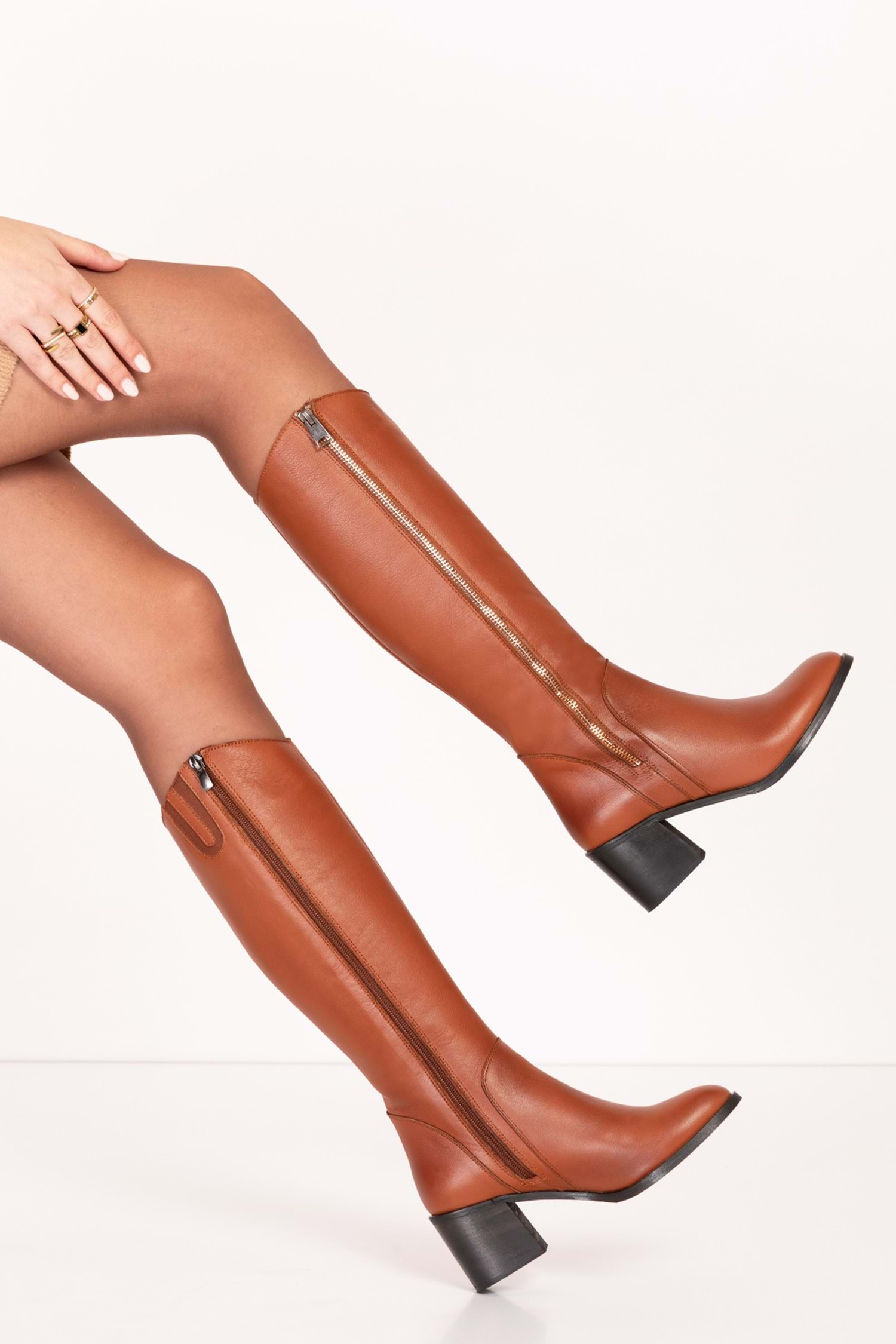 Hakiki Deri Topuklu Çizme İçi Sıcak Astar Topuk Boyu : 7 cm Konç : 39 cm Uzunluk : 40 cm Standart Kalıp Dış Fermuar Aksesuardır.
