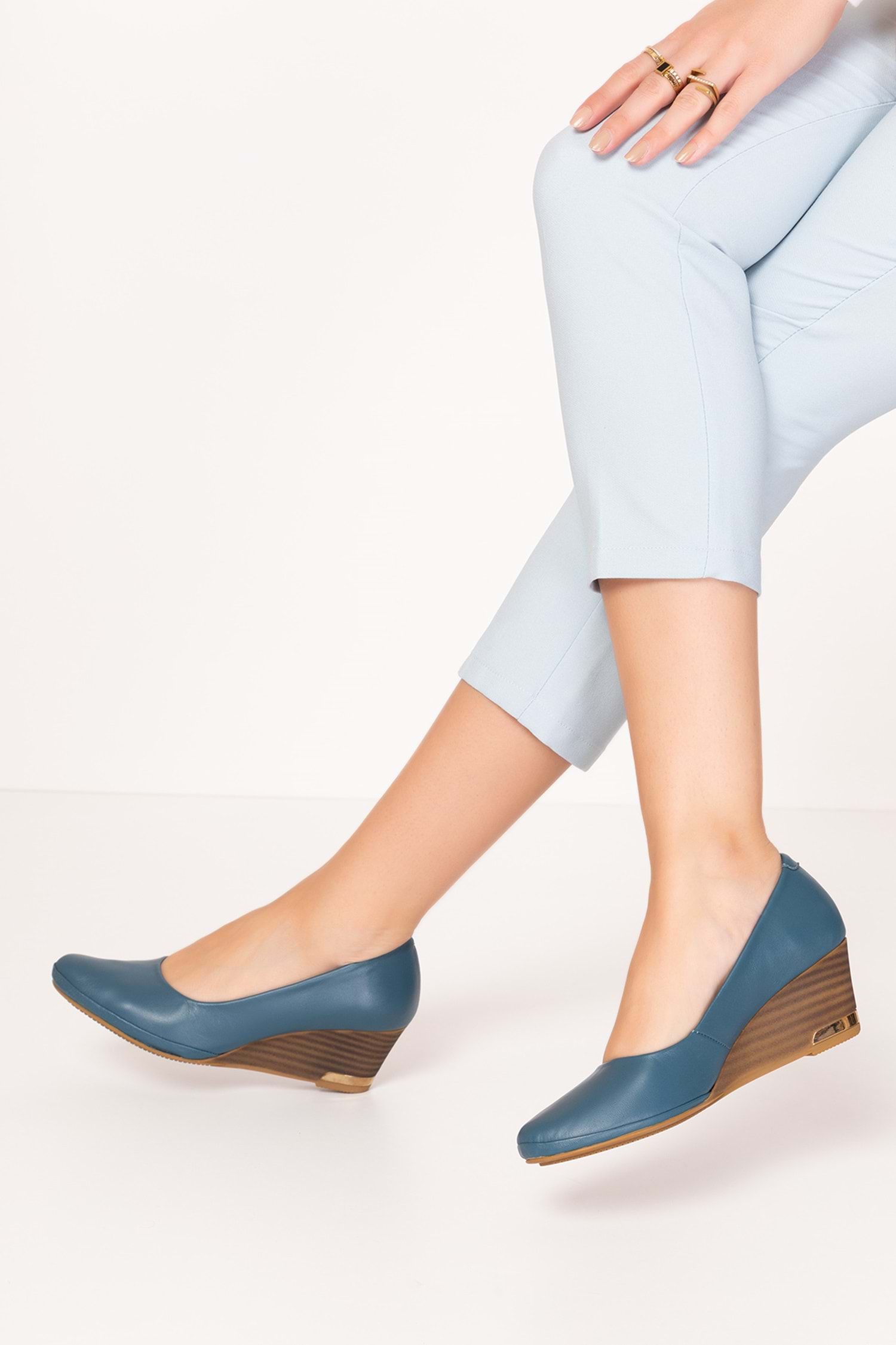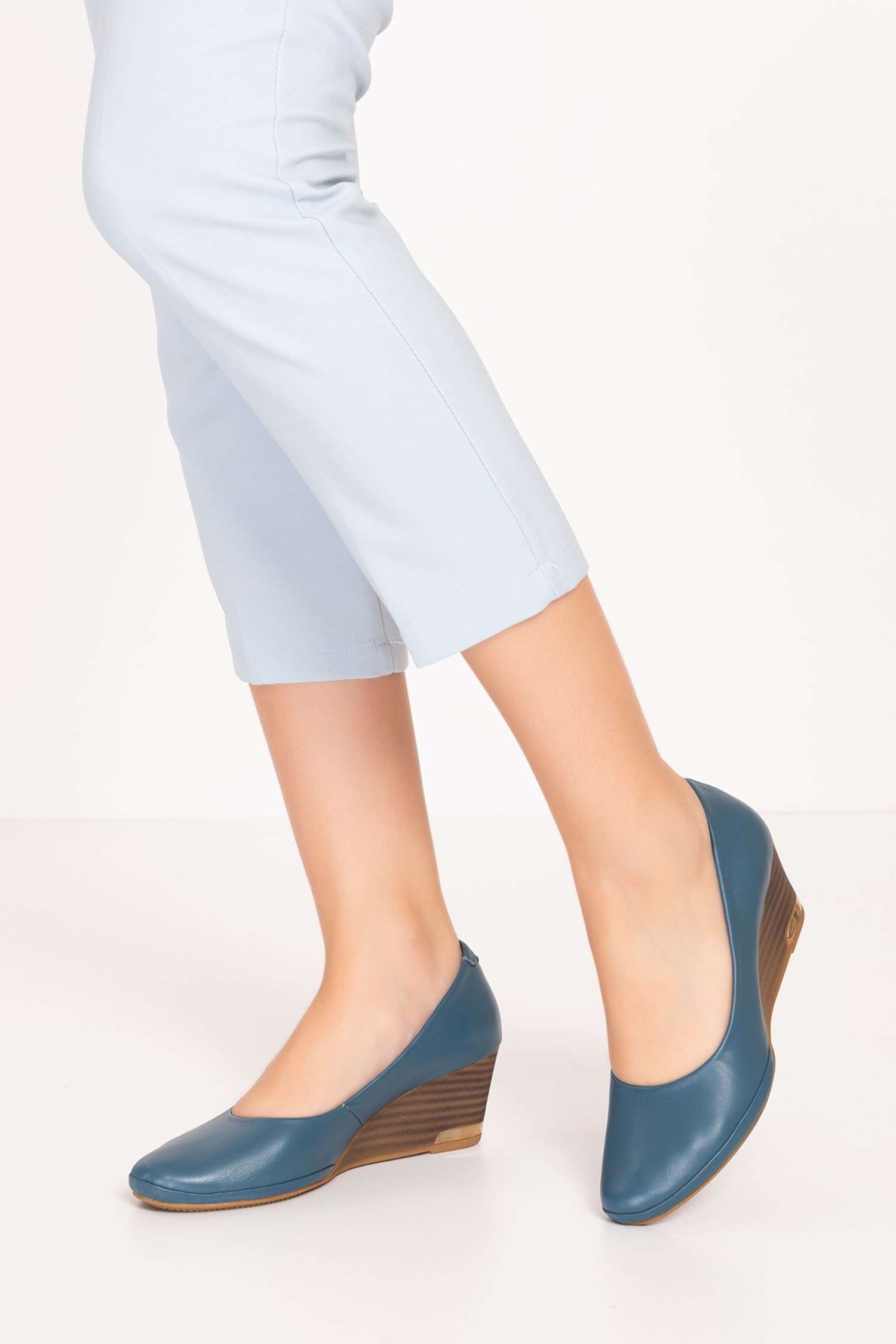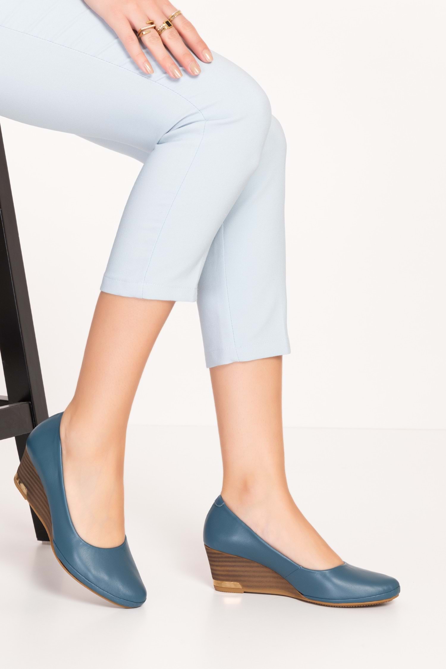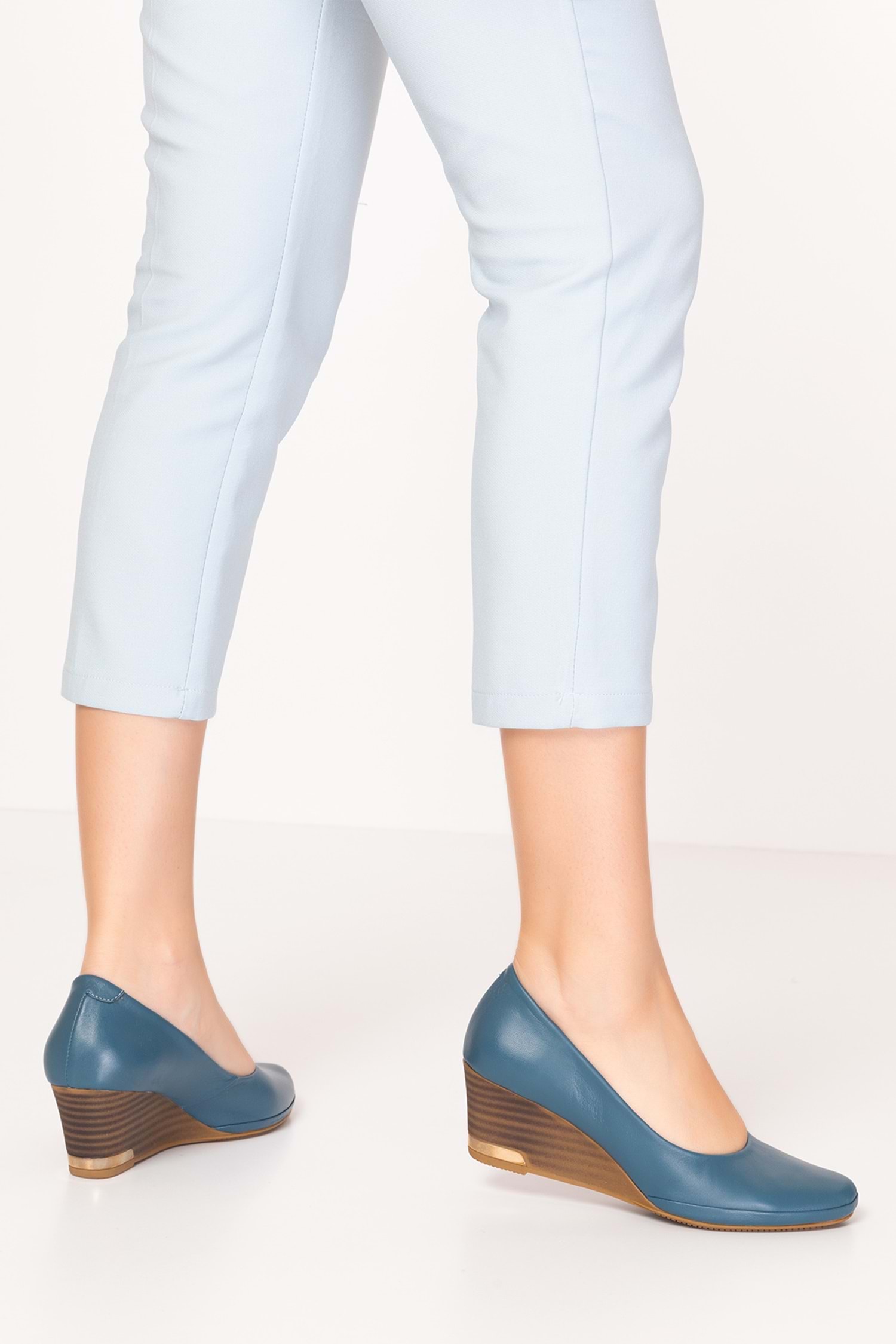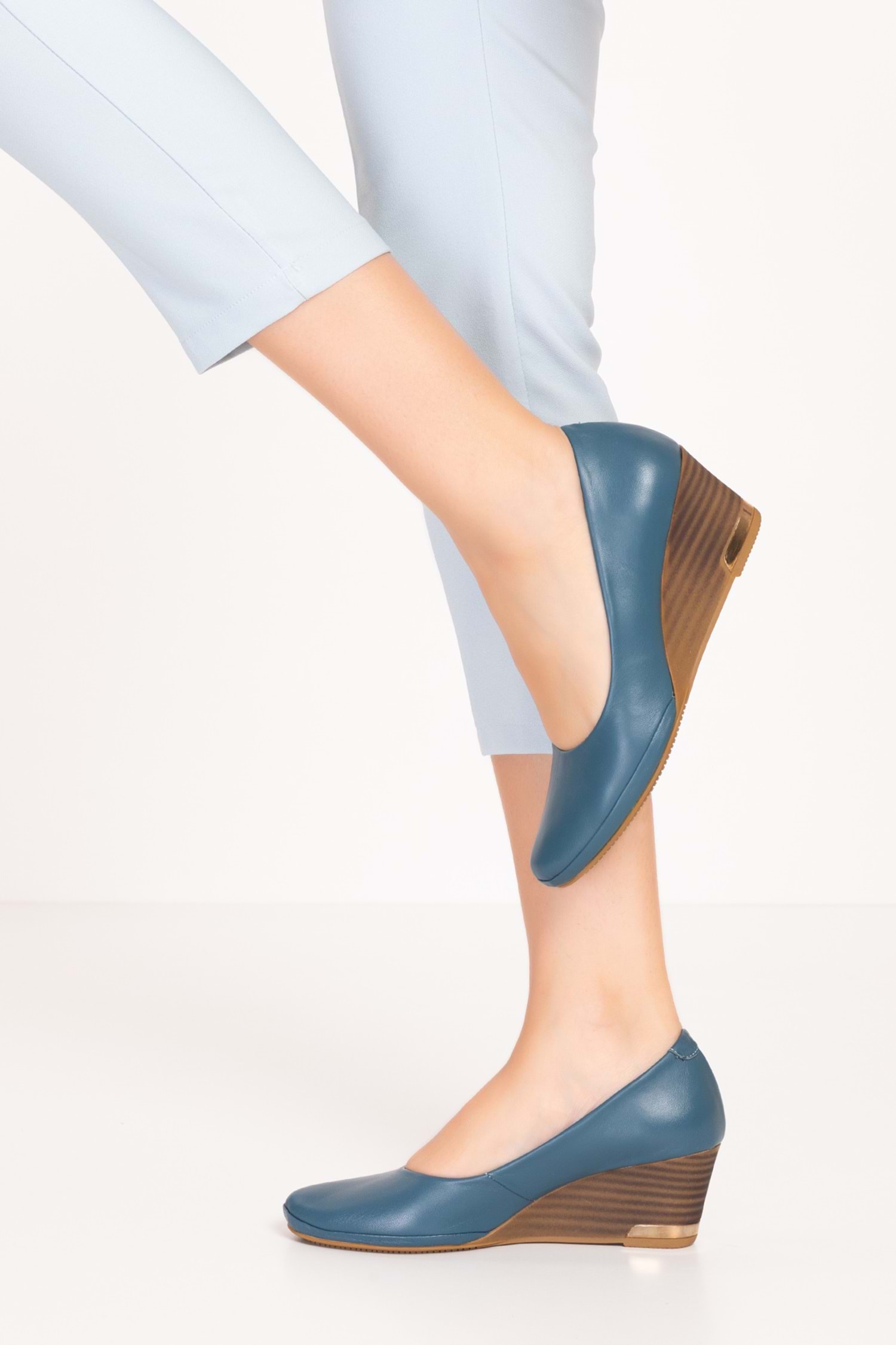 Gondol Hakiki Deri Dolgu Topuklu Günlük Ayakkabı alpx.350 - Mavi - 36