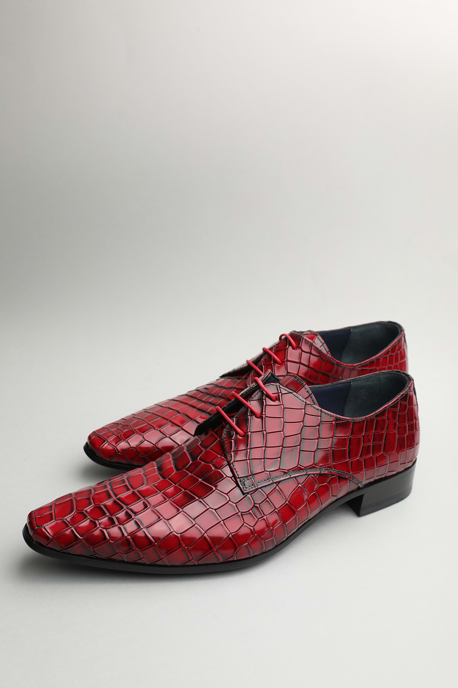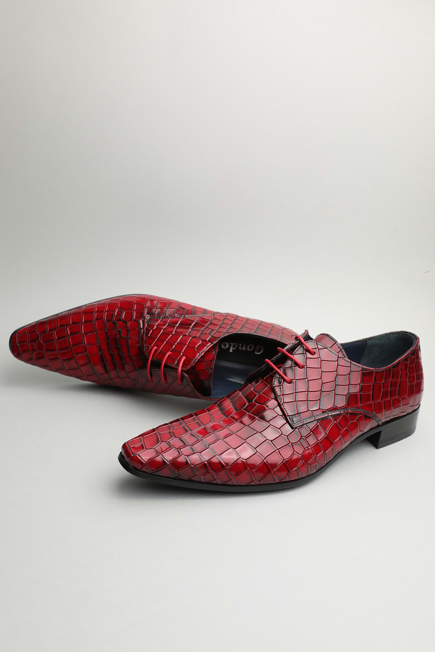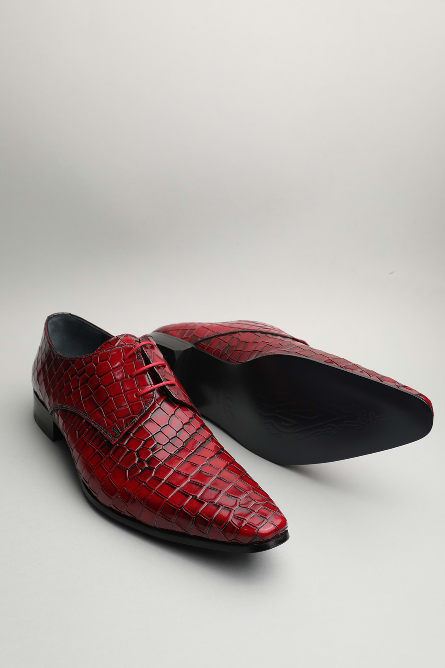 Gondol Erkek Hakiki Deri Sivri Burun Özel Deri Tasarımlı Kundura tz.613 - Kırmızı Croco - 41