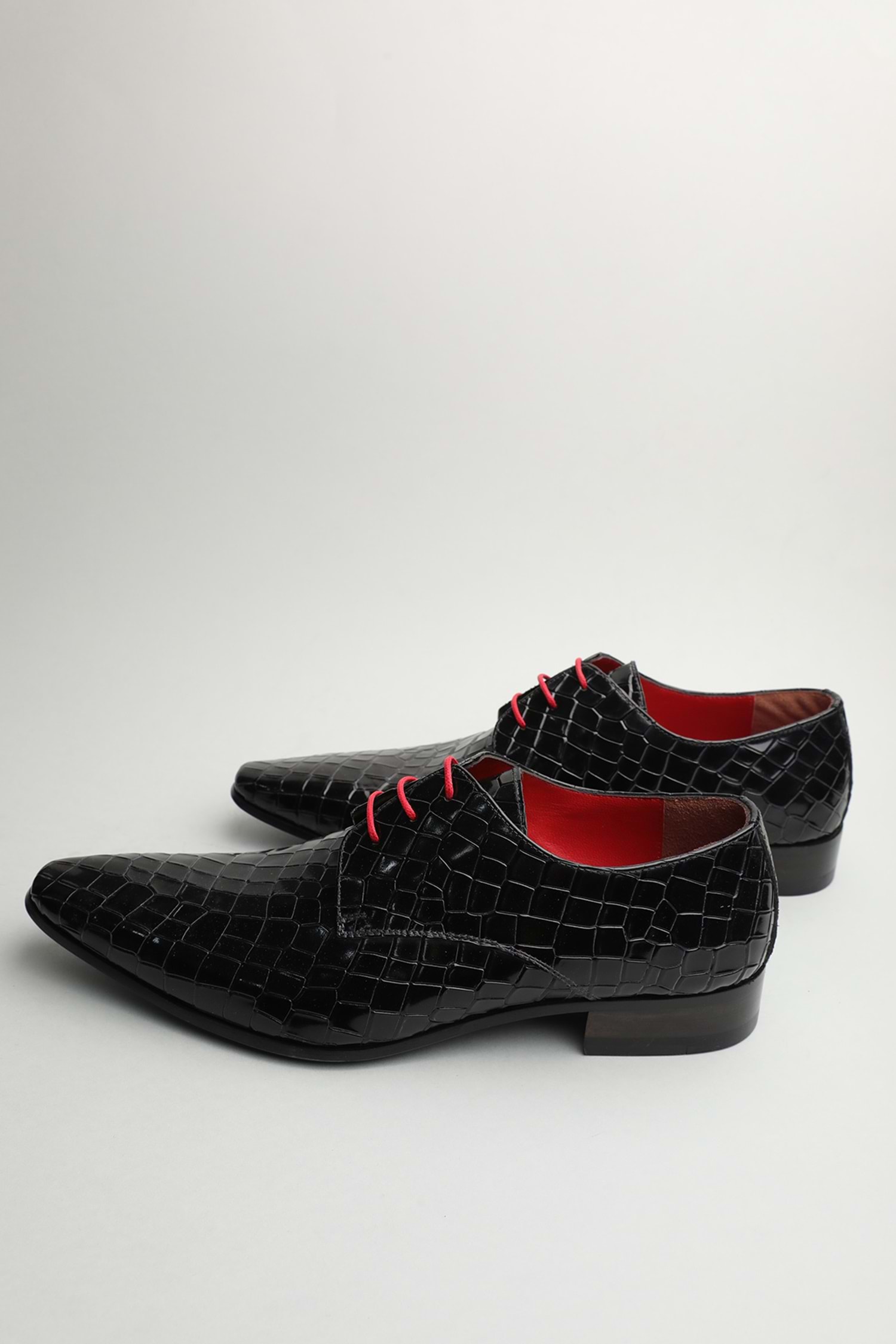 Gondol Erkek Hakiki Deri Sivri Burun Özel Deri Tasarımlı Kundura tz.622 - Siyah Croco - 44 - 353522155-33307