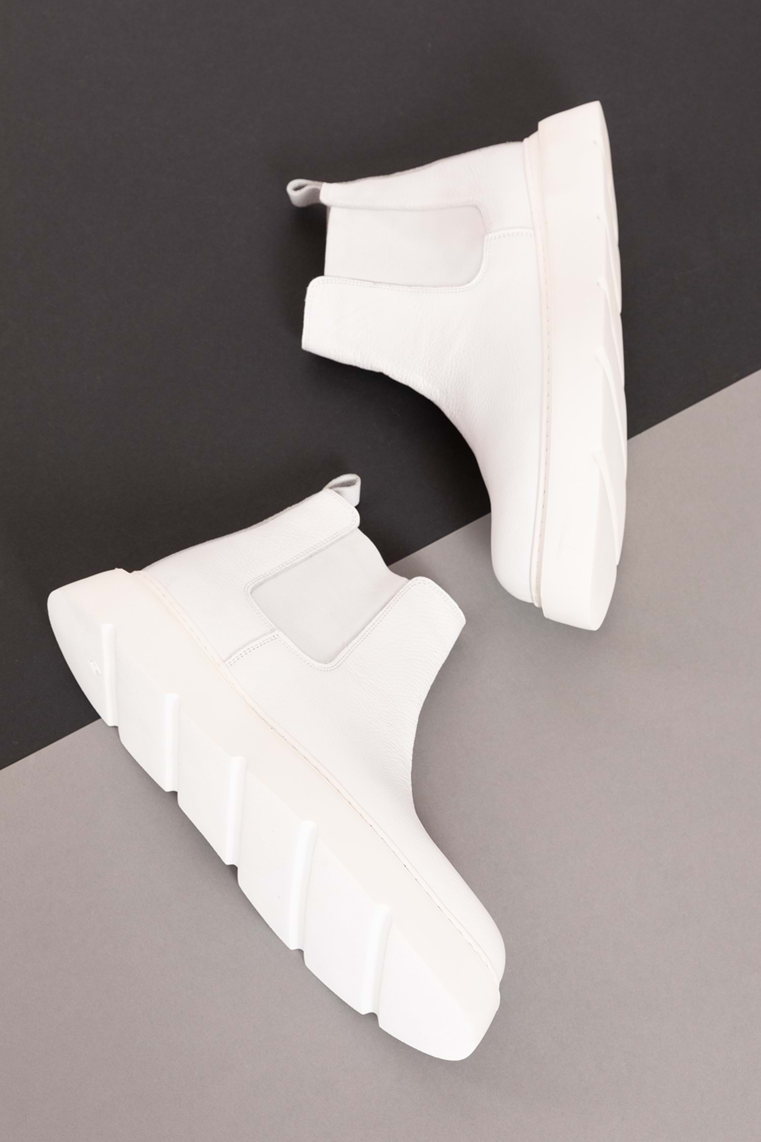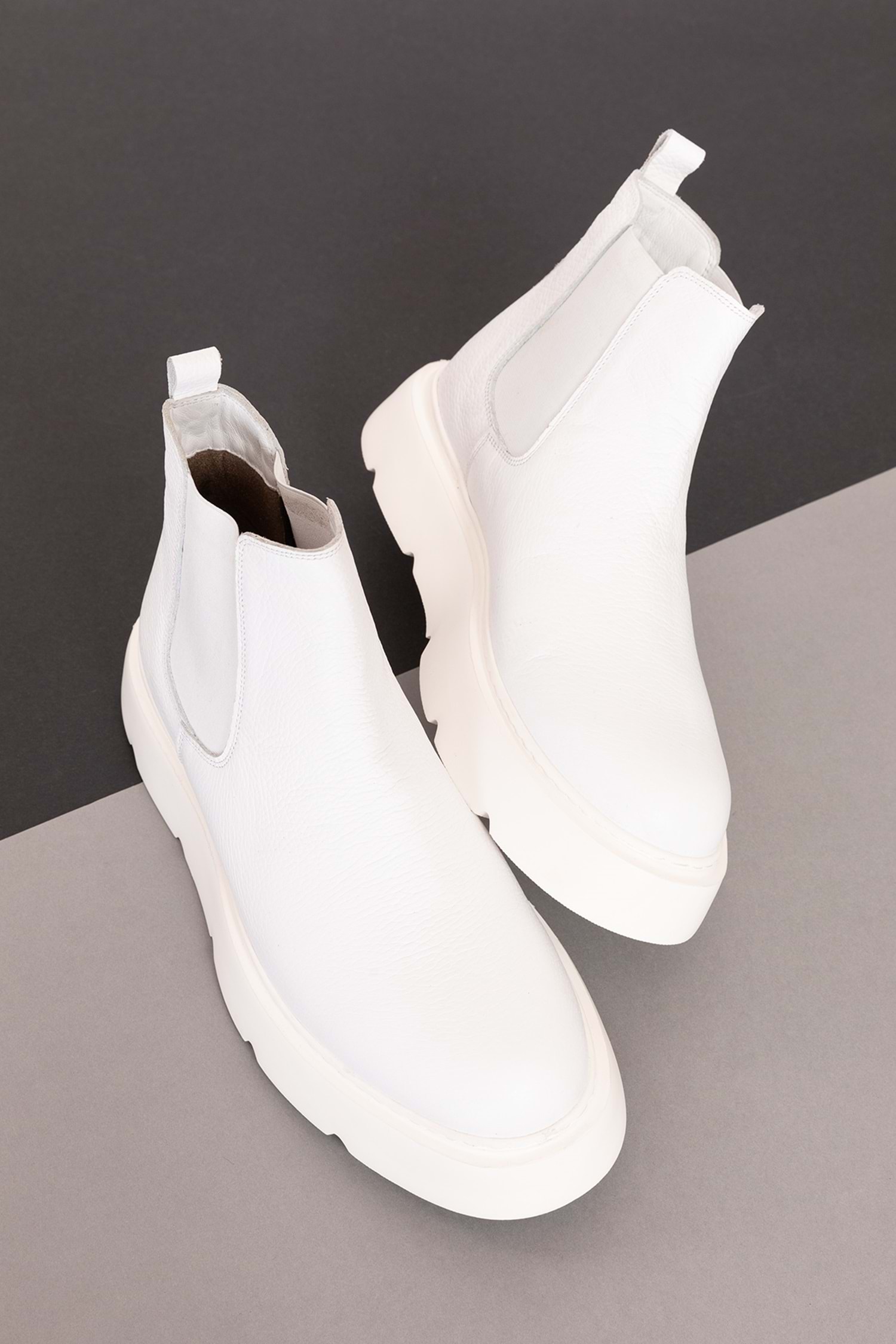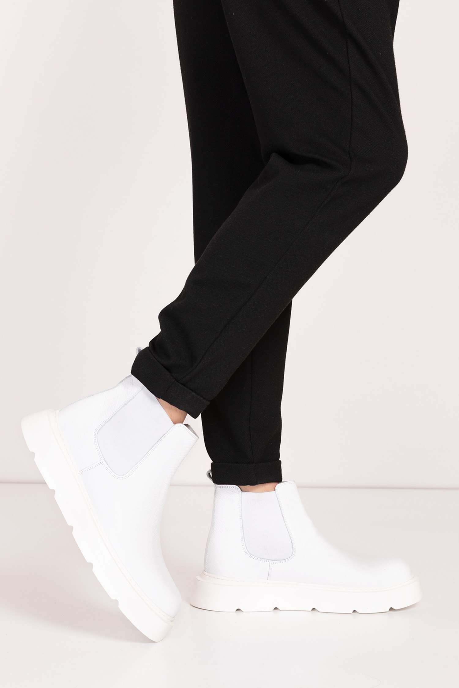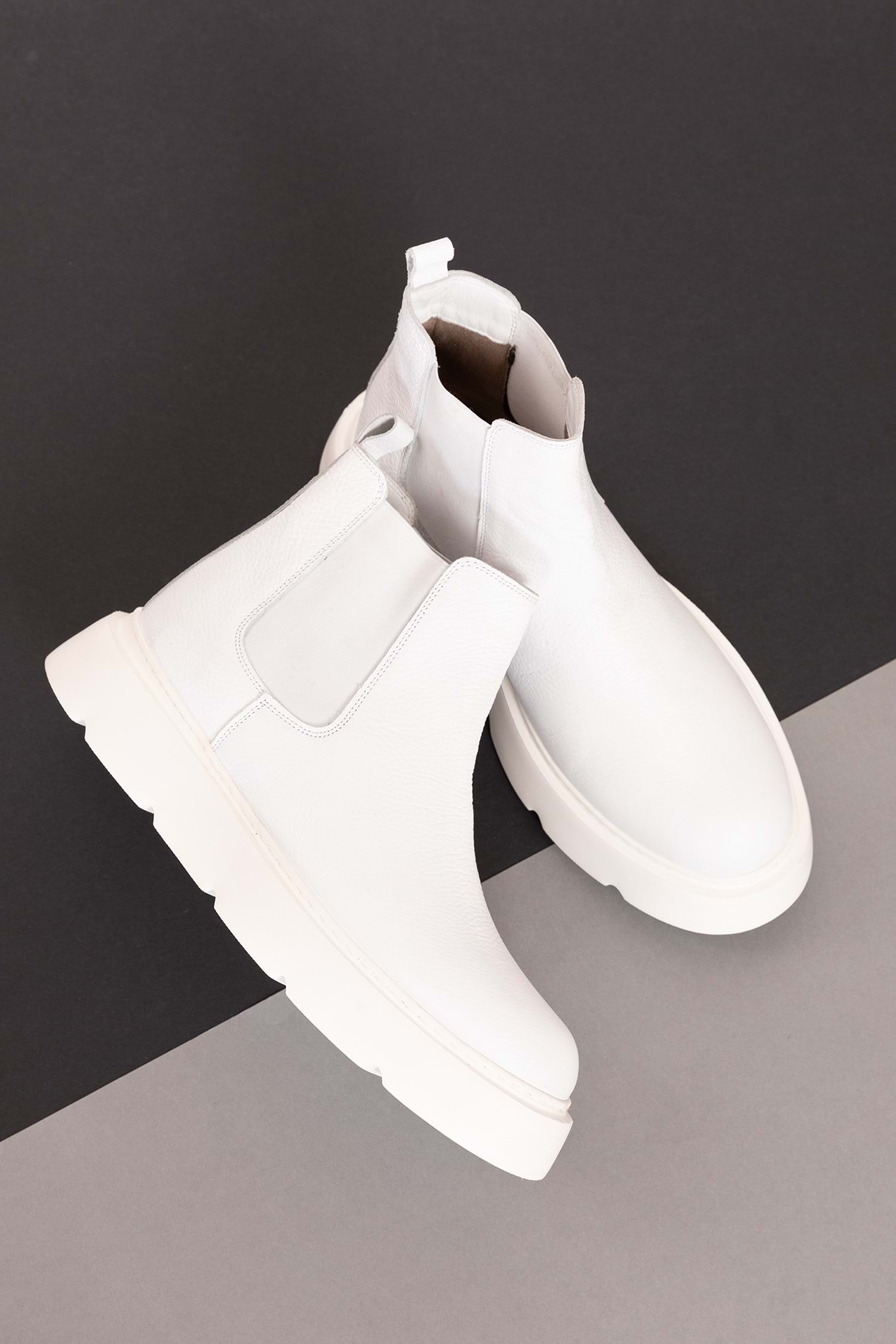 Gondol Erkek Hakiki Deri Hafif Eva Taban Yanları Lastikli Bot src.7004 - Beyaz - 41