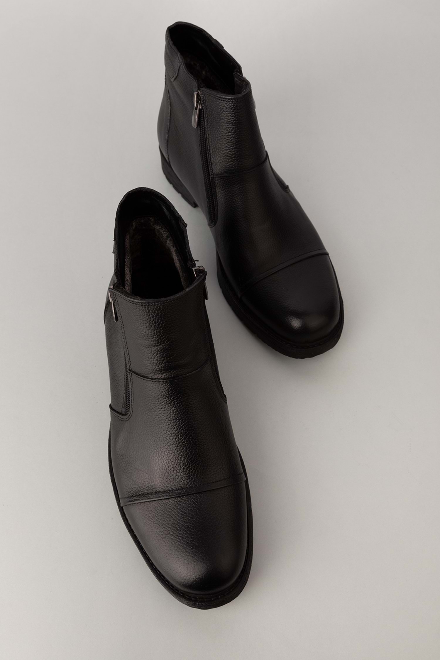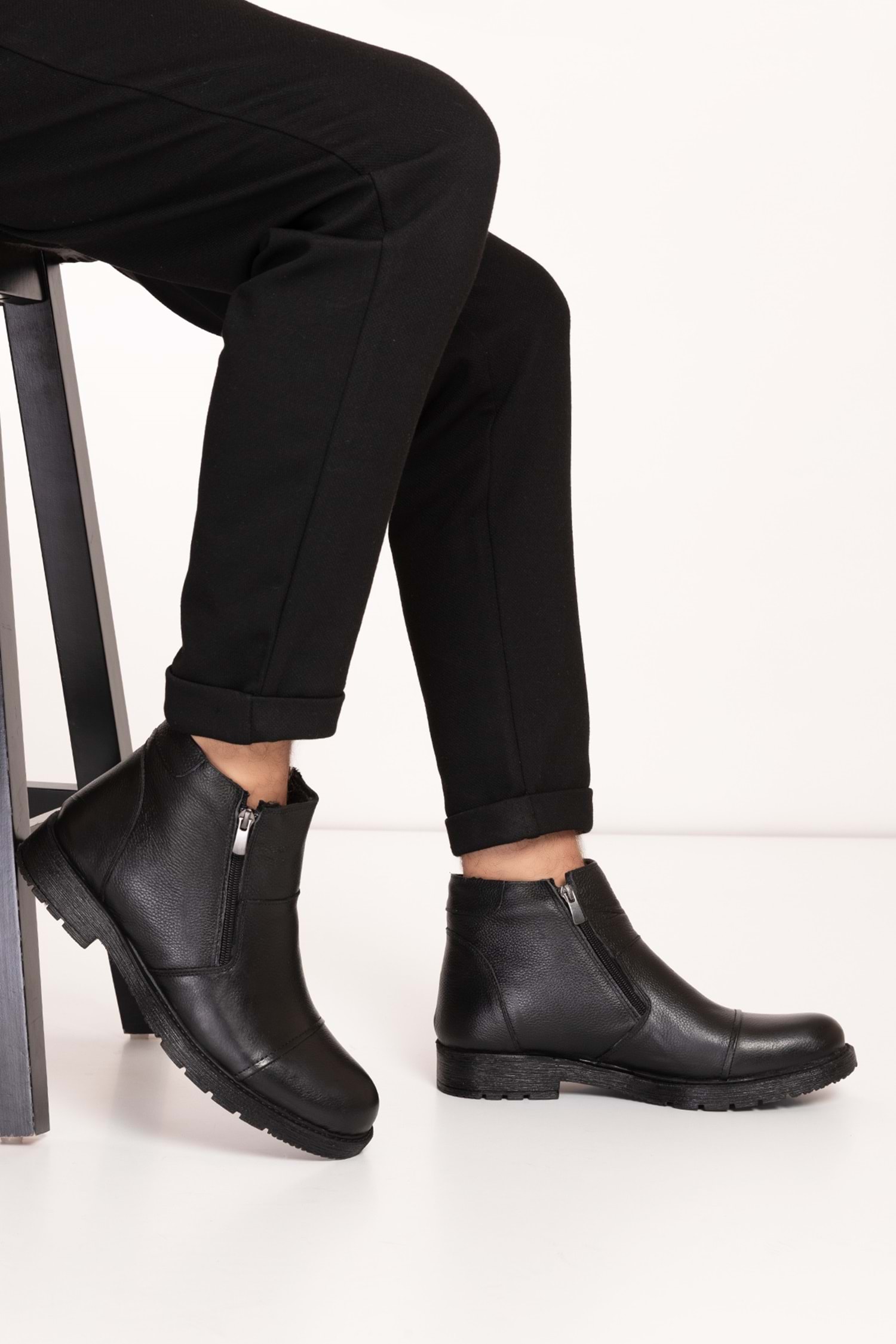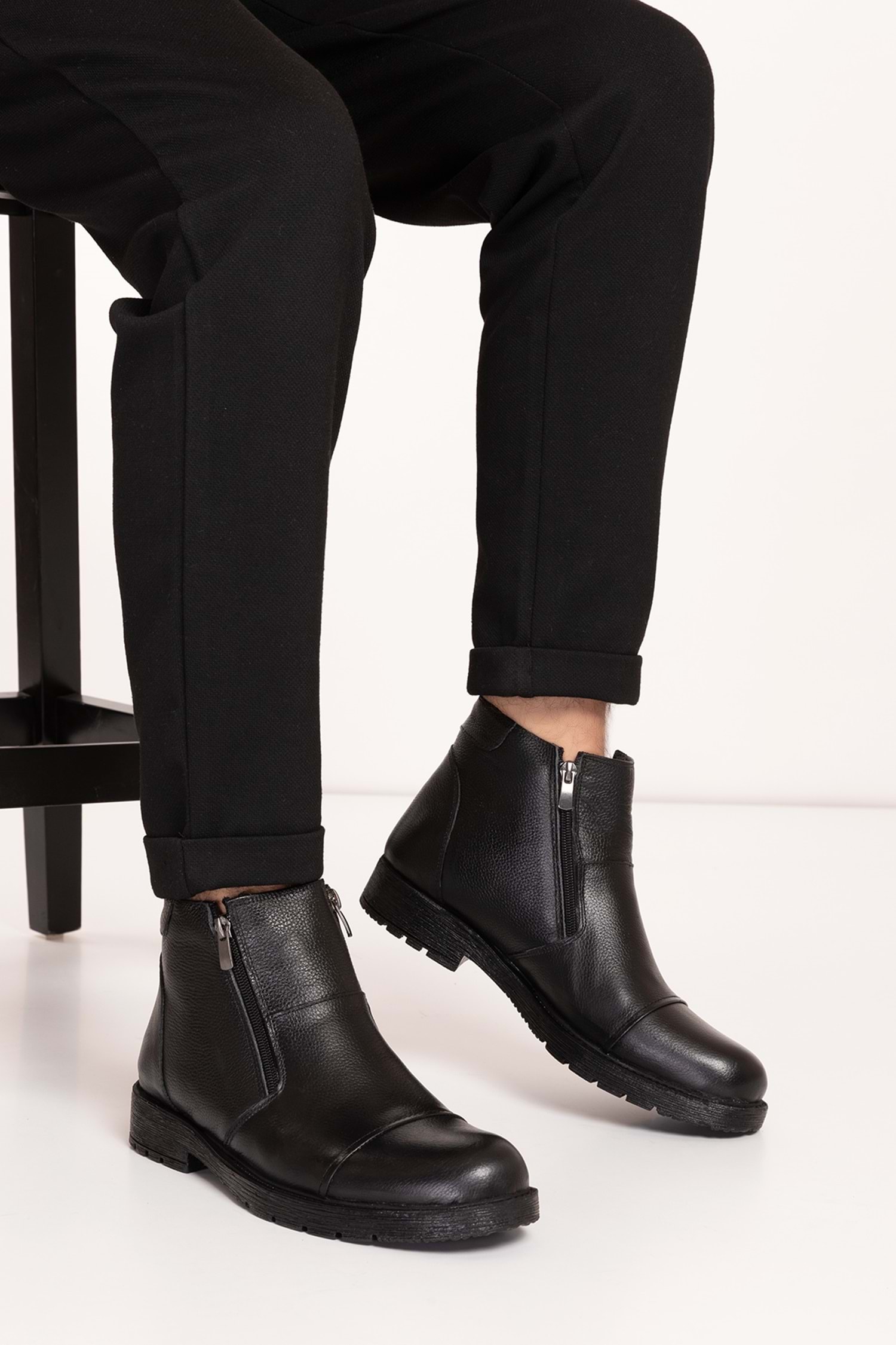 Gondol Erkek Hakiki Deri İçi Kürklü Çift Fermuarlı Günlük Bot kn.755 - Siyah - 44