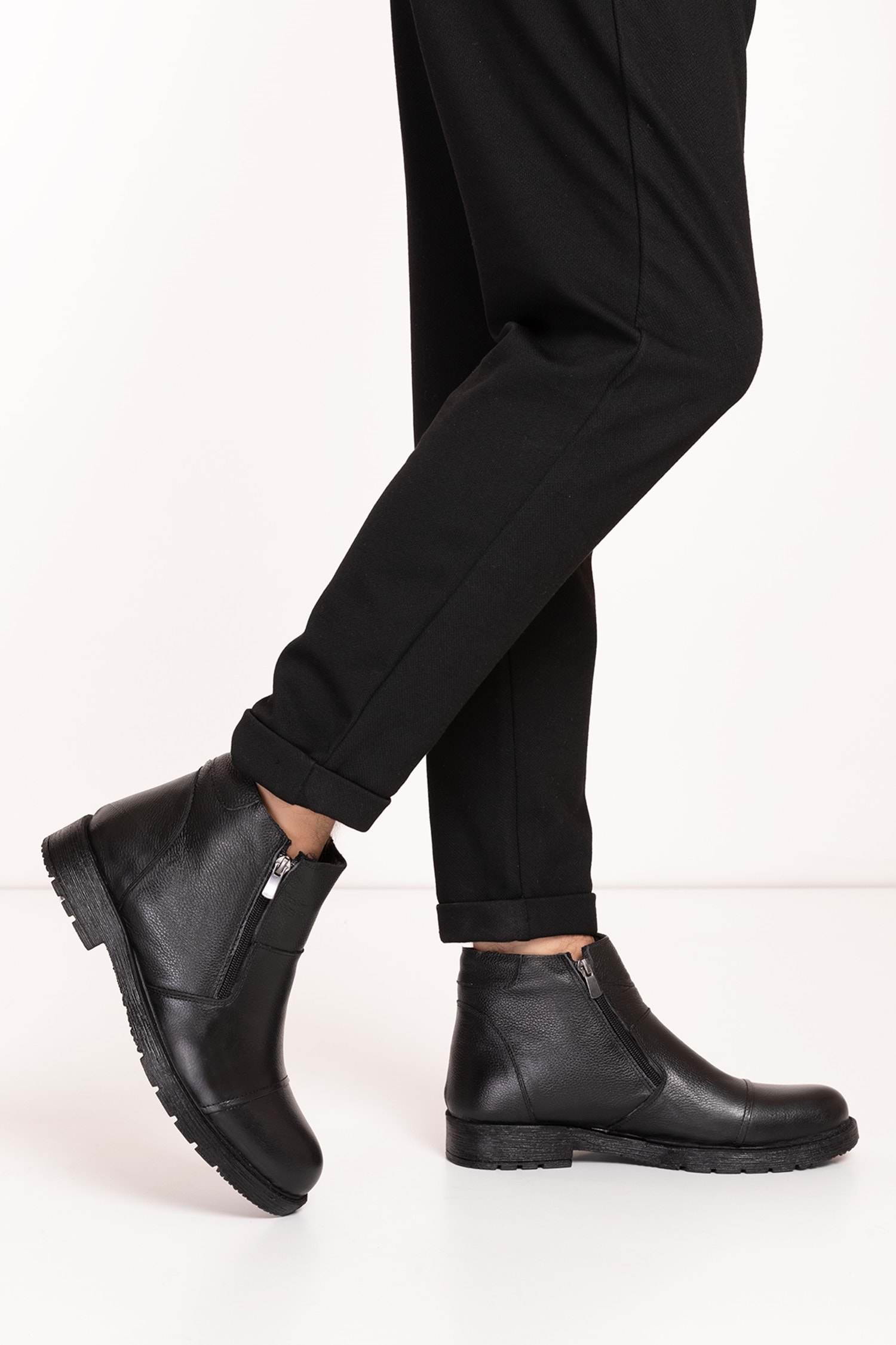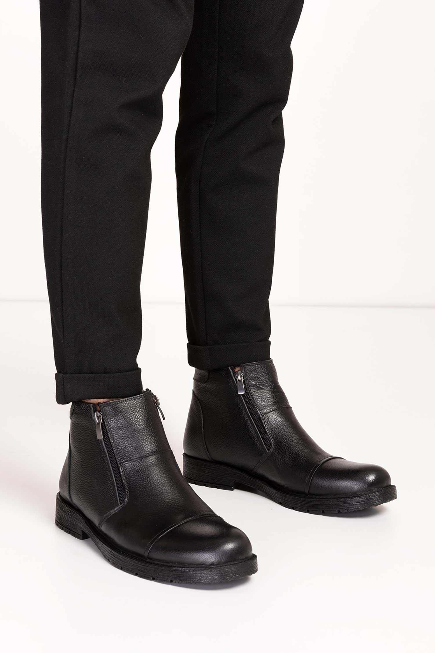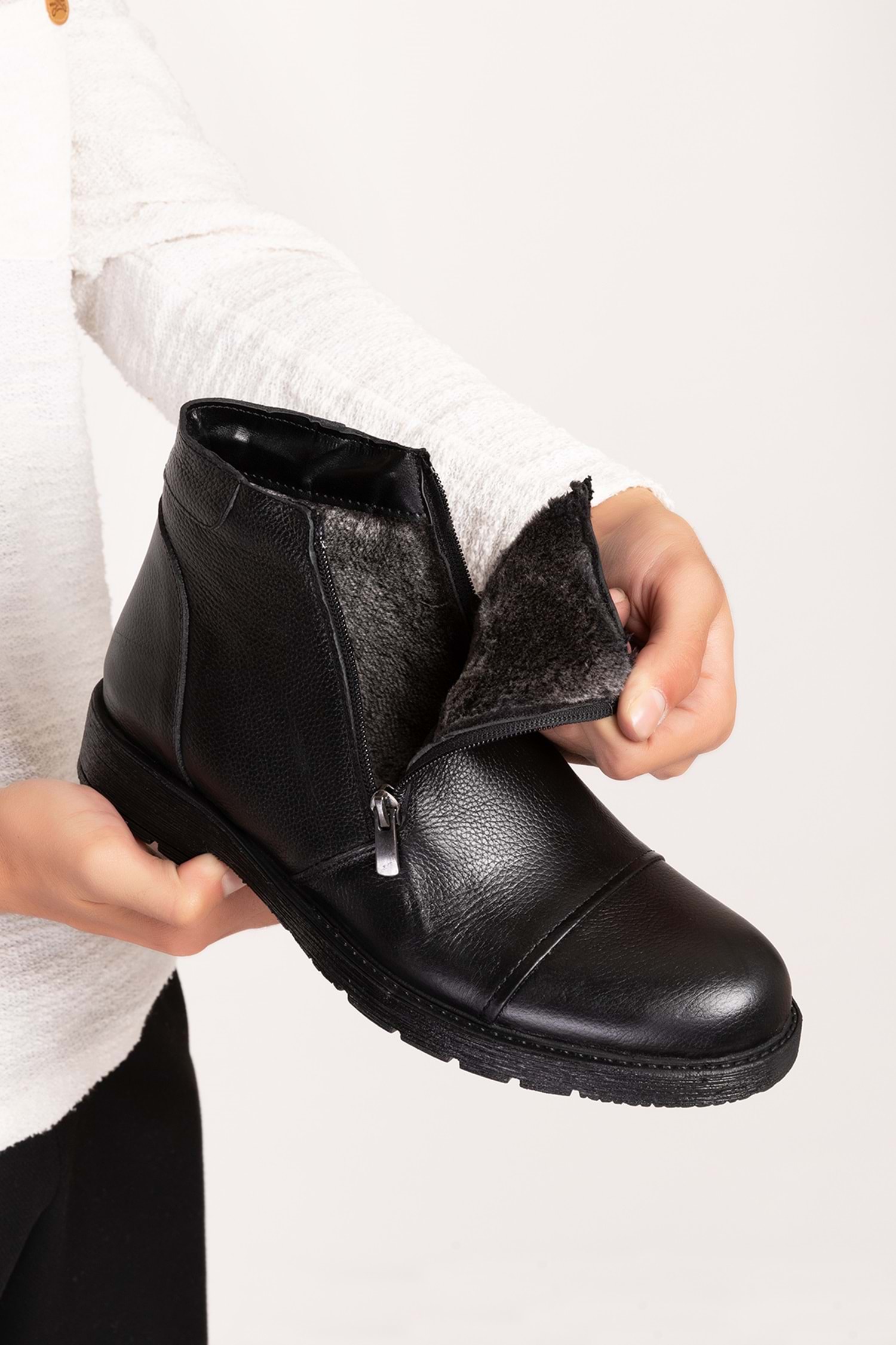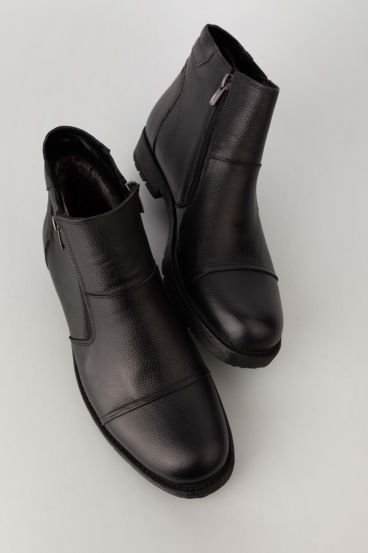 Gondol Erkek Hakiki Deri İçi Kürklü Çift Fermuarlı Günlük Bot kn.755 - Siyah - 44