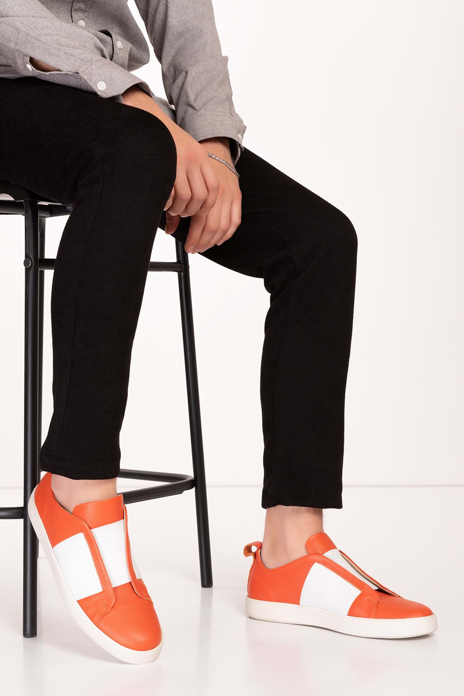 Gondol Erkek Hakiki Deri Lastikli Kolay Giyim Ayakkabı tx.7740 - Turuncu - 40
