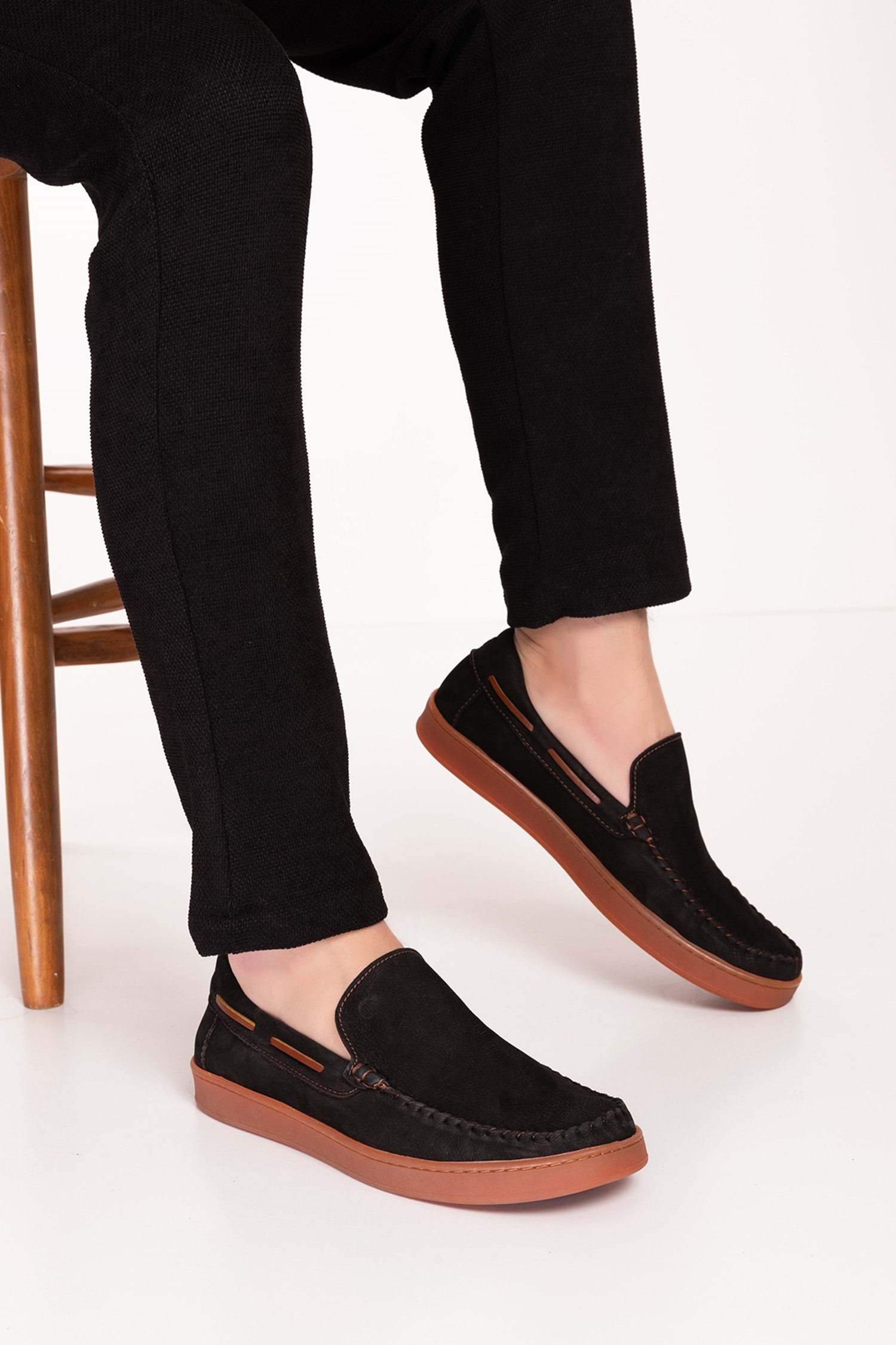 Gondol Erkek Hakiki Deri Rahat Taban Casual Ayakkabı tx.13930 - Siyah Nubuk - 42