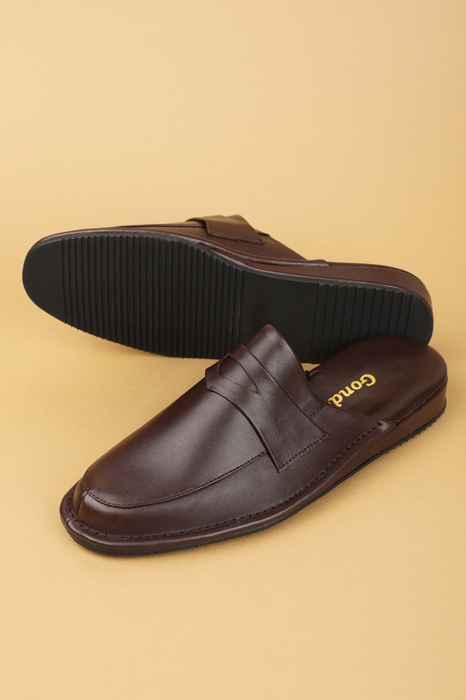 Gondol Erkek Hakiki Deri Damat Ev Terliği kayaş.9011 - Kahverengi - 42
