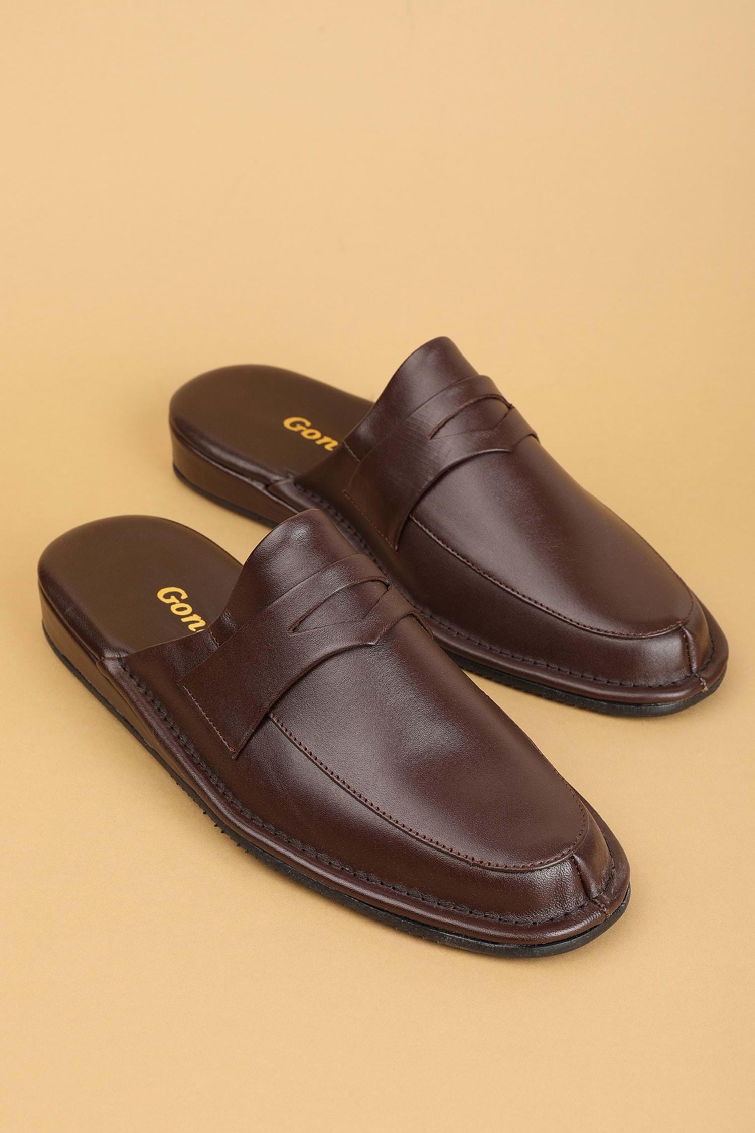 Gondol Erkek Hakiki Deri Damat Ev Terliği kayaş.9011 - Kahverengi - 43