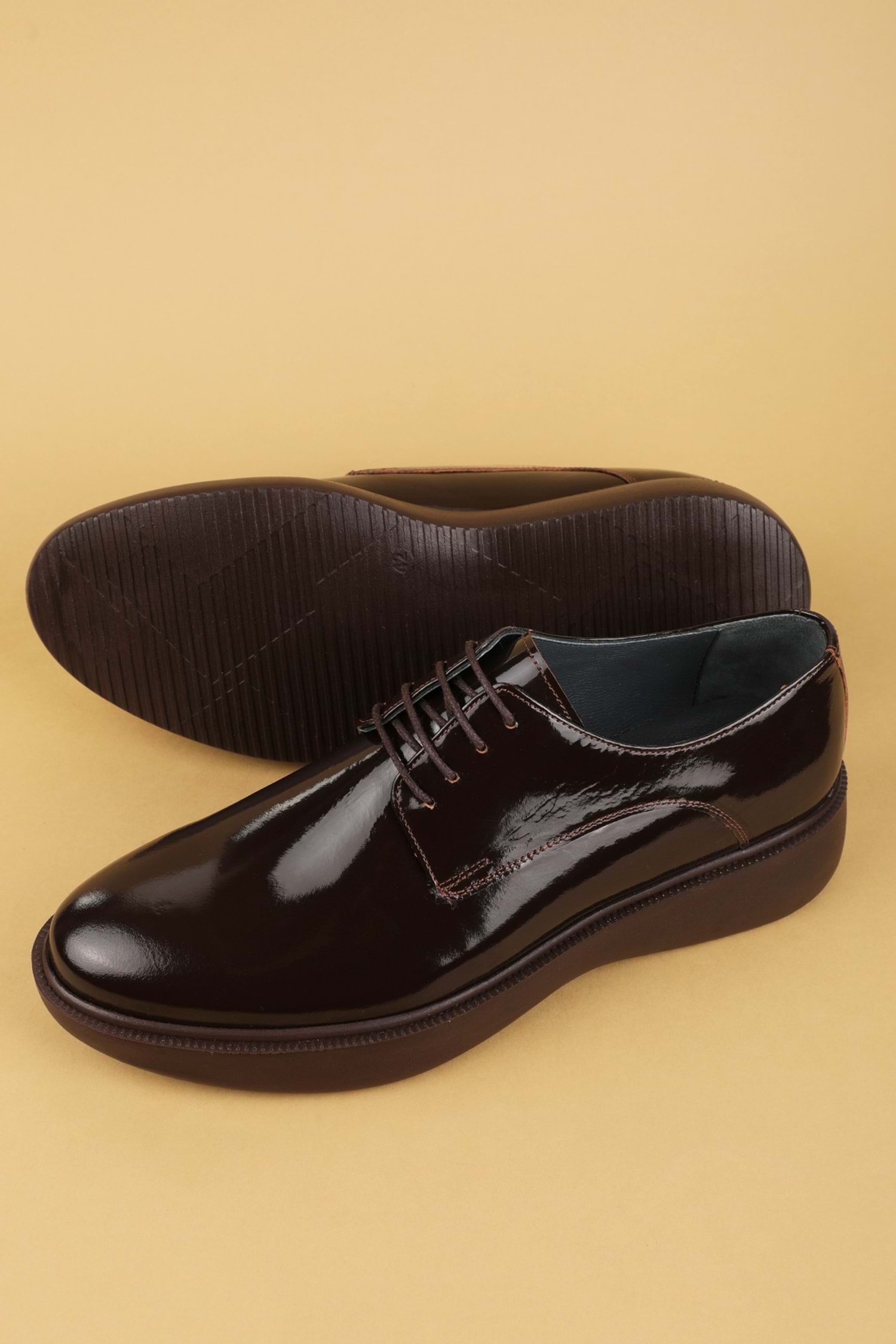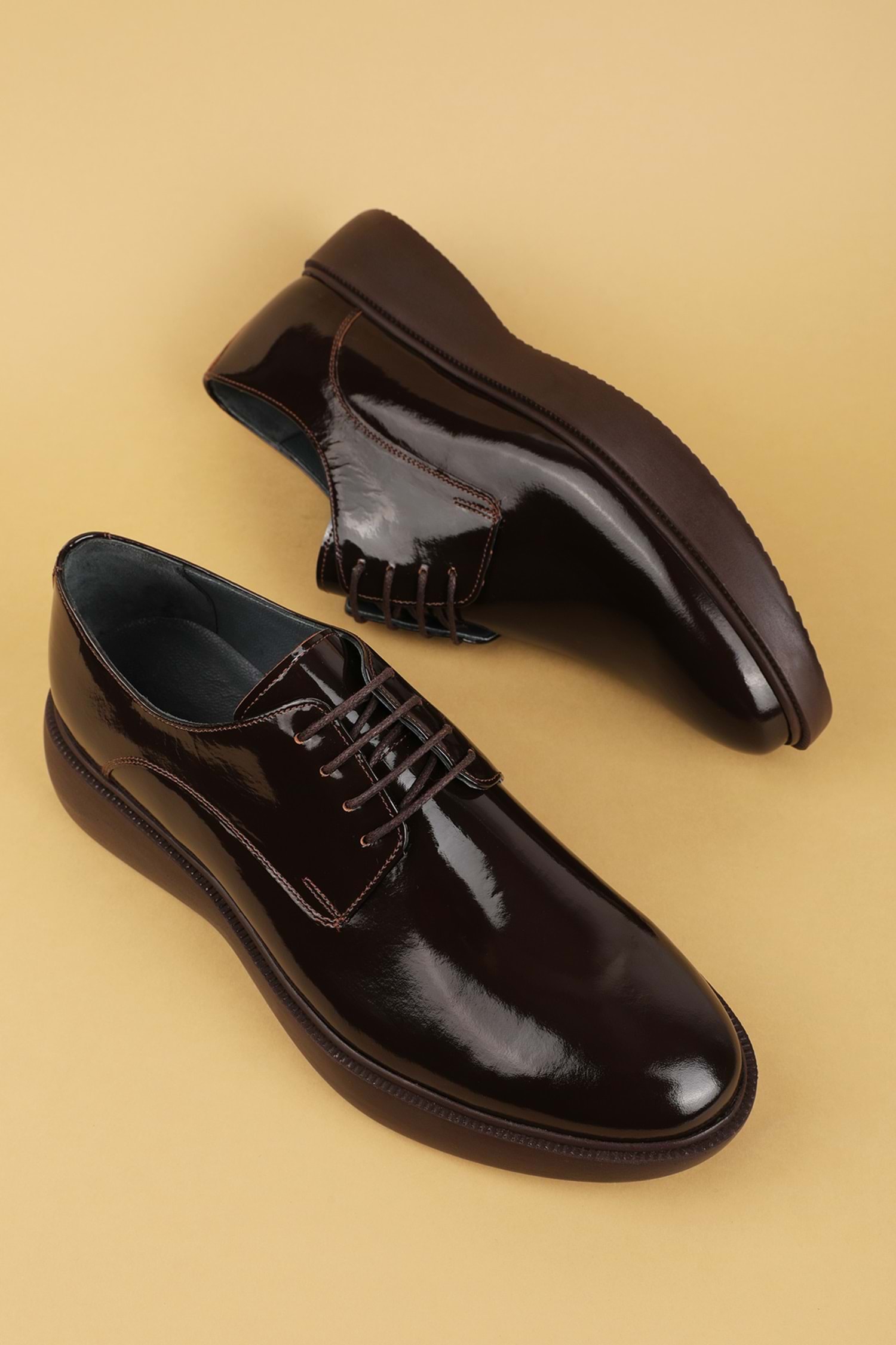 Gondol Erkek Hakiki Deri Damatlık ve Takım Elbise Ayakkabısı Hafif Rahat add.3005 - Kahve Rugan - 39