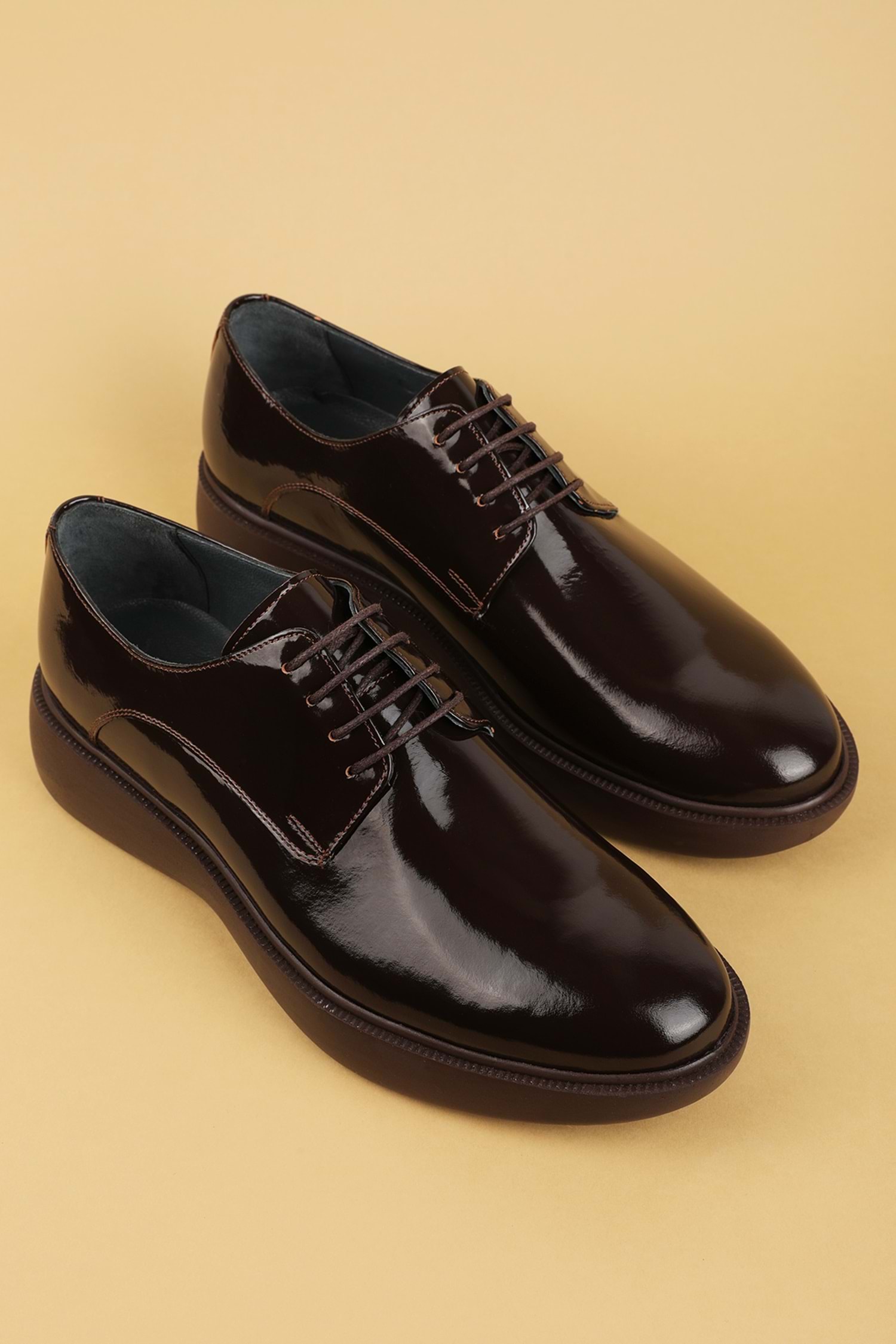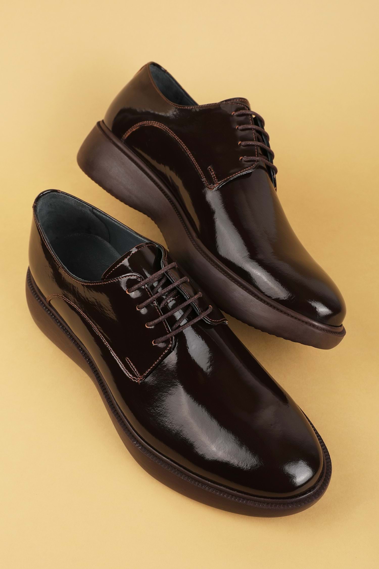 Gondol Erkek Hakiki Deri Damatlık ve Takım Elbise Ayakkabısı Hafif Rahat add.3005 - Kahve Rugan - 41