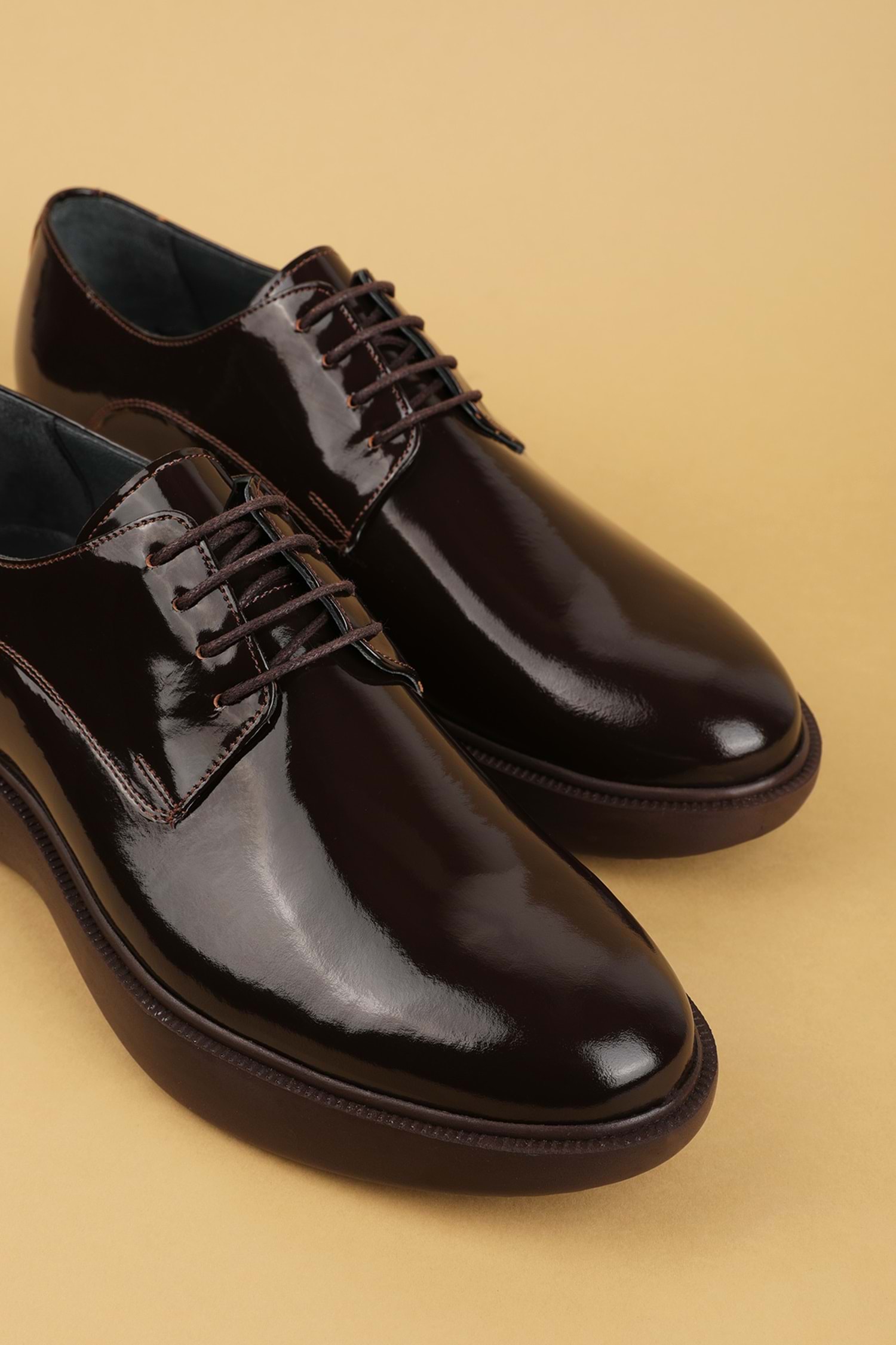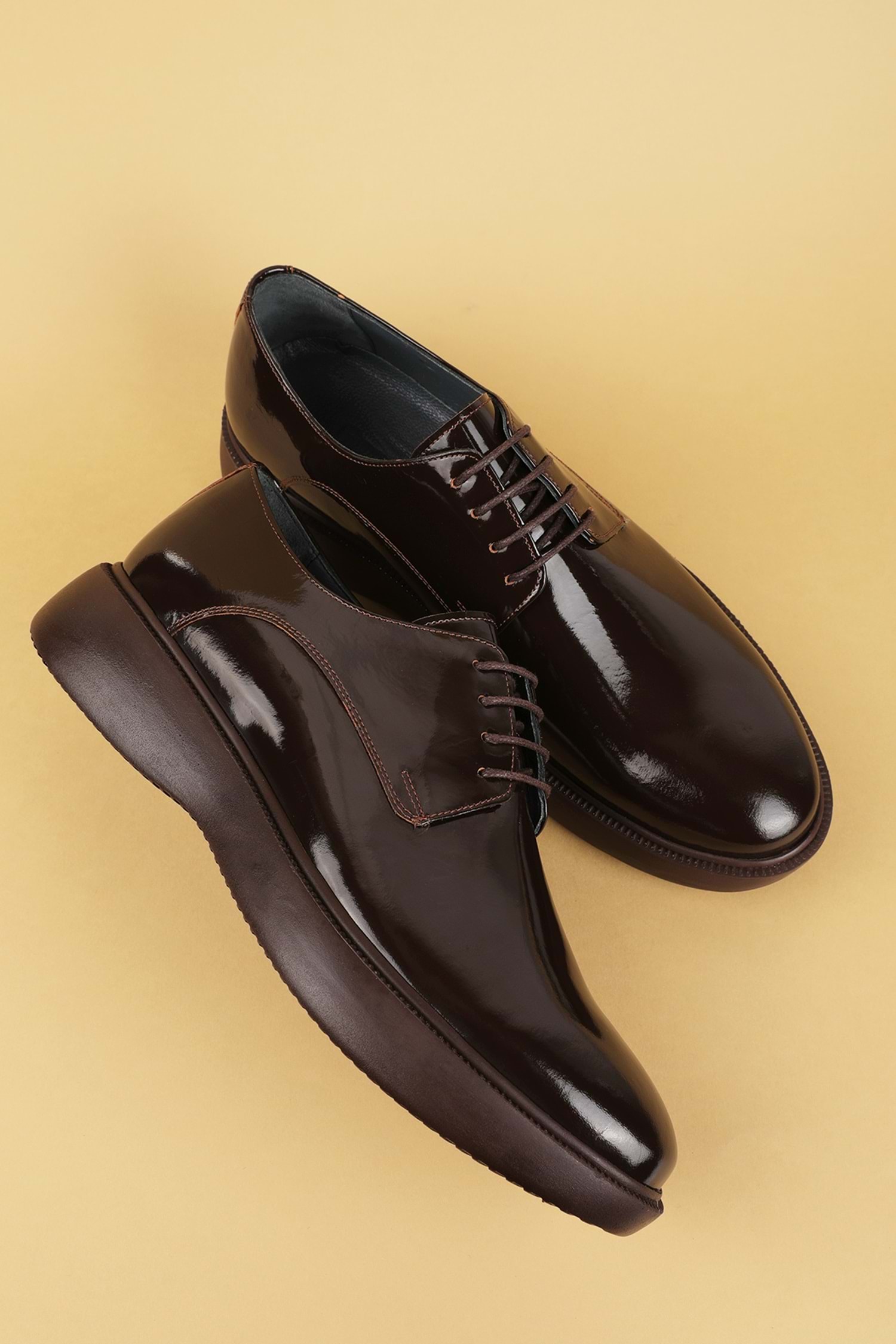 Gondol Erkek Hakiki Deri Damatlık ve Takım Elbise Ayakkabısı Hafif Rahat add.3005 - Kahve Rugan - 42