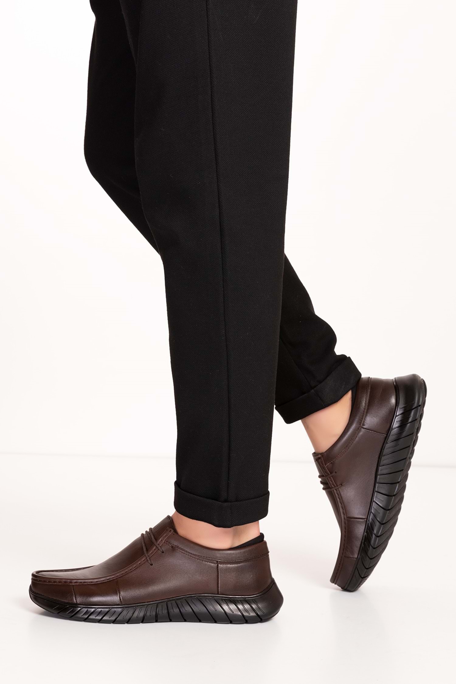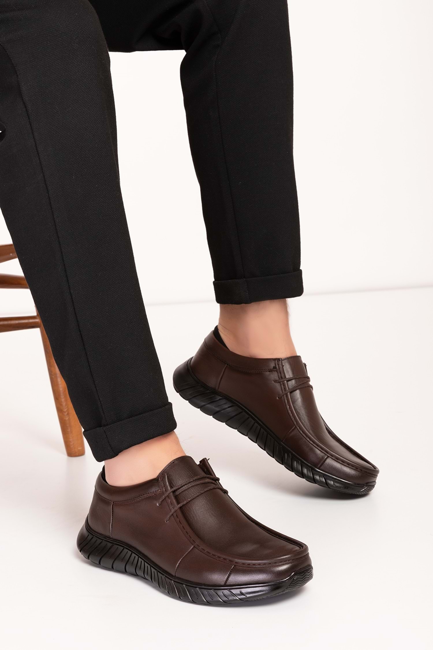 Gondol Erkek Hakiki Deri Hafif Esnek Kaymaz Taban Ayakkabı af.1453 - Kahverengi - 40