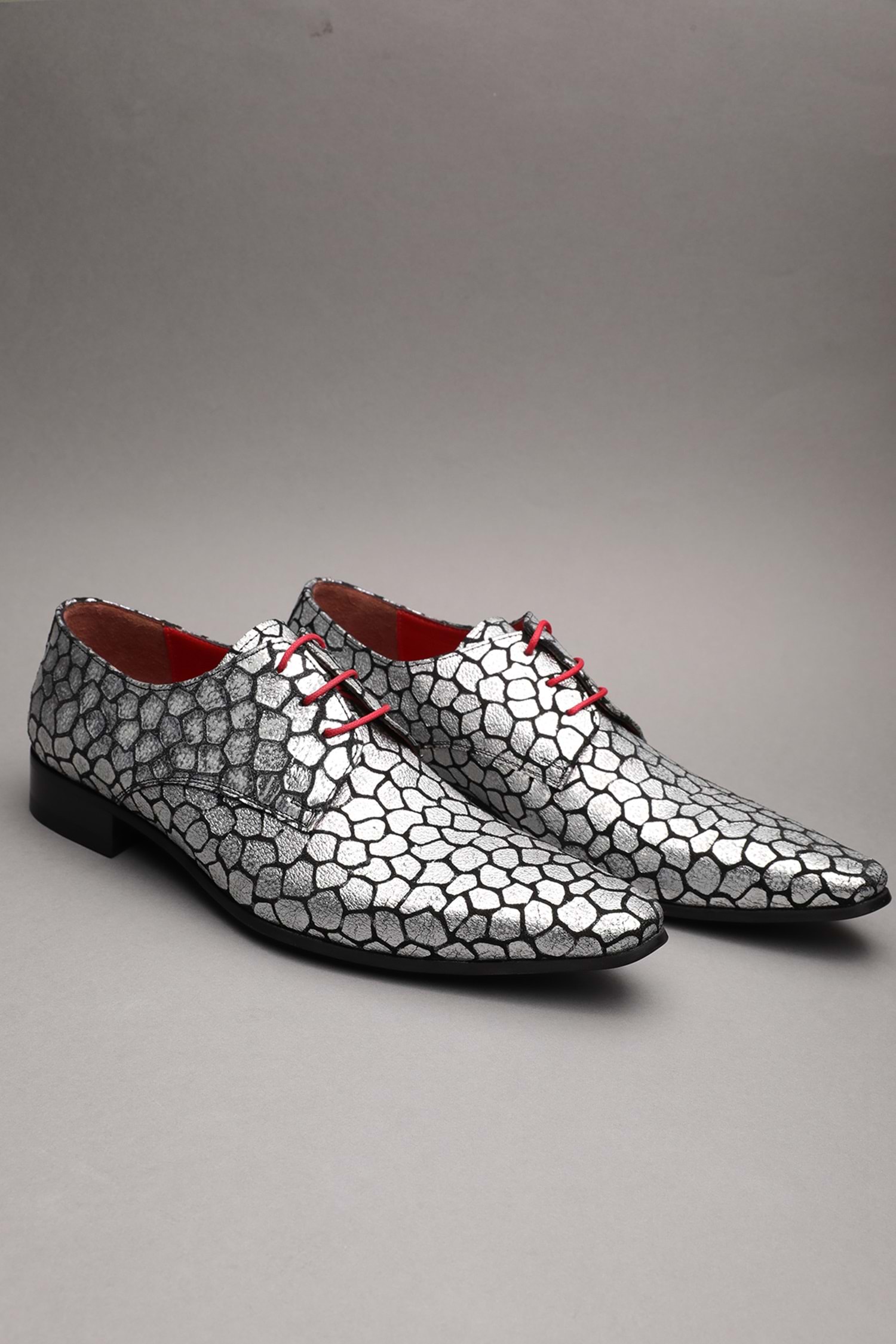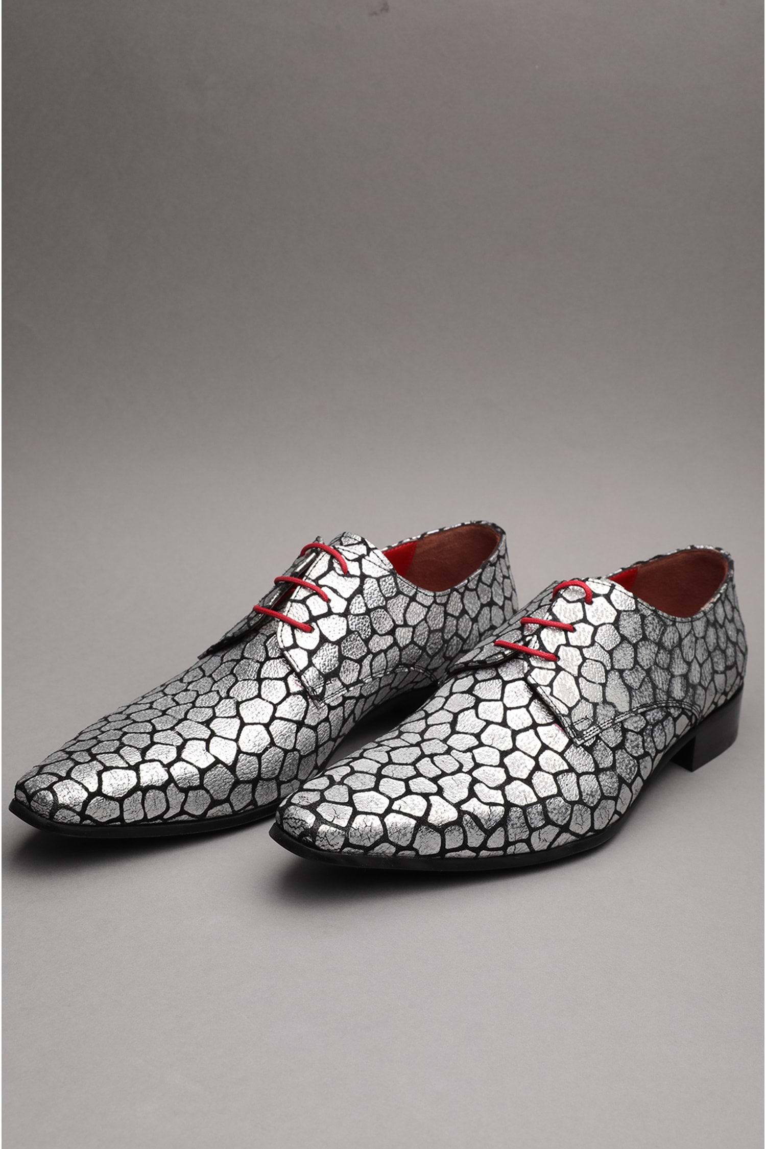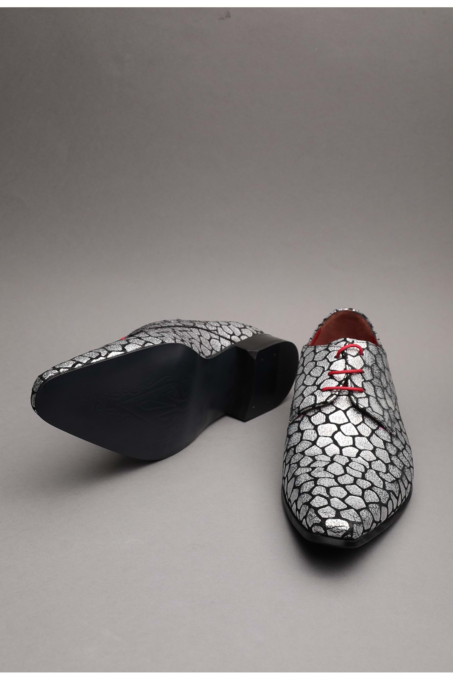 Gondol Erkek Hakiki Deri Sivri Burun Özel Deri Tasarımlı Kundura tz.610 - Gümüş - 42