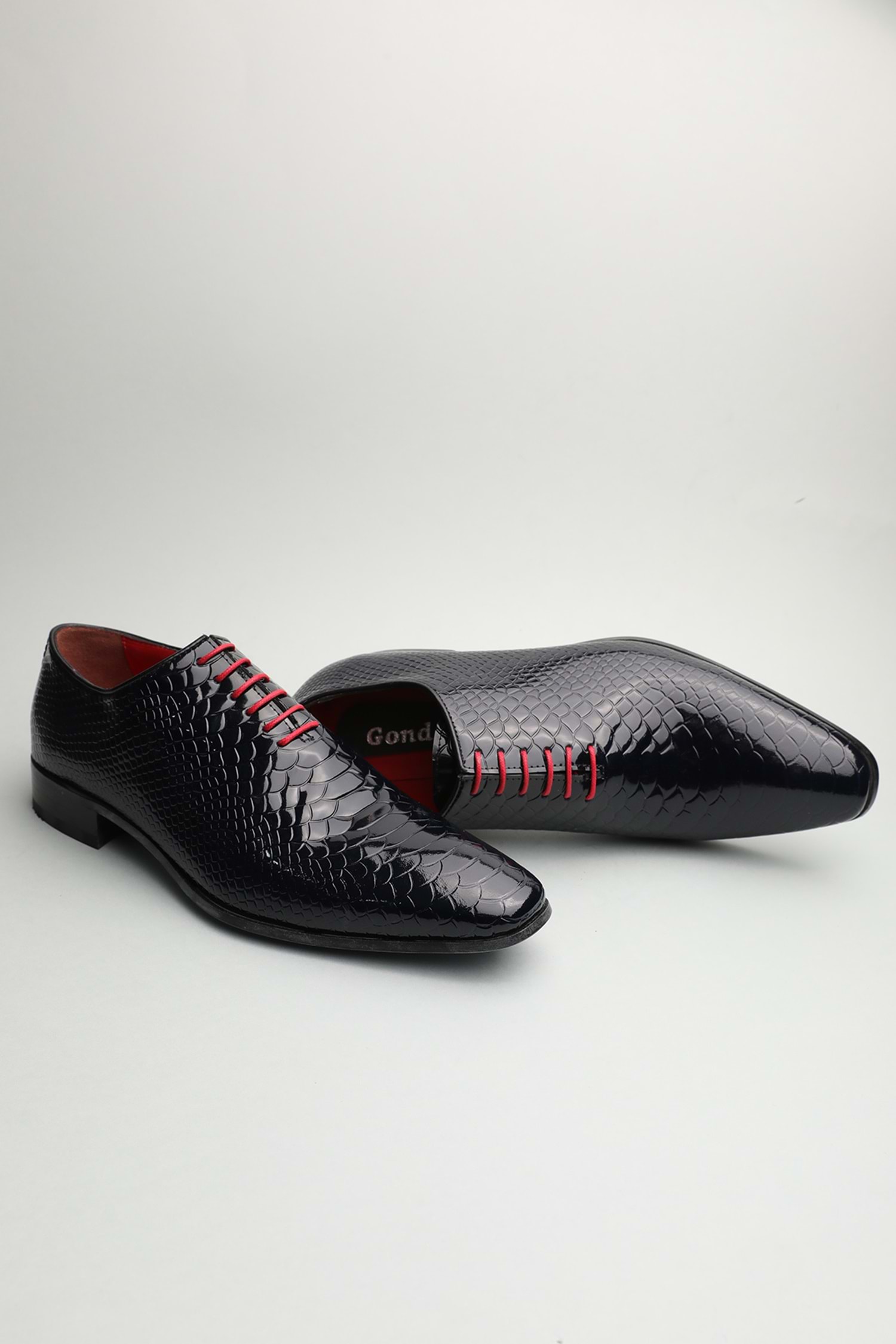 Gondol Erkek Hakiki Deri Sivri Burun Özel Deri Tasarımlı Kundura tz.614 - Siyah Croco - 40