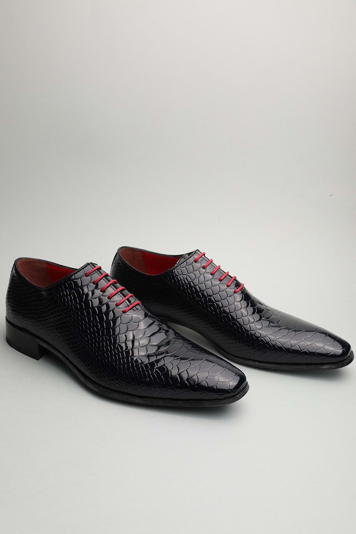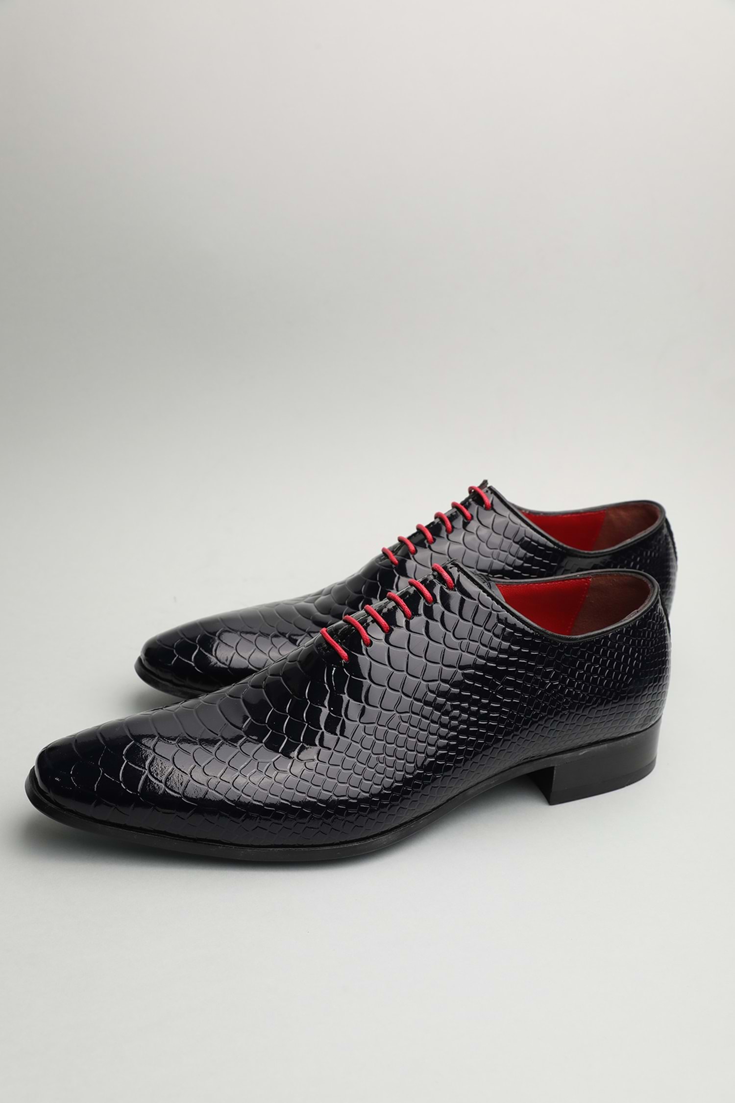 Gondol Erkek Hakiki Deri Sivri Burun Özel Deri Tasarımlı Kundura tz.614 - Siyah Croco - 42