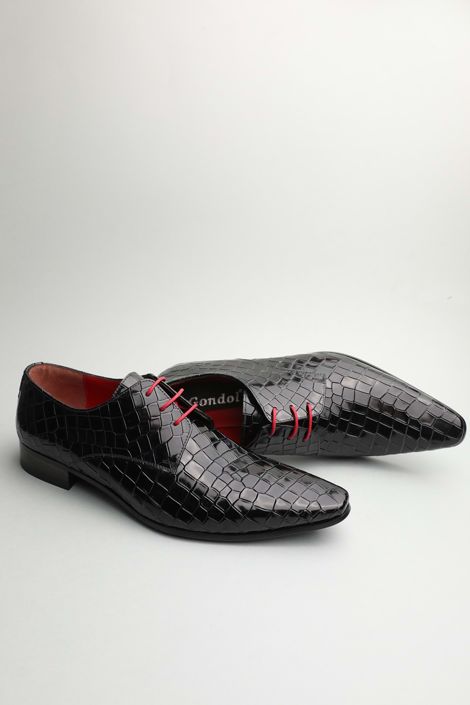 Gondol Erkek Hakiki Deri Sivri Burun Özel Deri Tasarımlı Kundura tz.622 - Siyah Croco - 40 - 353522155-33303
