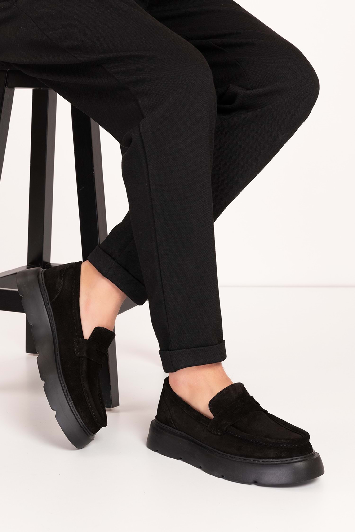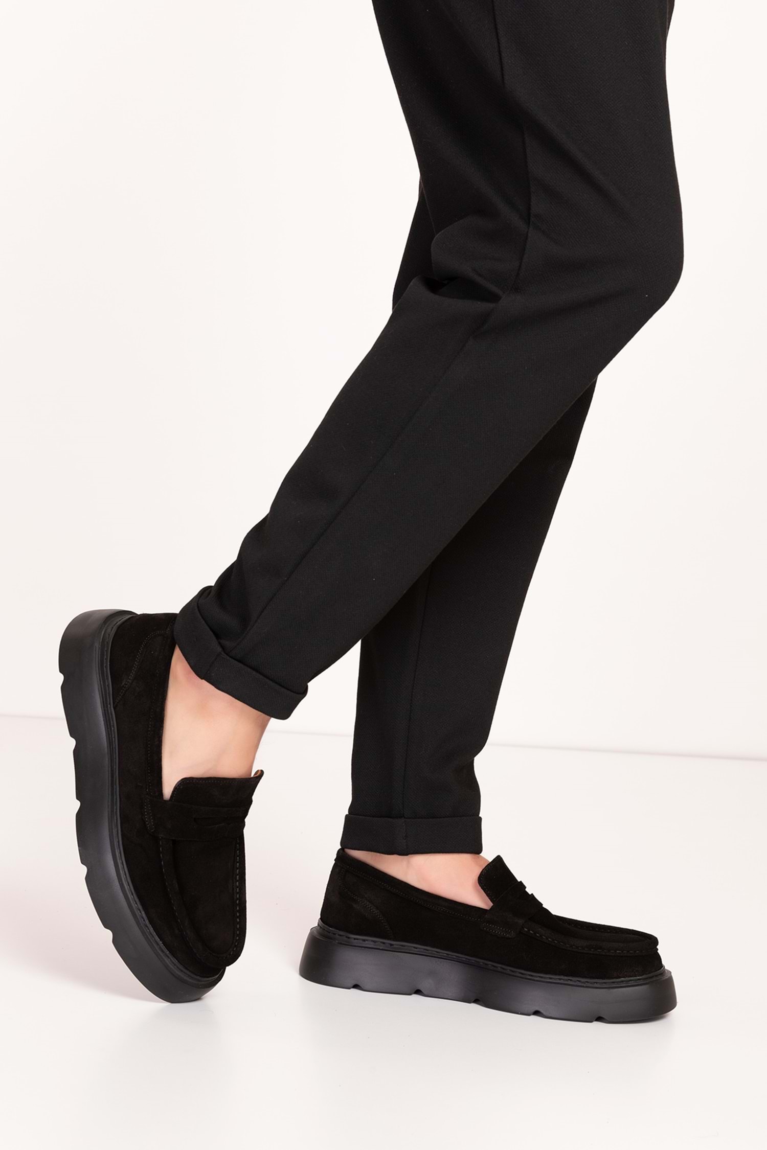 Gondol Içi Dışı Hakiki Deri Hafif Günlük Rahat Ayakkabı src.464 - Siyah Süet - 40