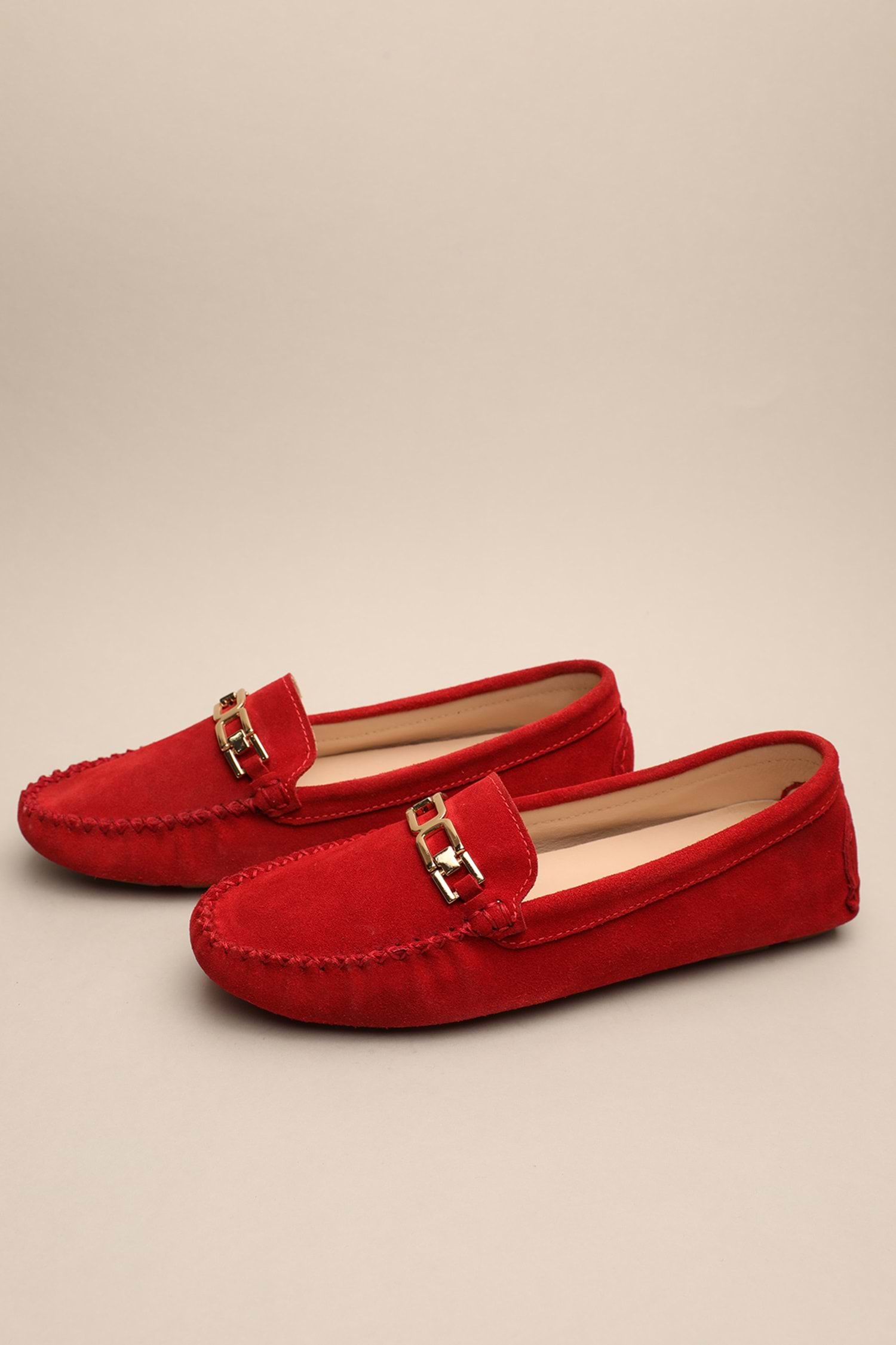 Gondol Kadın Hakiki Deri Klasik Loafer Kırmızı Süet 37 ttx.70141
