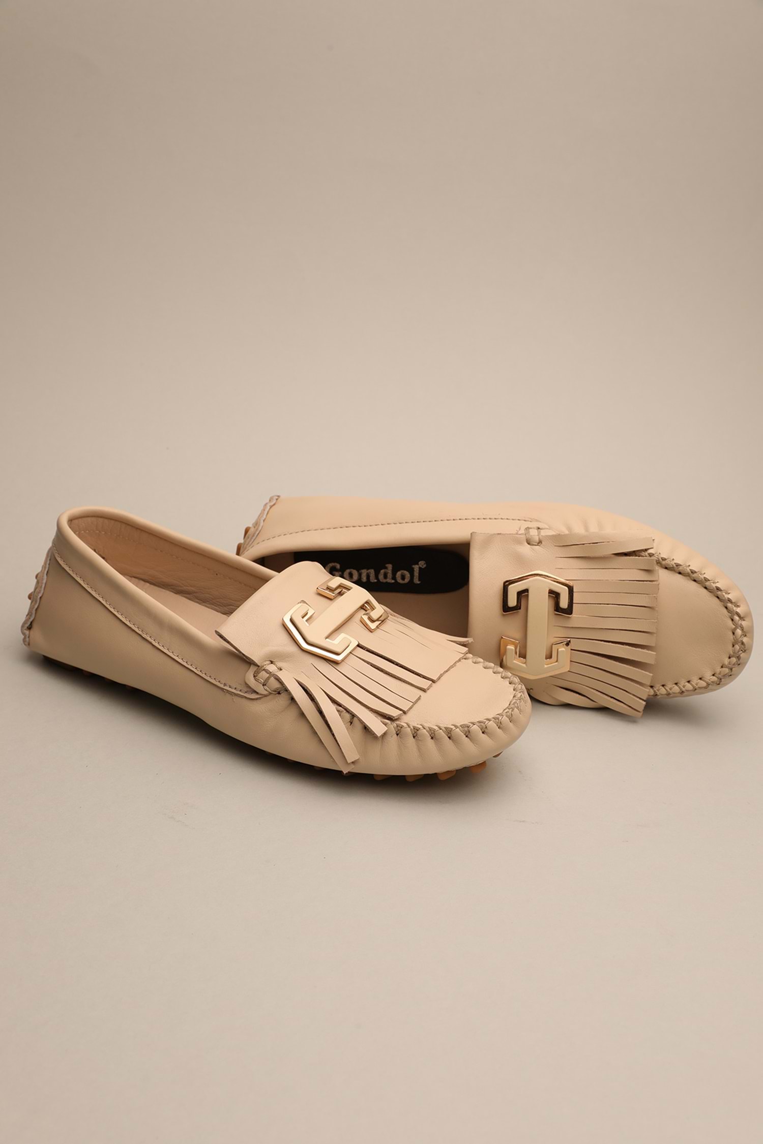 Gondol Kadın Hakiki Deri Klasik Loafer Krem 37 ttx.754