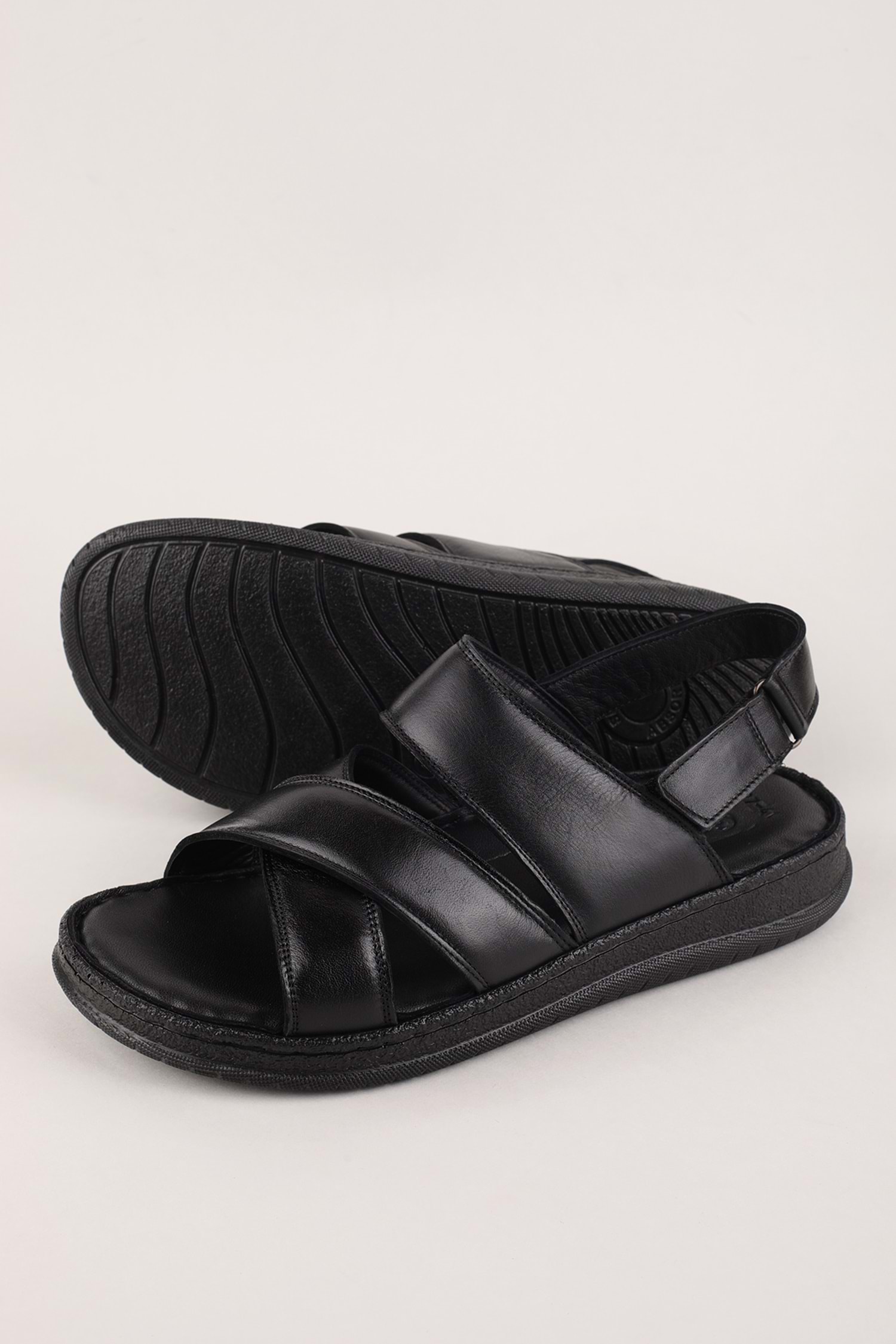 Gondol Erkek Hakiki Deri Günlük Rahat Taban Sandalet hkm.27 - Siyah - 43