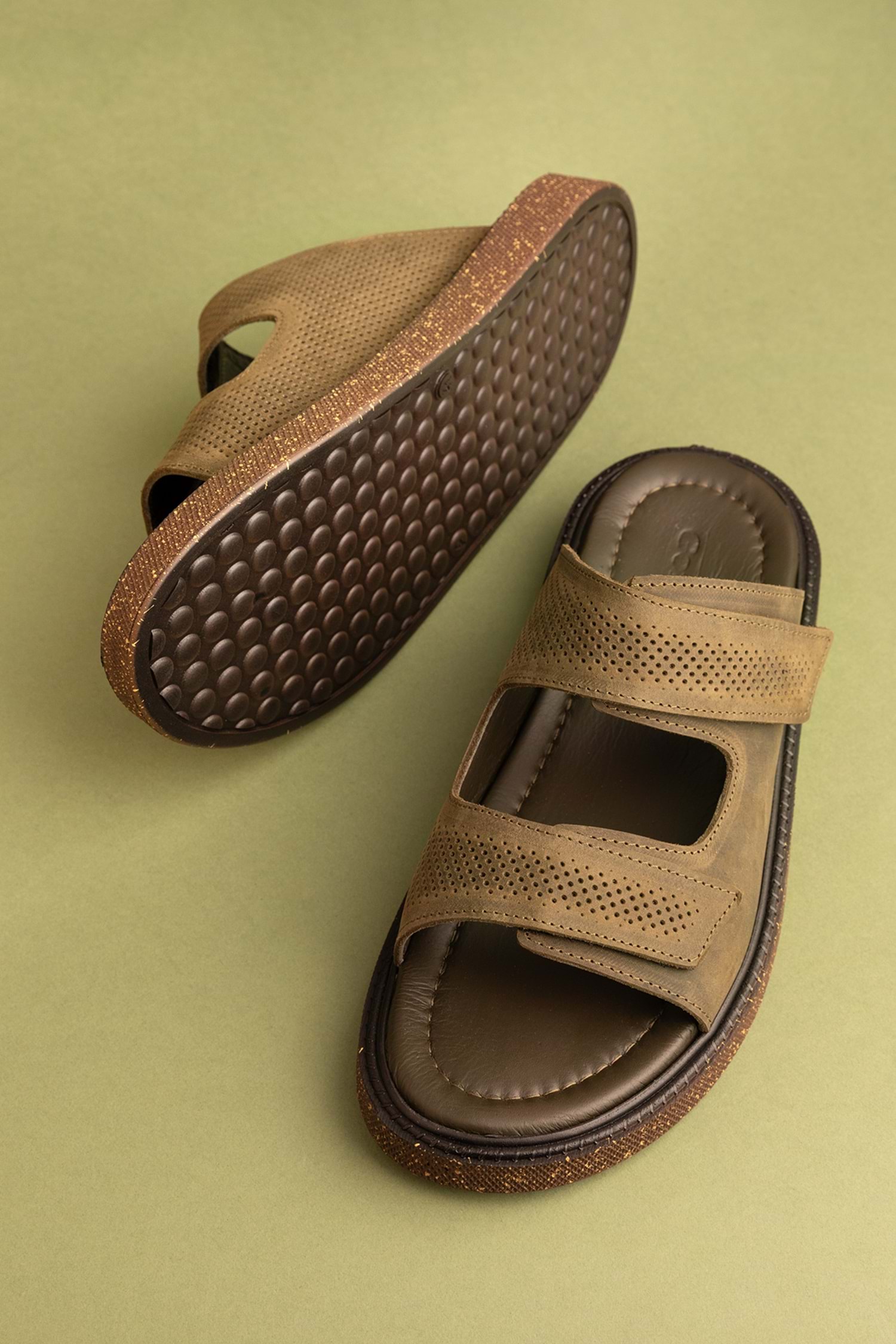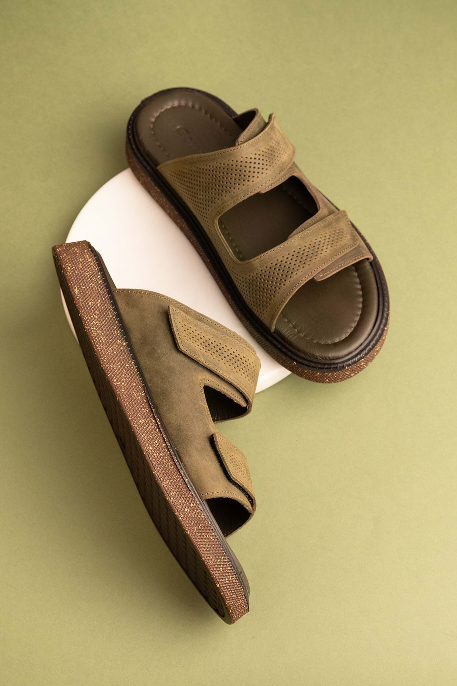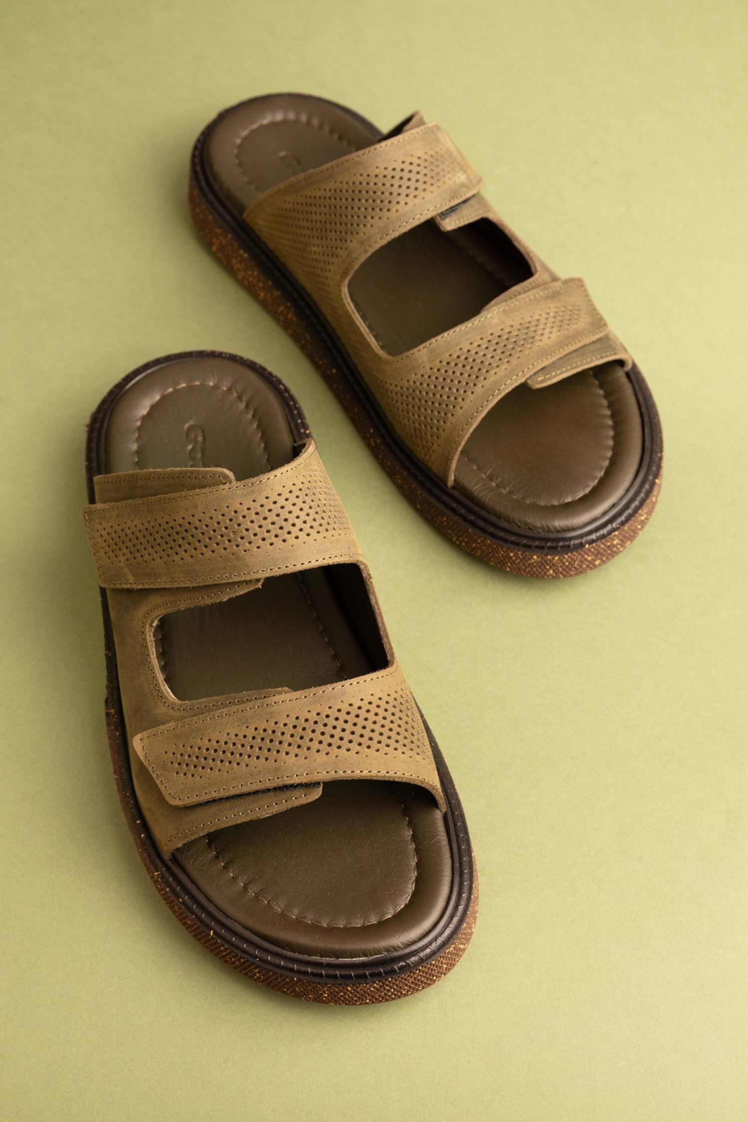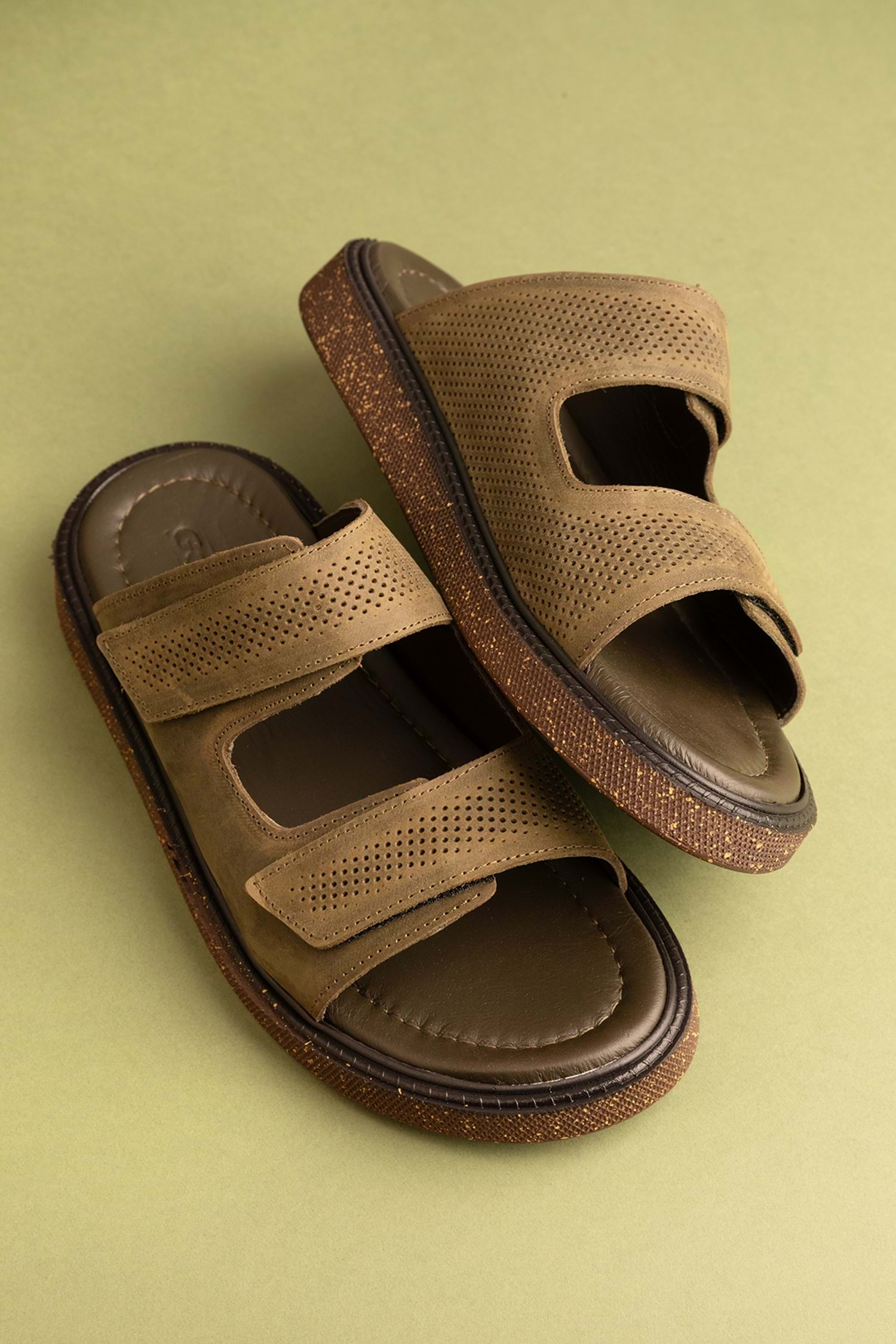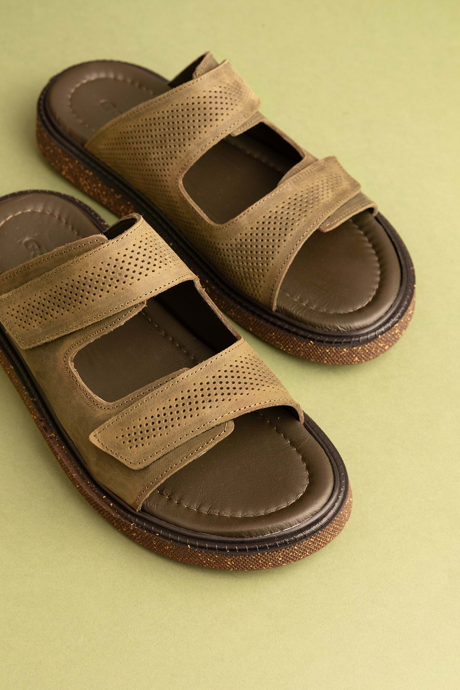 Gondol Erkek Hakiki Deri Cırtlı Ayarlanabilir Rahat Terlik esm.16 - Haki - 40