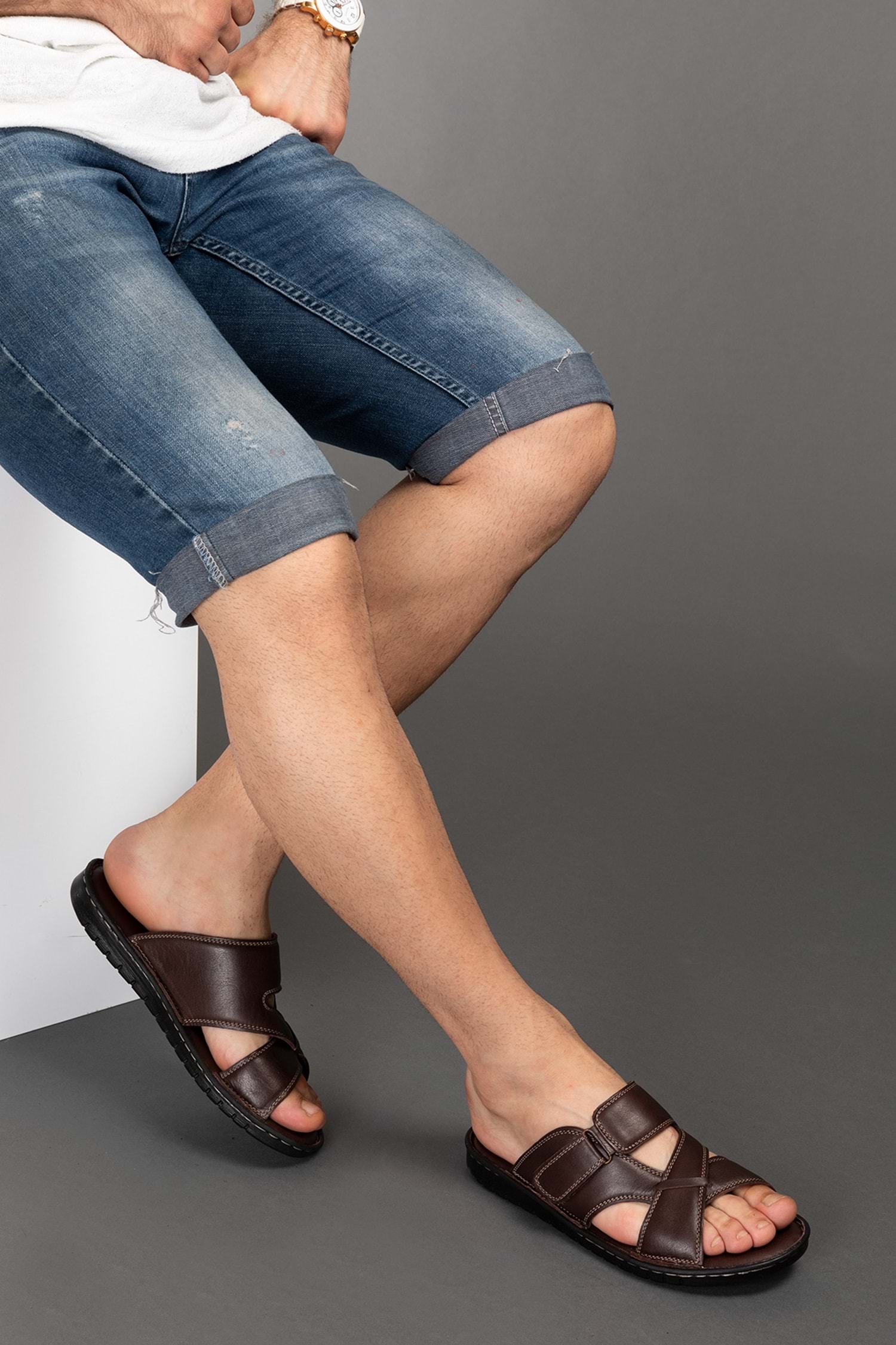 Gondol Erkek Hakiki Deri Ev Terliği Kahverengi 40 kml.101