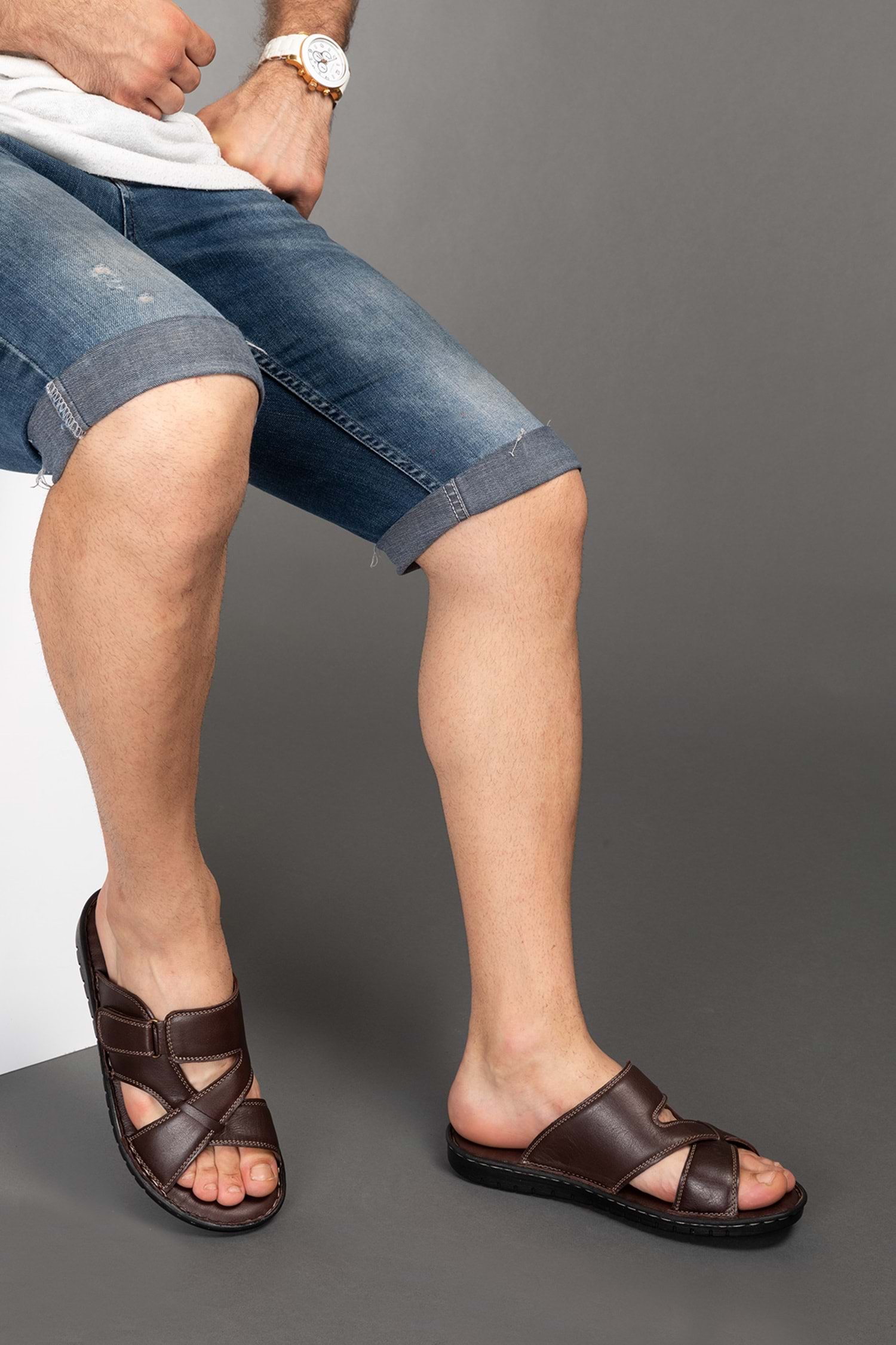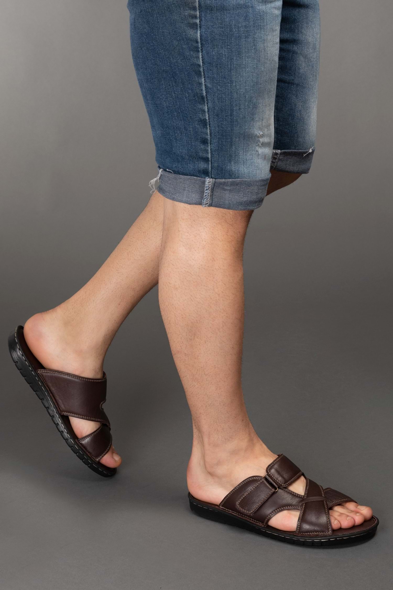 Gondol Erkek Hakiki Deri Ev Terliği Kahverengi 42 kml.101