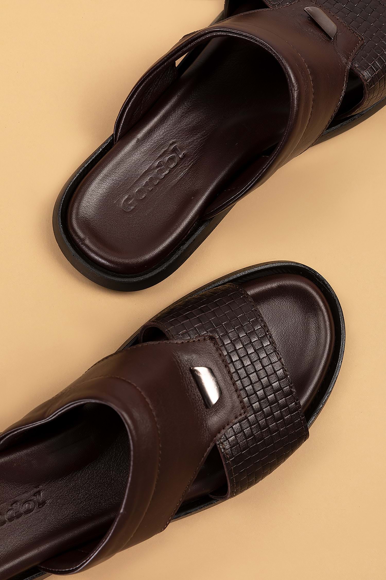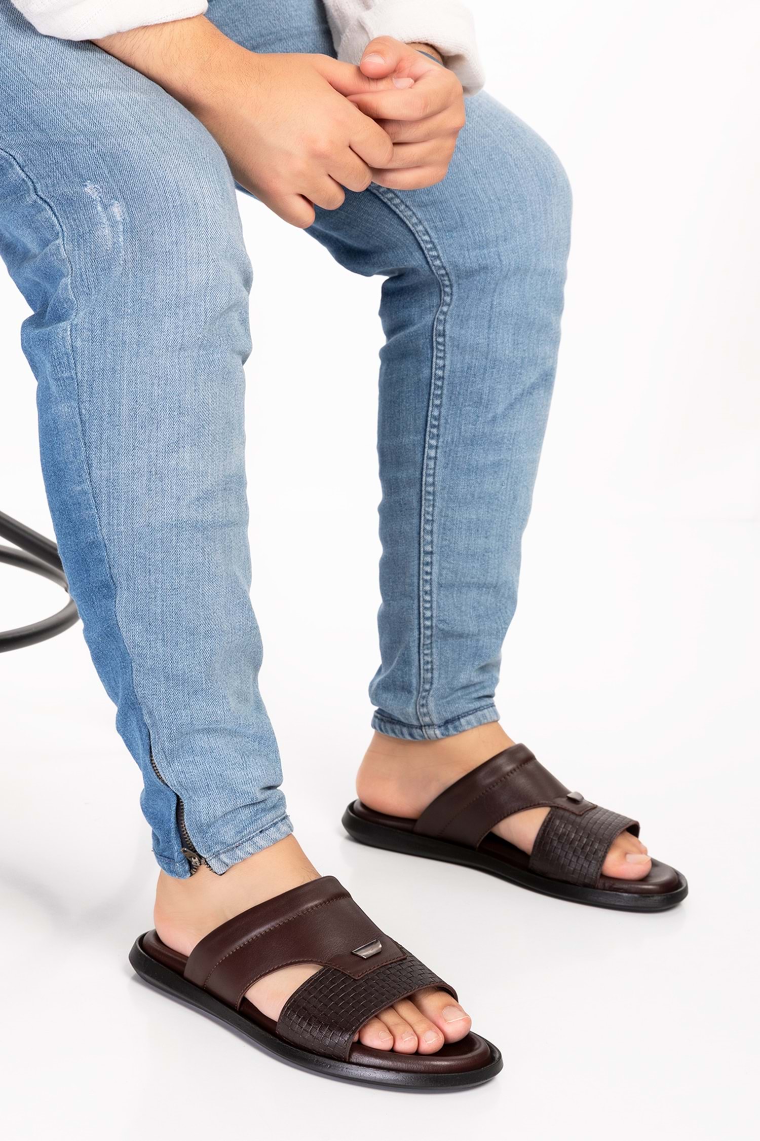 Gondol Erkek Hakiki Deri Günlük Klasik Terlik esm.017 - Kahverengi - 40