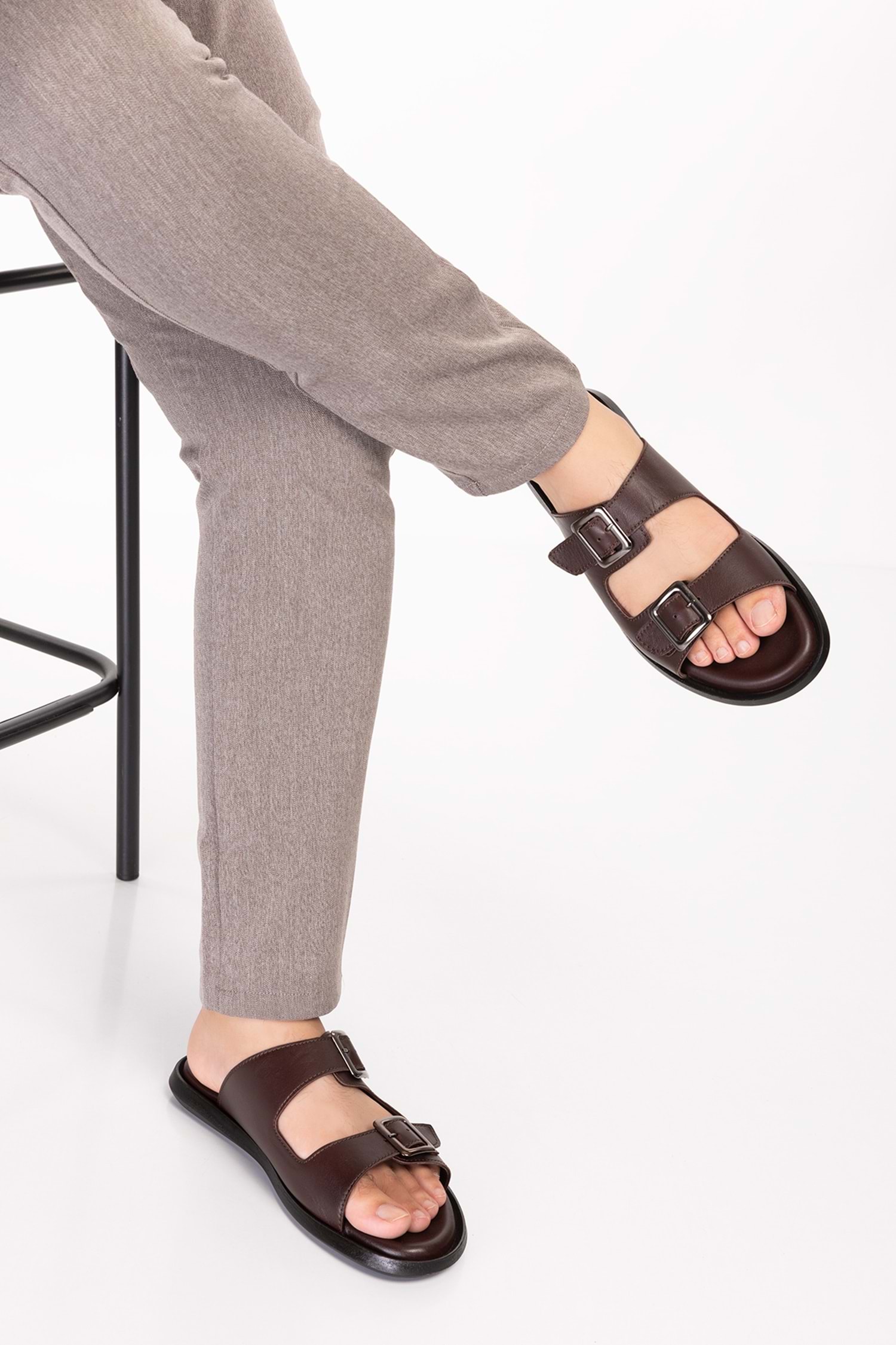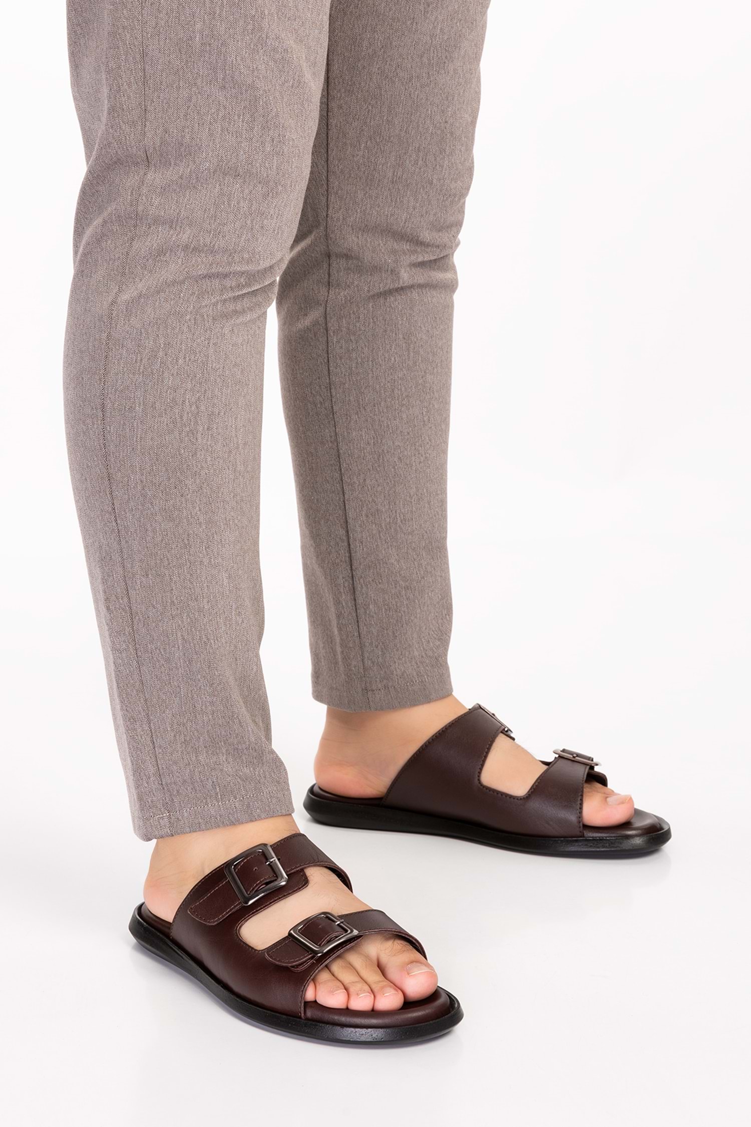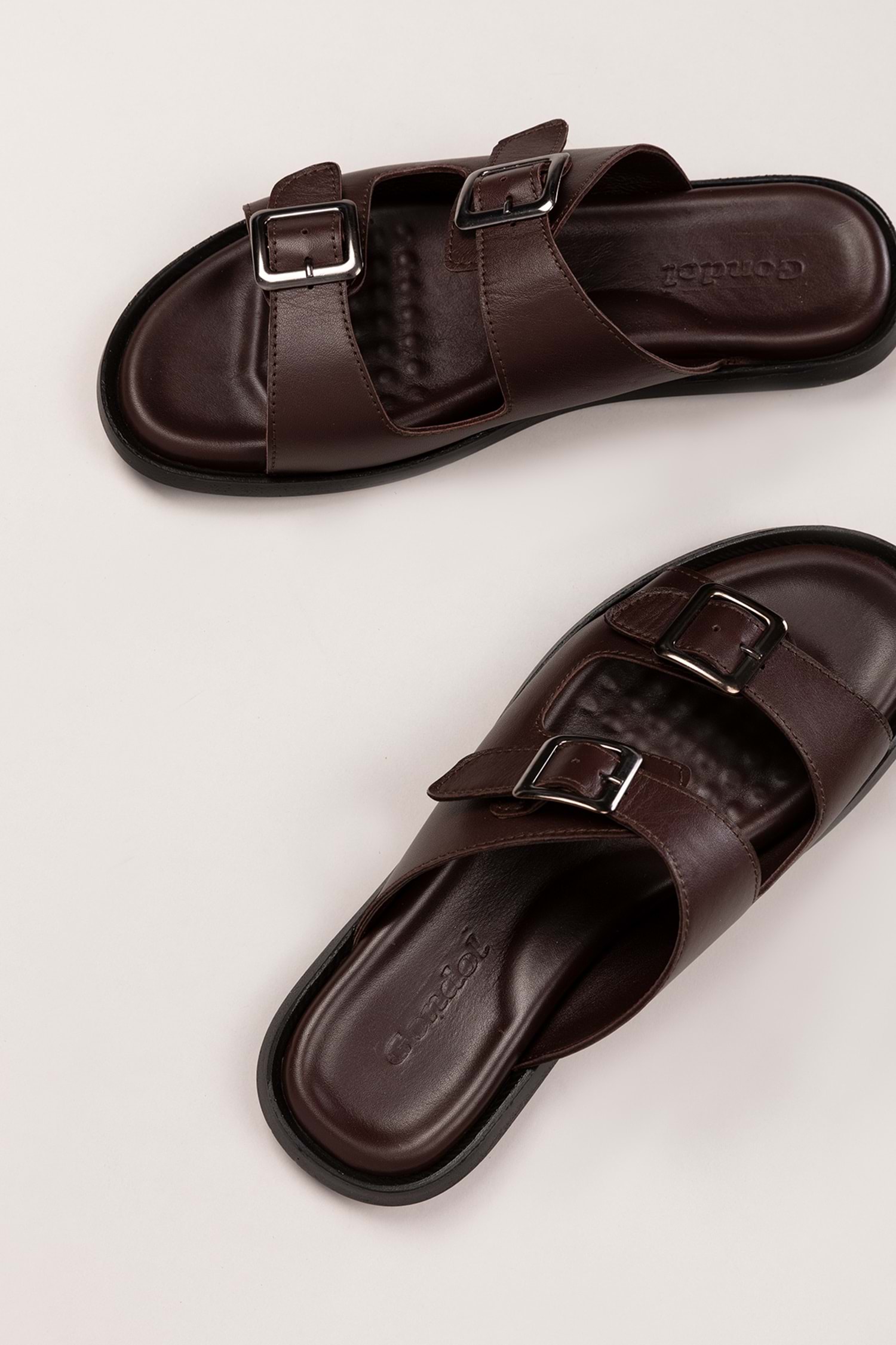 Gondol Erkek Hakiki Deri Günlük Klasik Tokalı Terlik esm.610 - Kahverengi - 40