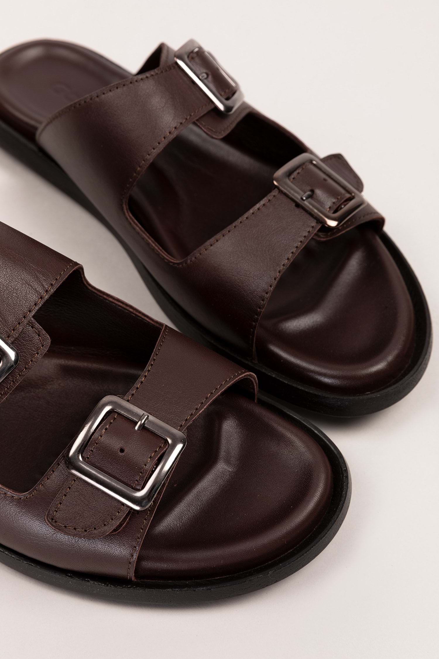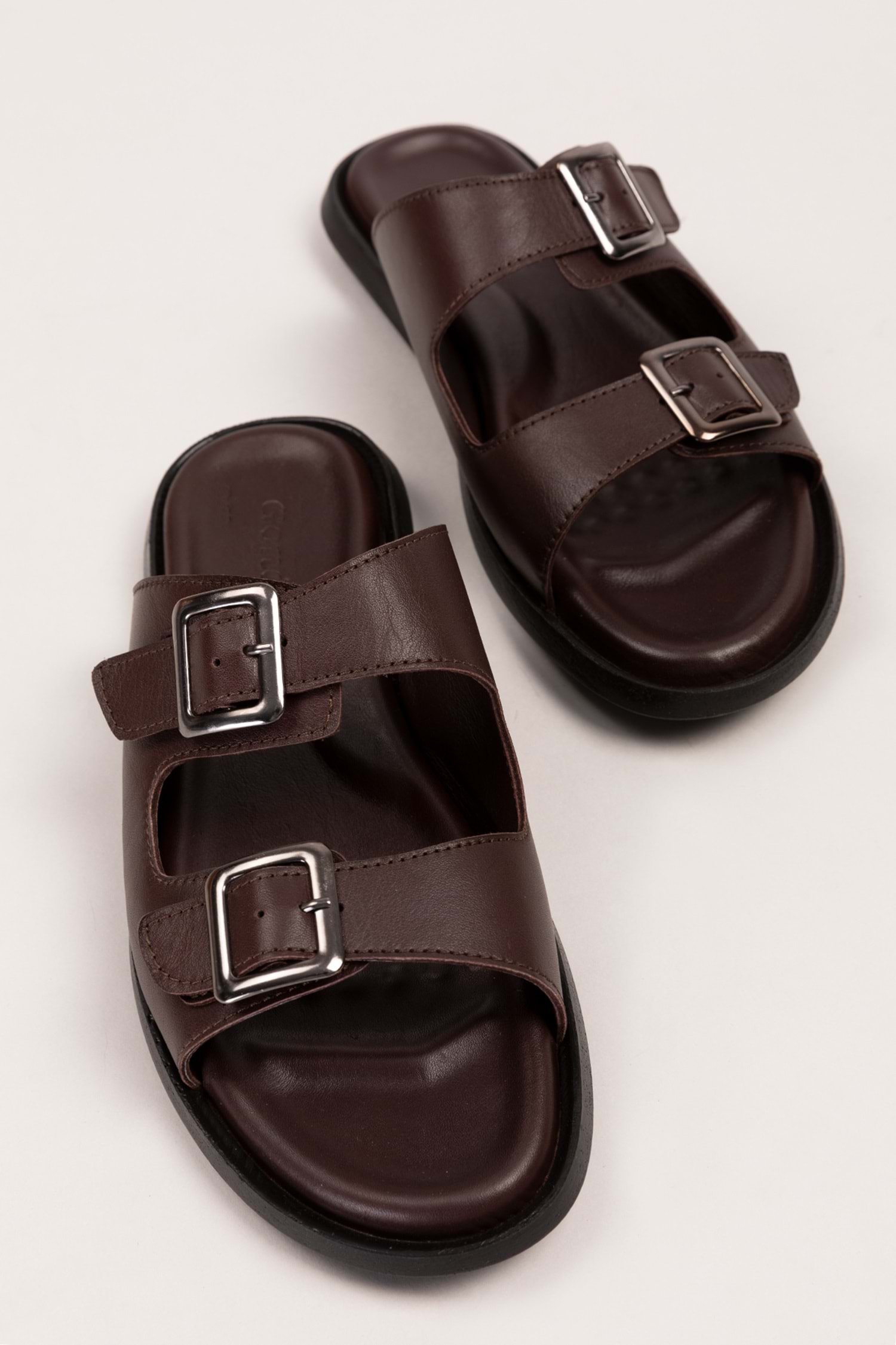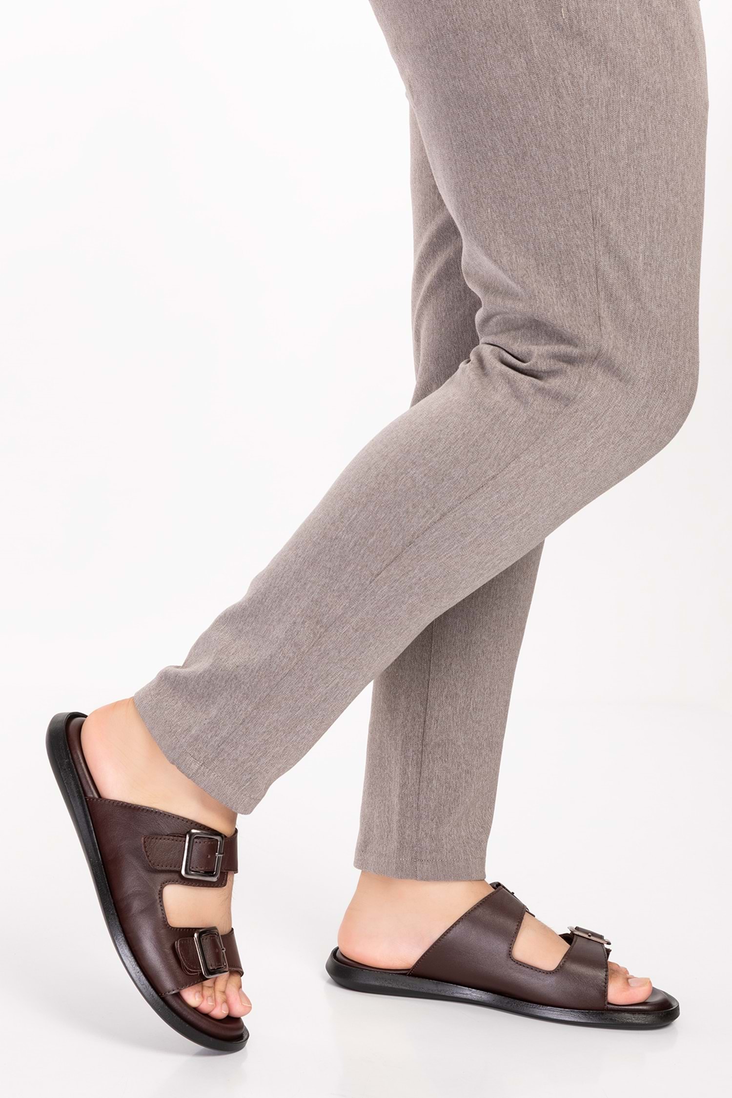 Gondol Erkek Hakiki Deri Günlük Klasik Tokalı Terlik esm.610 - Kahverengi - 40