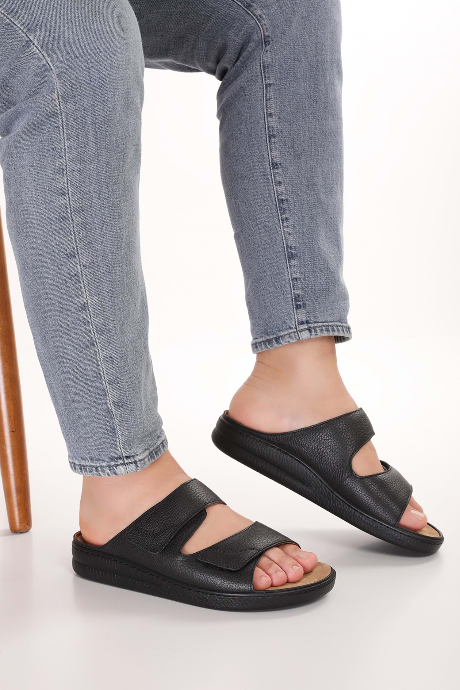 hakiki deri erkek terlik, ortopedik erkek terlik, cırtlı erkek terlik, çıkarılabilir taban terlik, erkek deri sandalet, rahat erkek terlik, konforlu erkek terlik, ortopedik tabanlık uyumlu terlik, yazlık erkek terlik, günlük erkek terlik