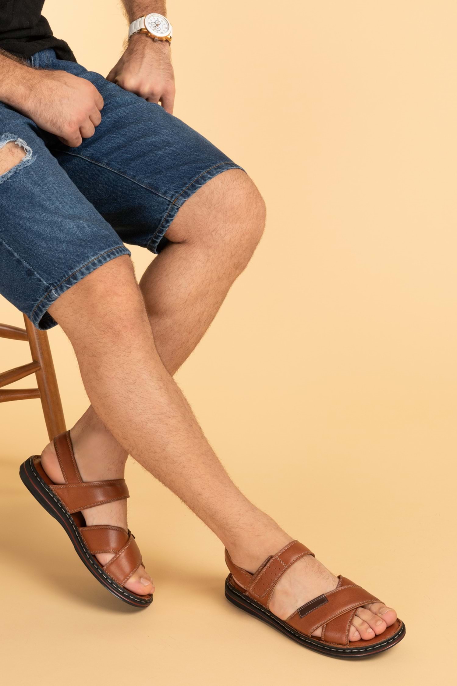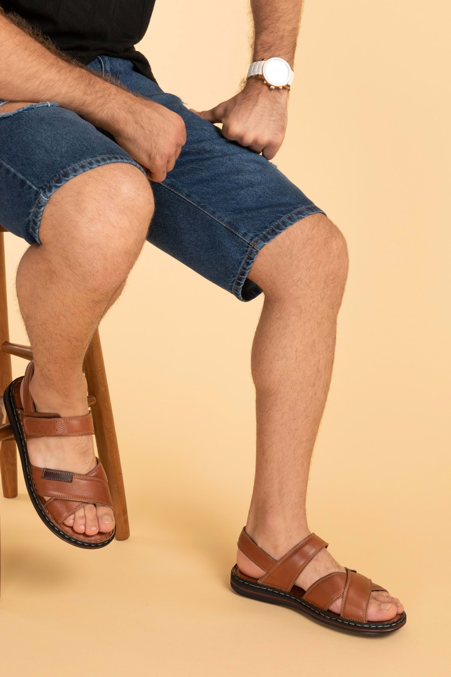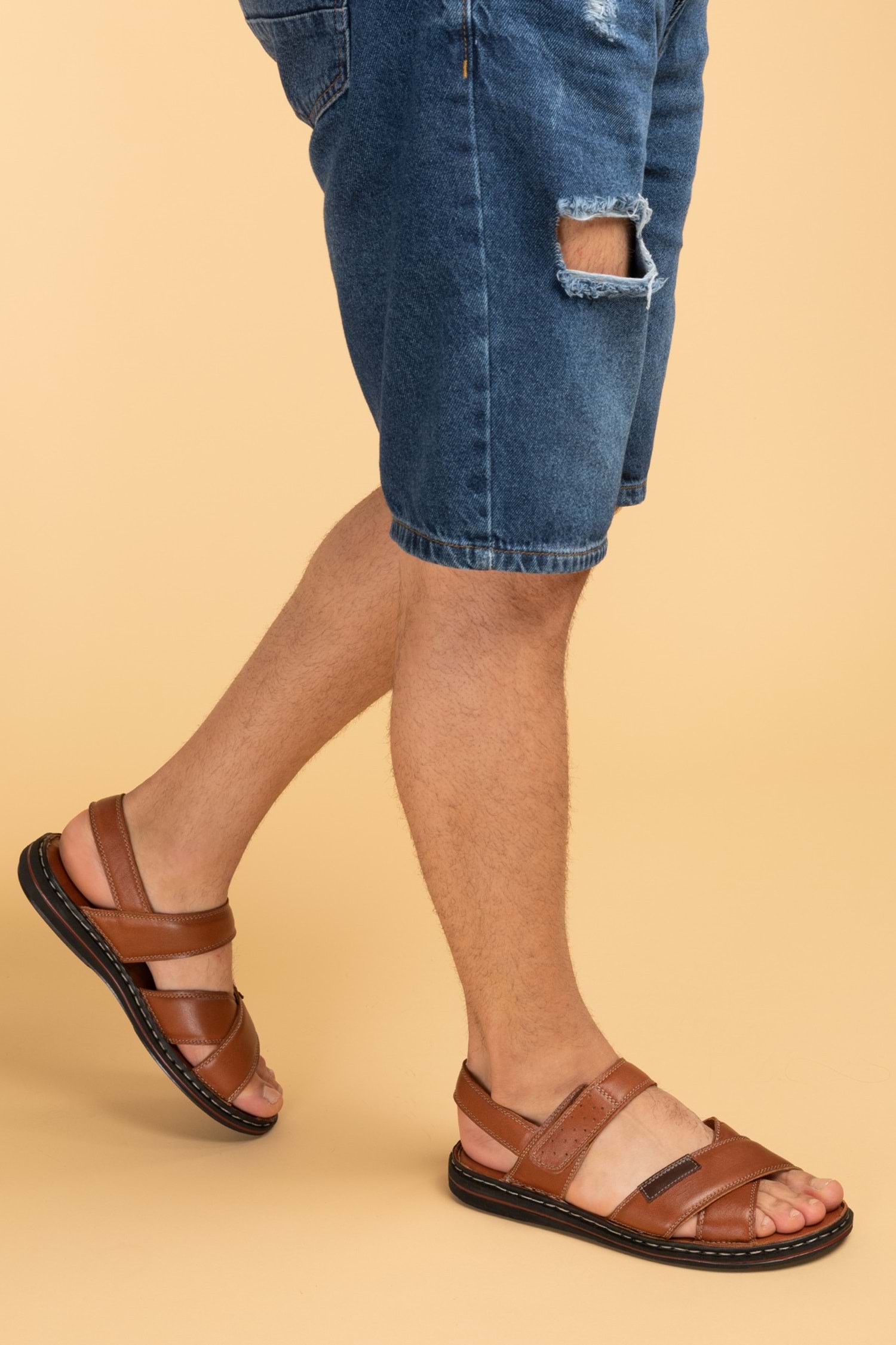 Gondol Hakiki Deri Anatomik Taban Erkek Sandalet kml.119 - Taba - 41
