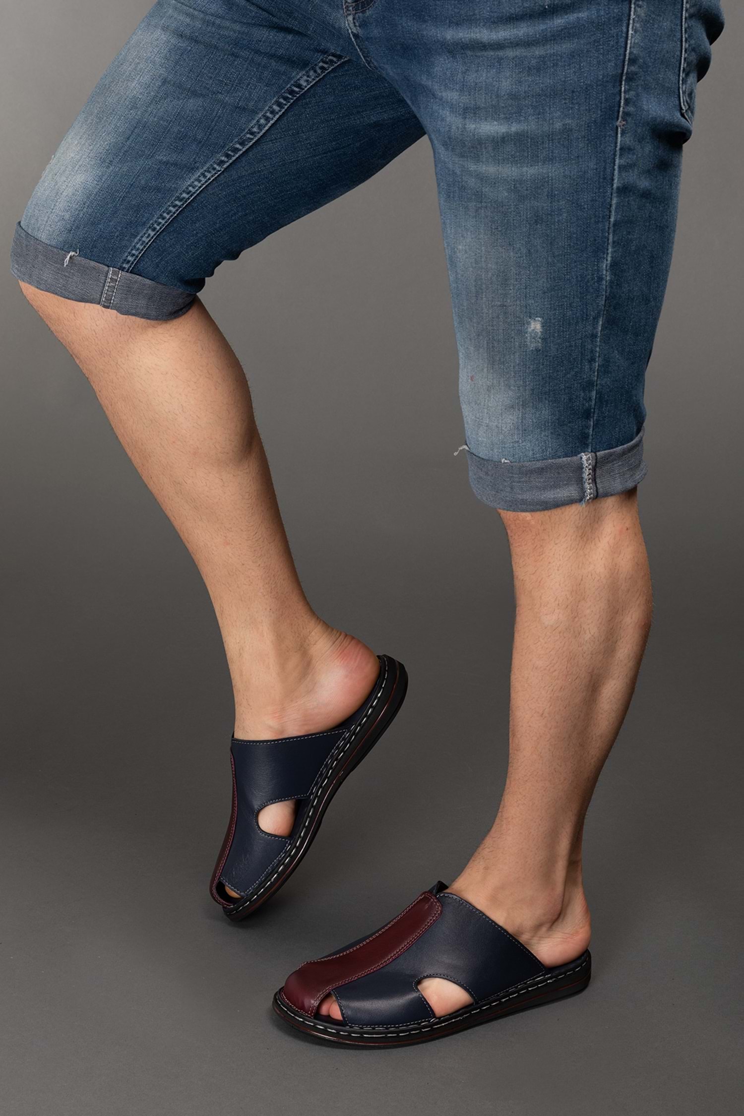 Gondol Hakiki Deri Önü Kapalı Yumusak Taban Terlik kml.103 - Lacivert - 45