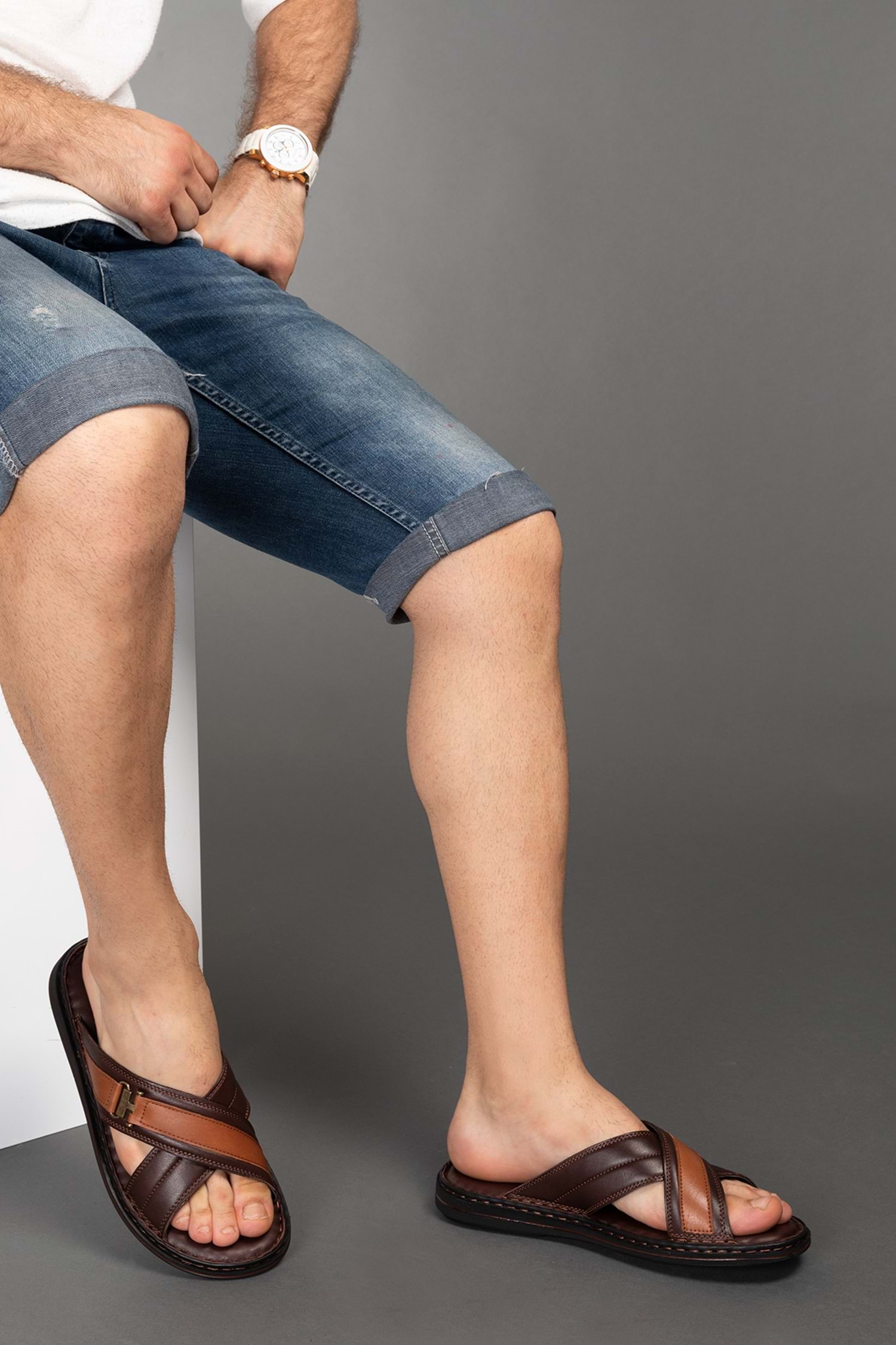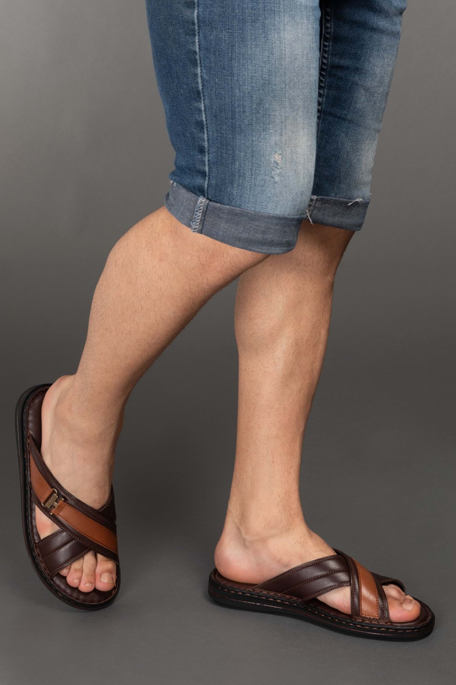 Gondol Hakiki Deri Ortopedik Erkek Terliği Kahverengi 46 kml.102