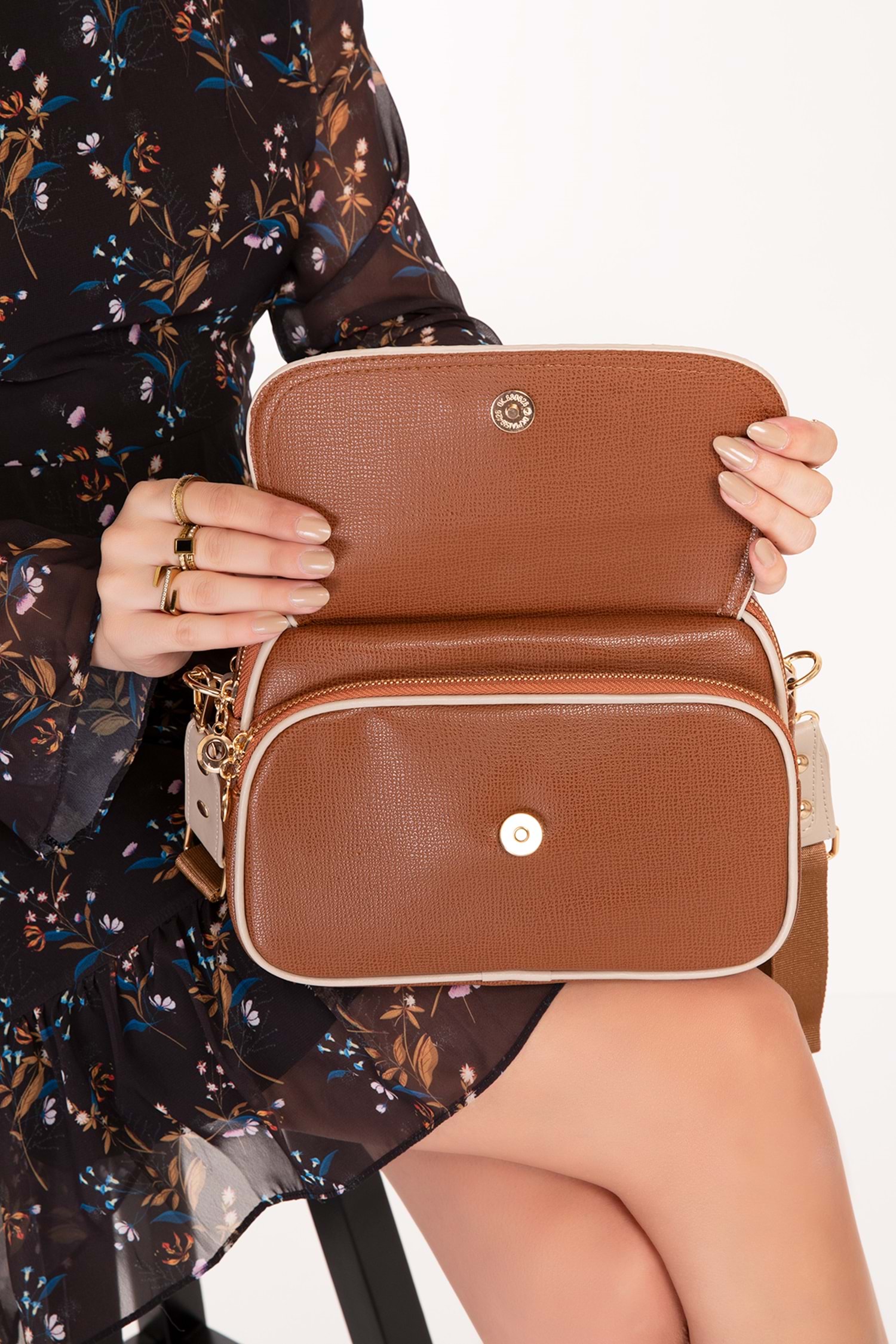 Gondol Kadın Çift Bölmeli Şık Günlük Çanta ald.1407 - Taba - TEK EBAT