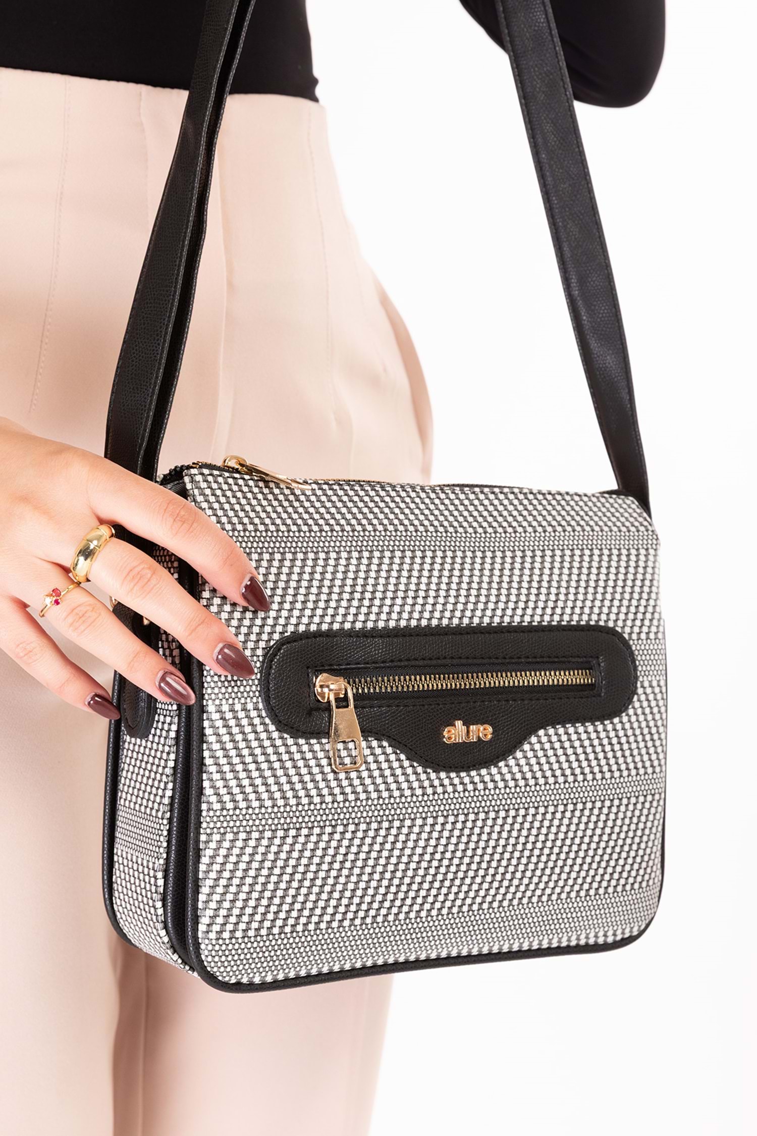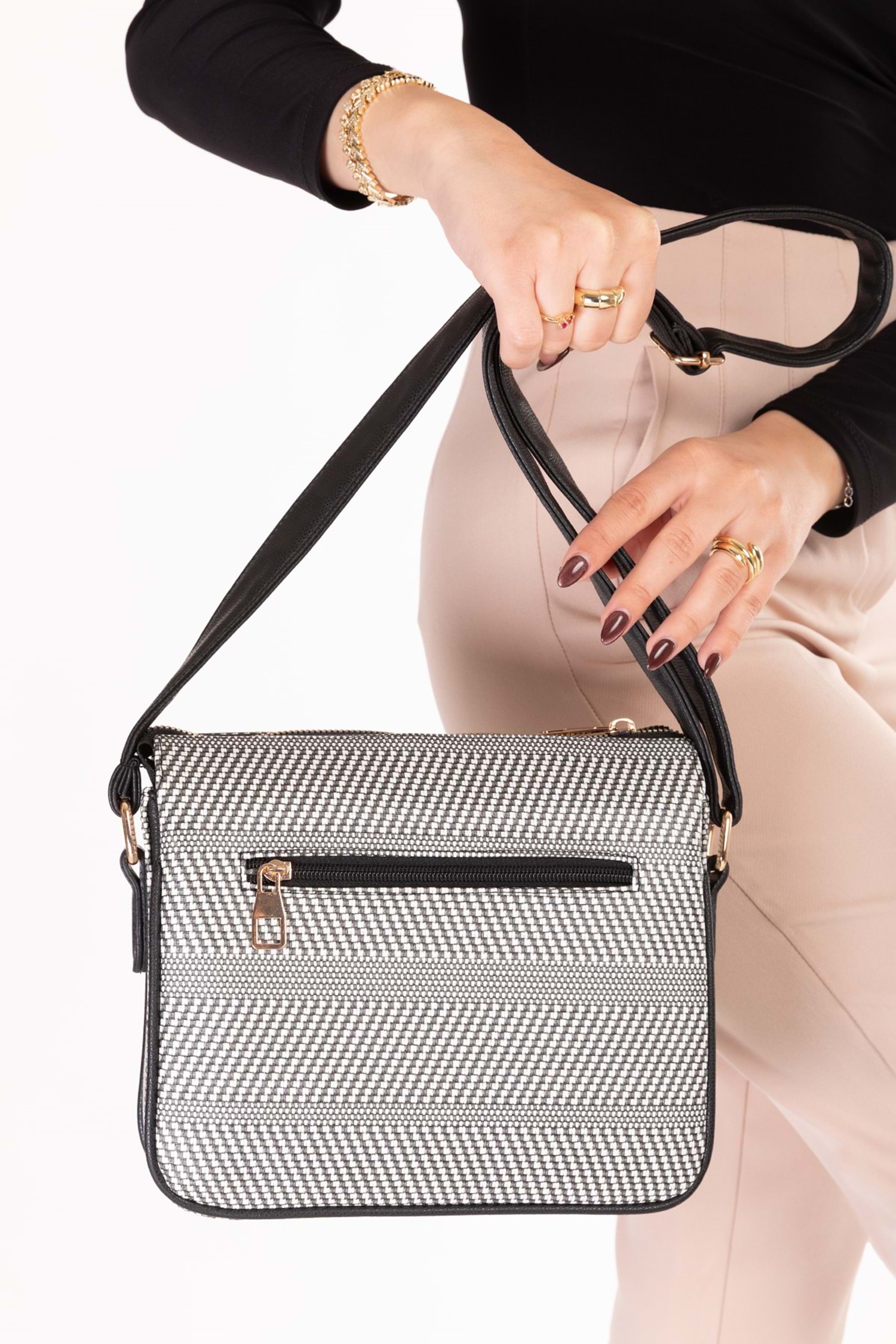 Gondol Kadın Şık Günlük Çanta ald.2808 - Siyah Zikzak - TEK EBAT