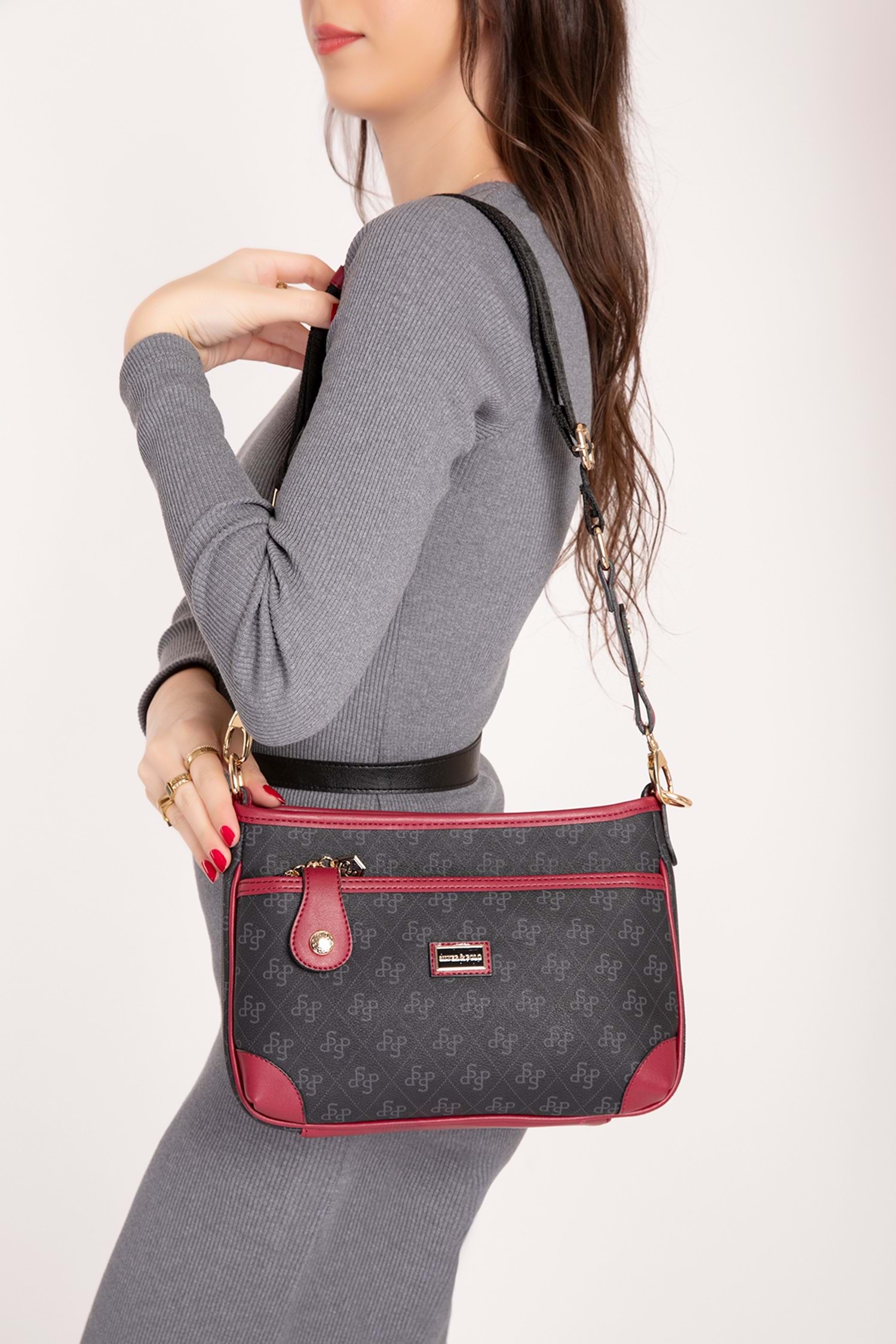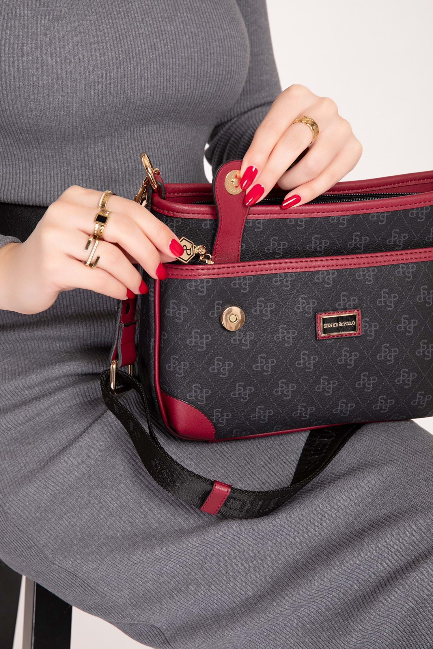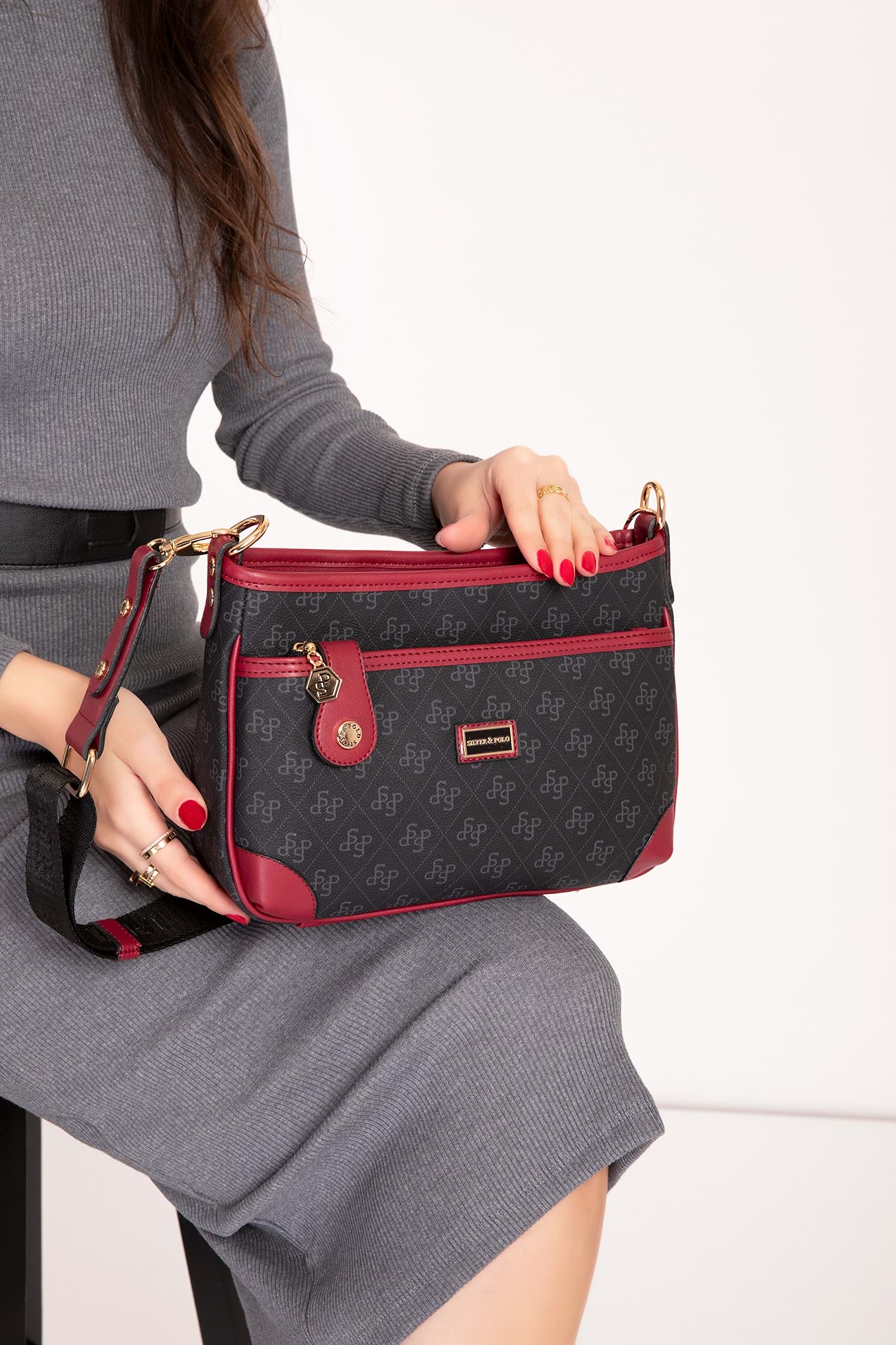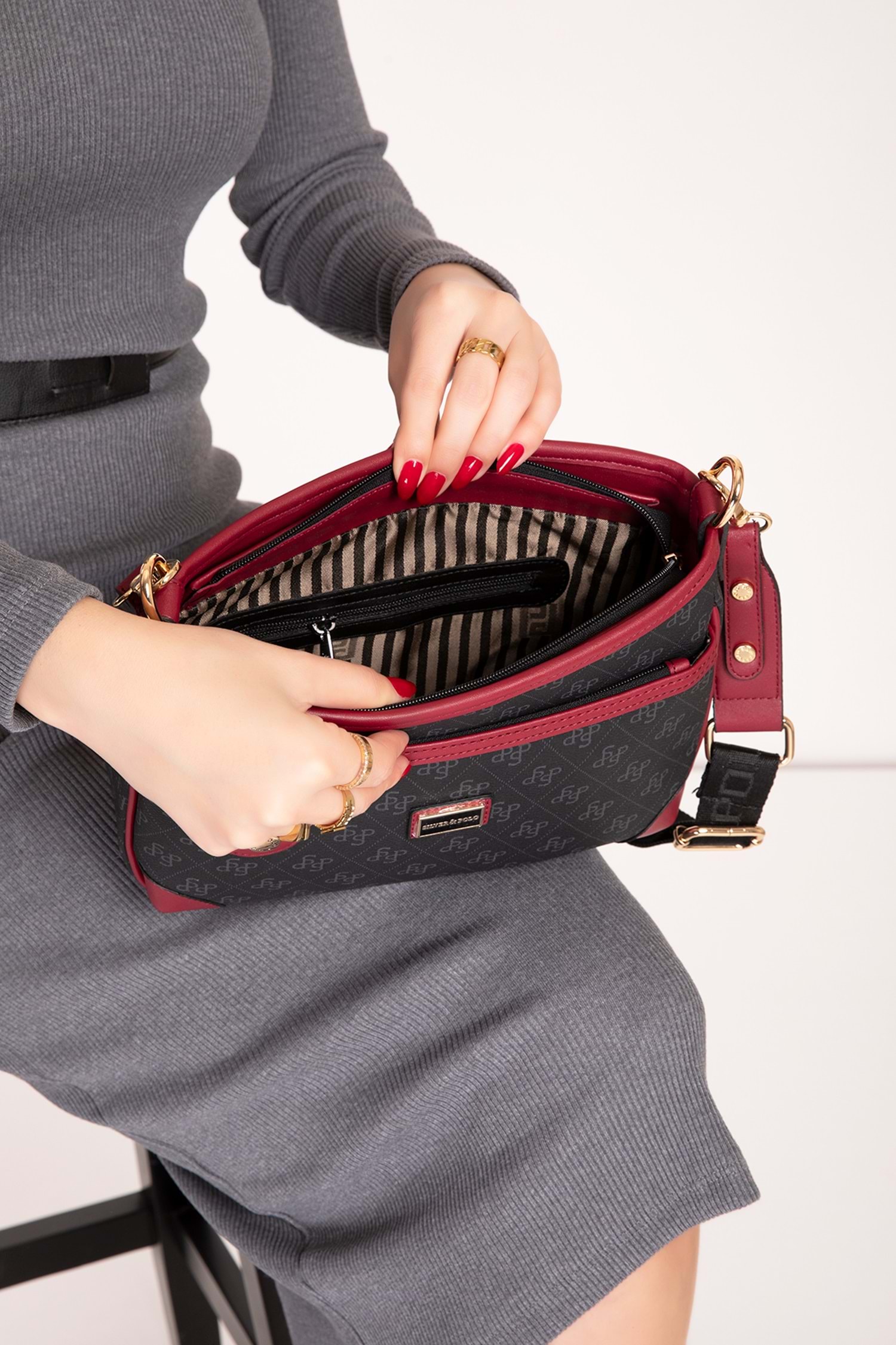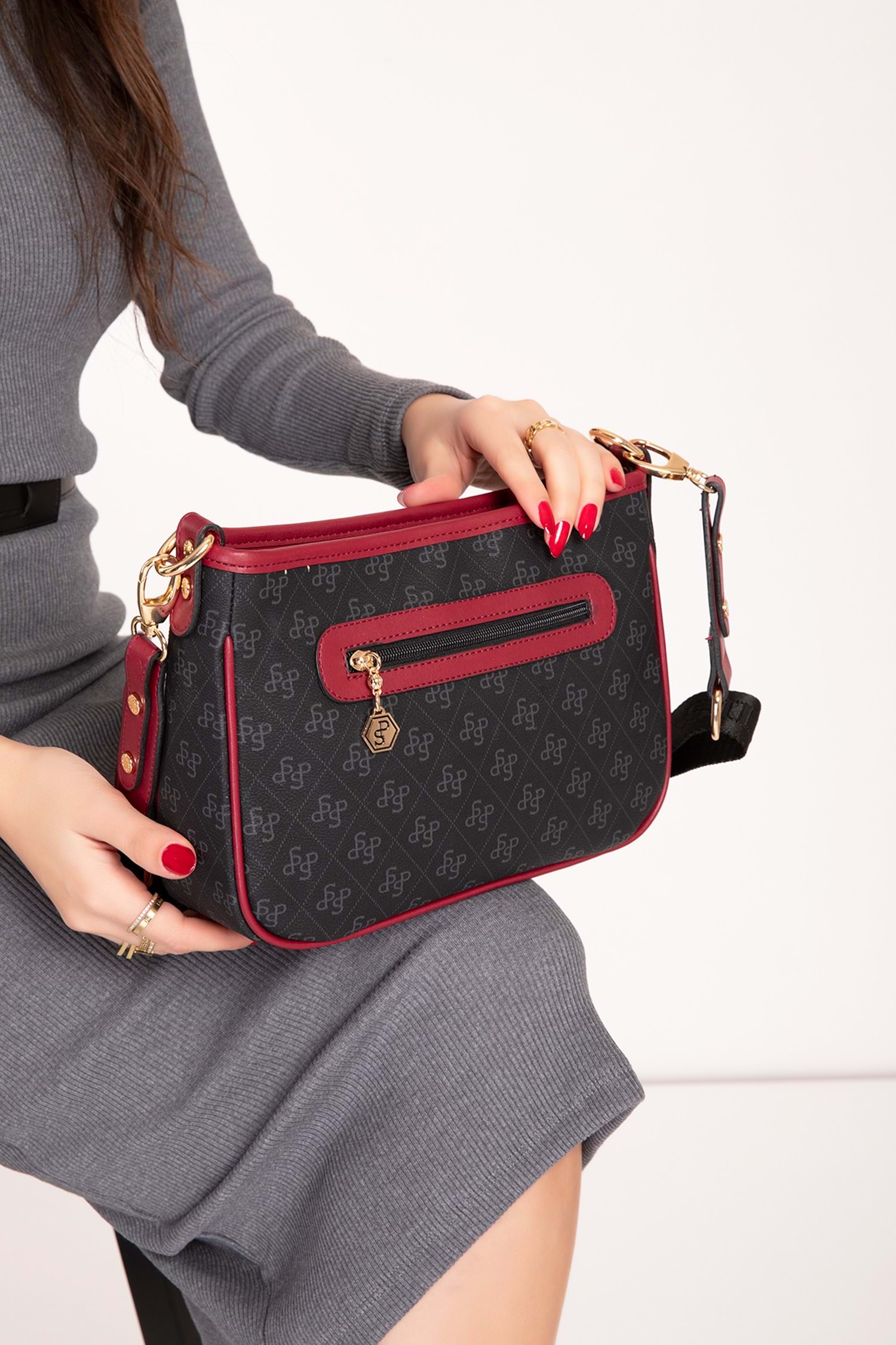 Gondol Kadın Şık Günlük Çapraz Çanta sp.1160 - Siyah-Bordo - TEK EBAT