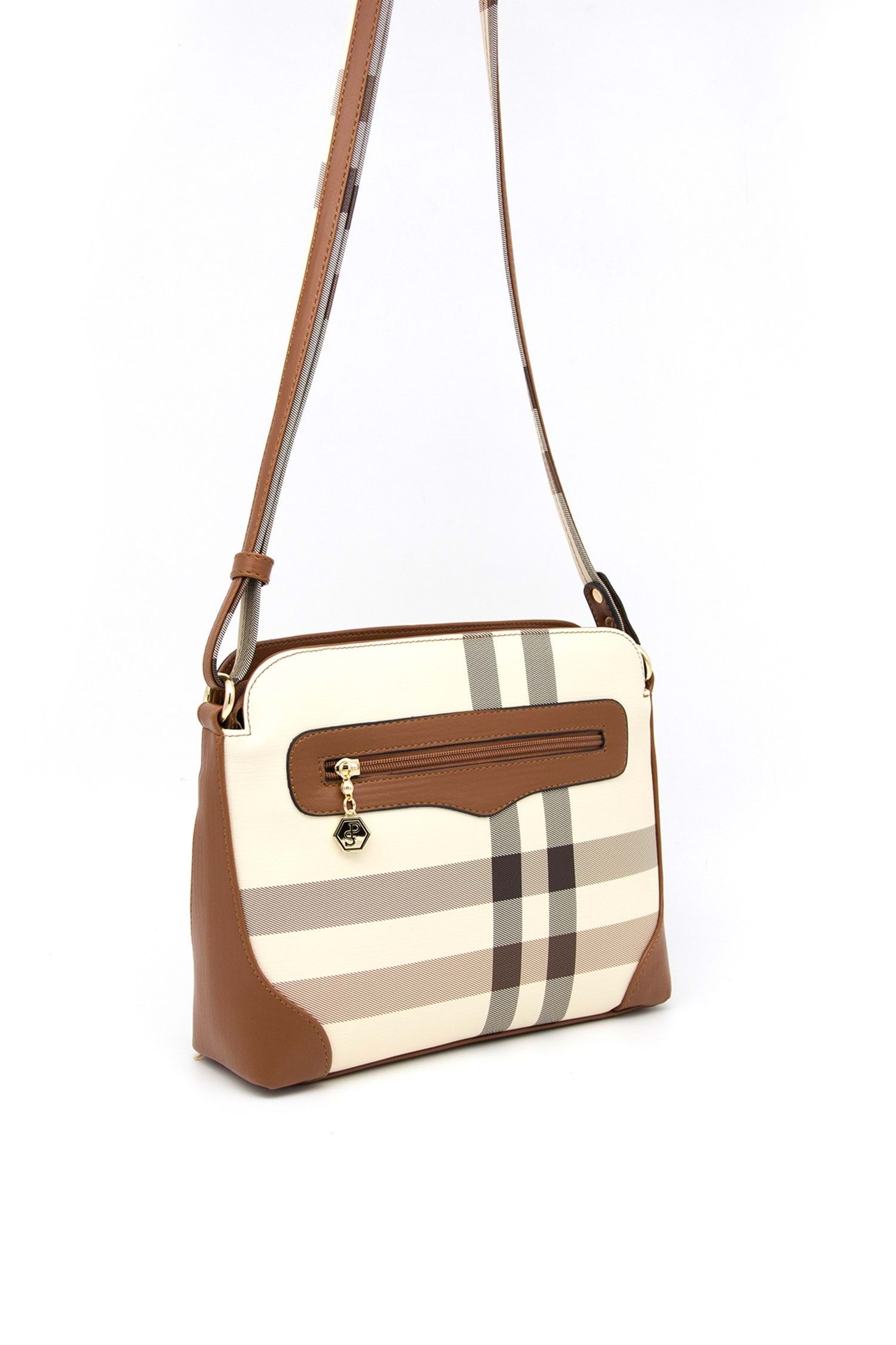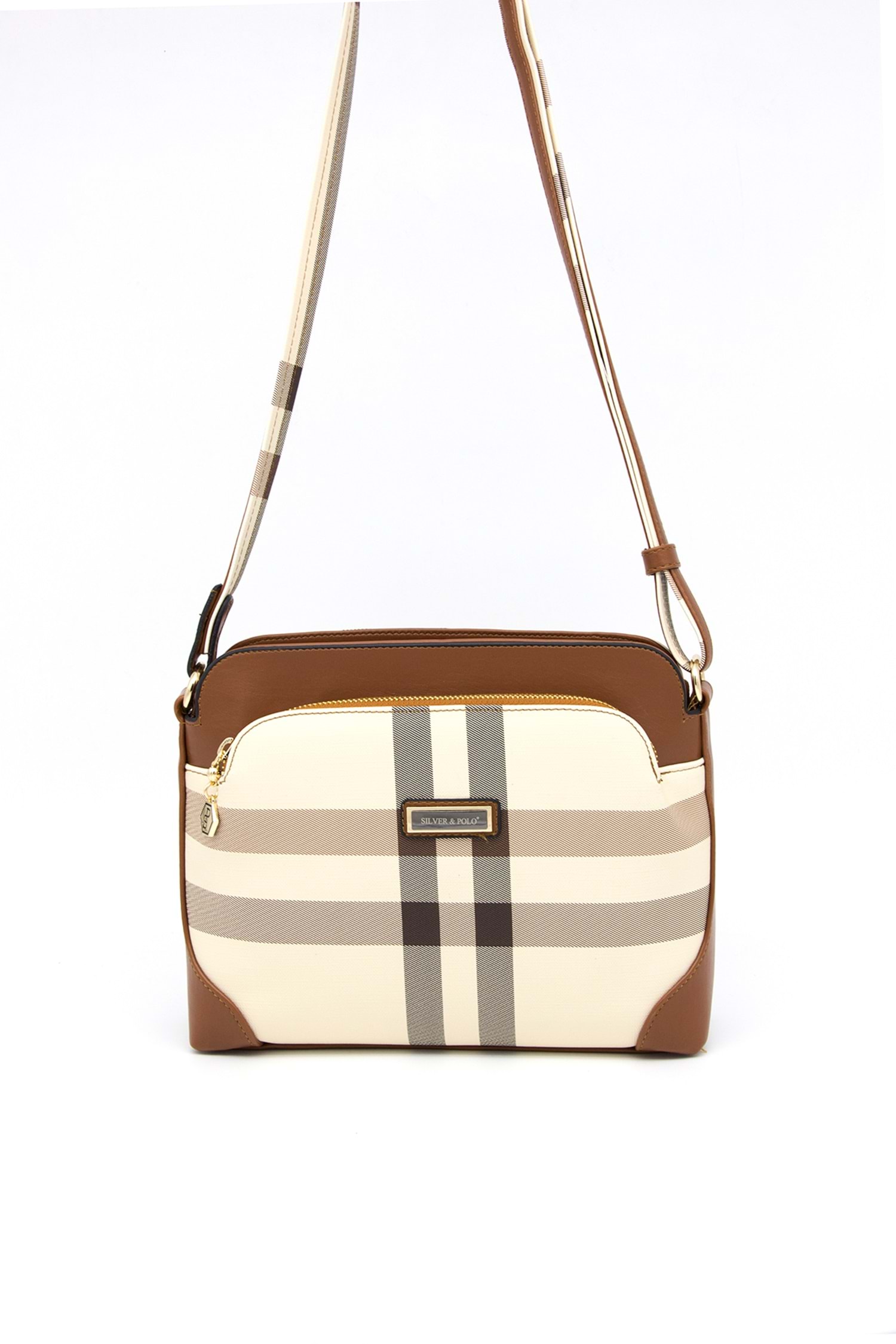 Silver Polo Kadın Tek Bölmeli Ekose Desen Çapraz Çanta sp.364 - Krem Ekose - MK48