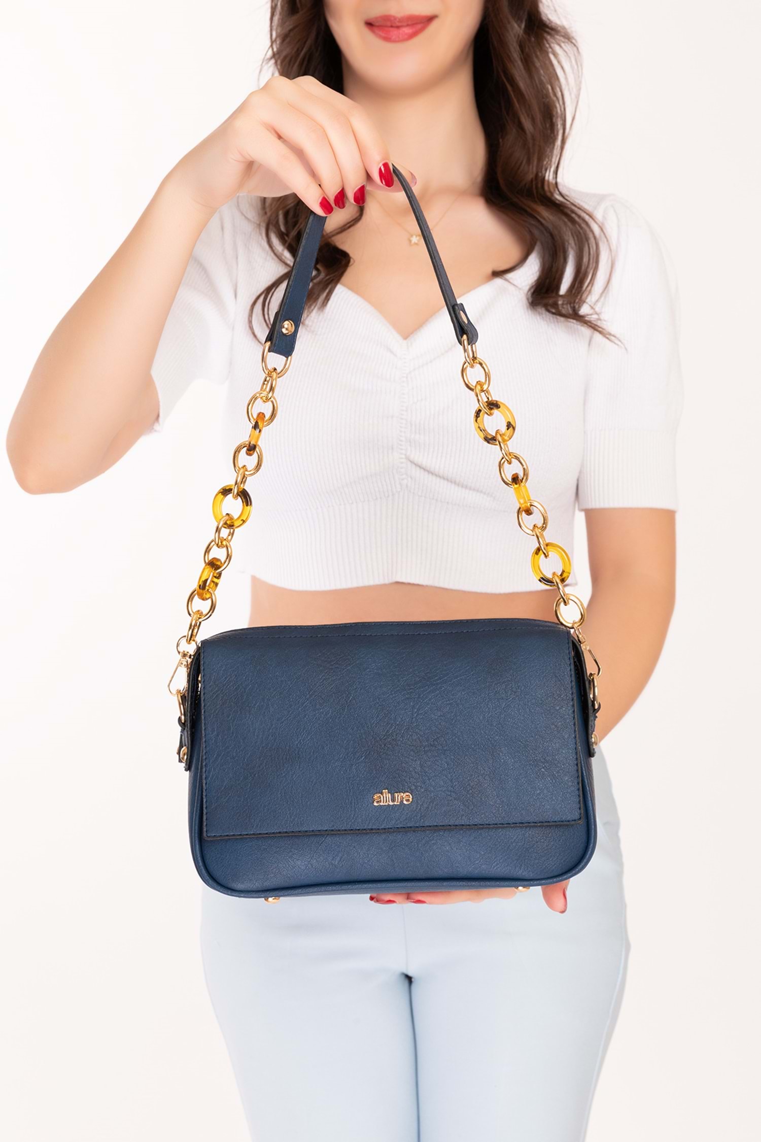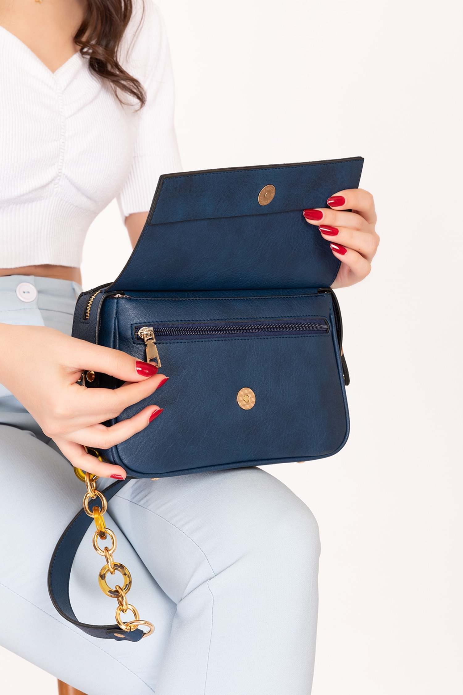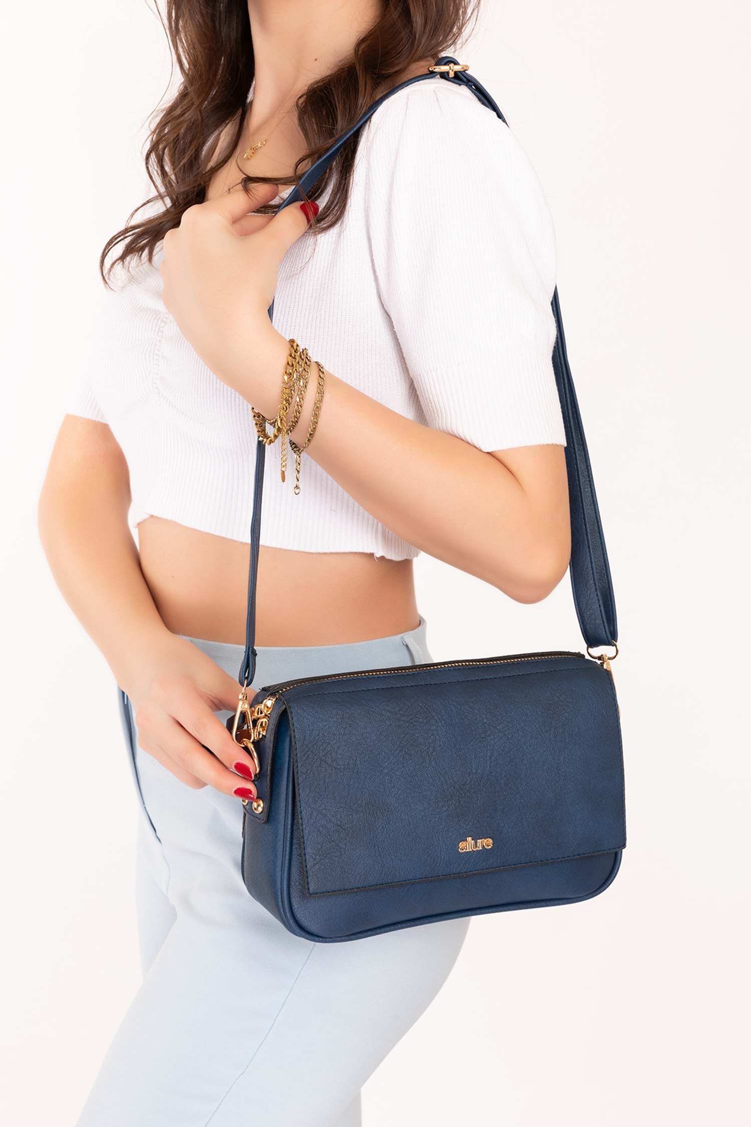 Gondol Kadın Çift Bölmeli El ve Omuz Çantası ald.1153 - Lacivert - TEK EBAT
