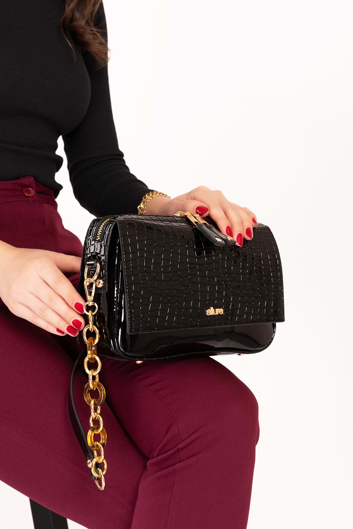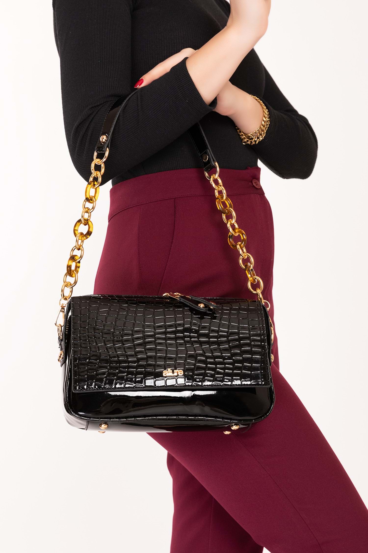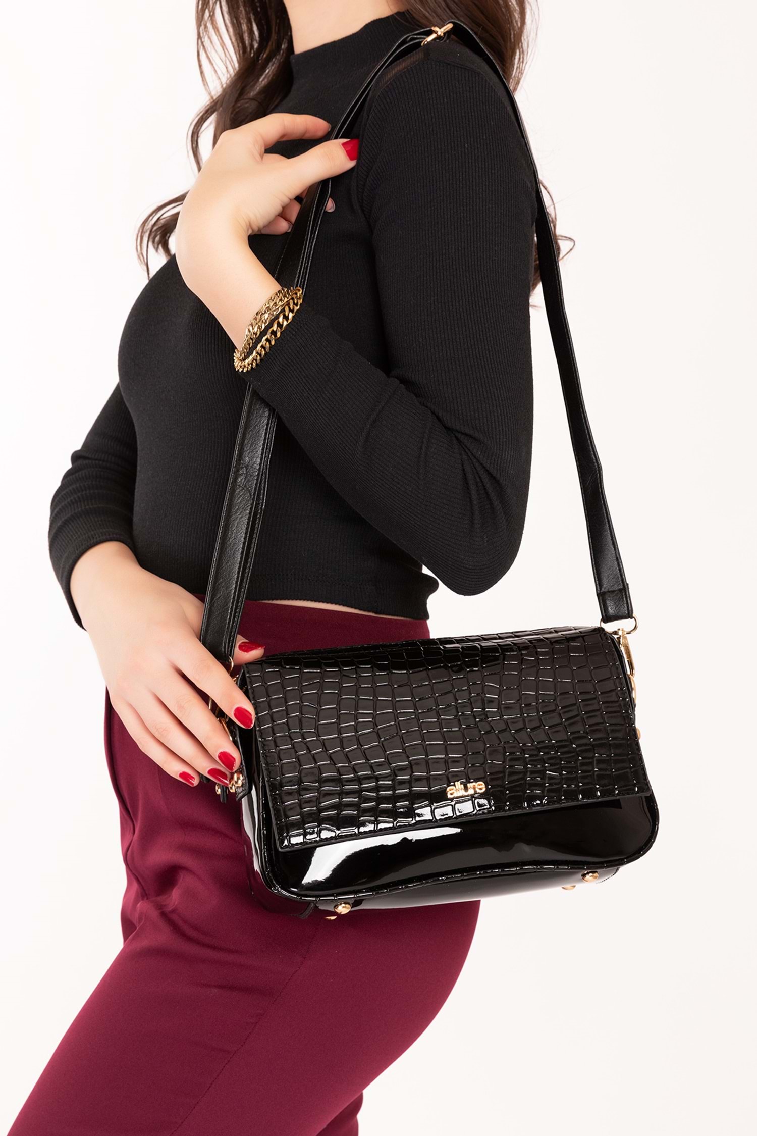 Gondol Kadın Çift Bölmeli El ve Omuz Çantası ald.1153 - Siyah Croco - TEK EBAT