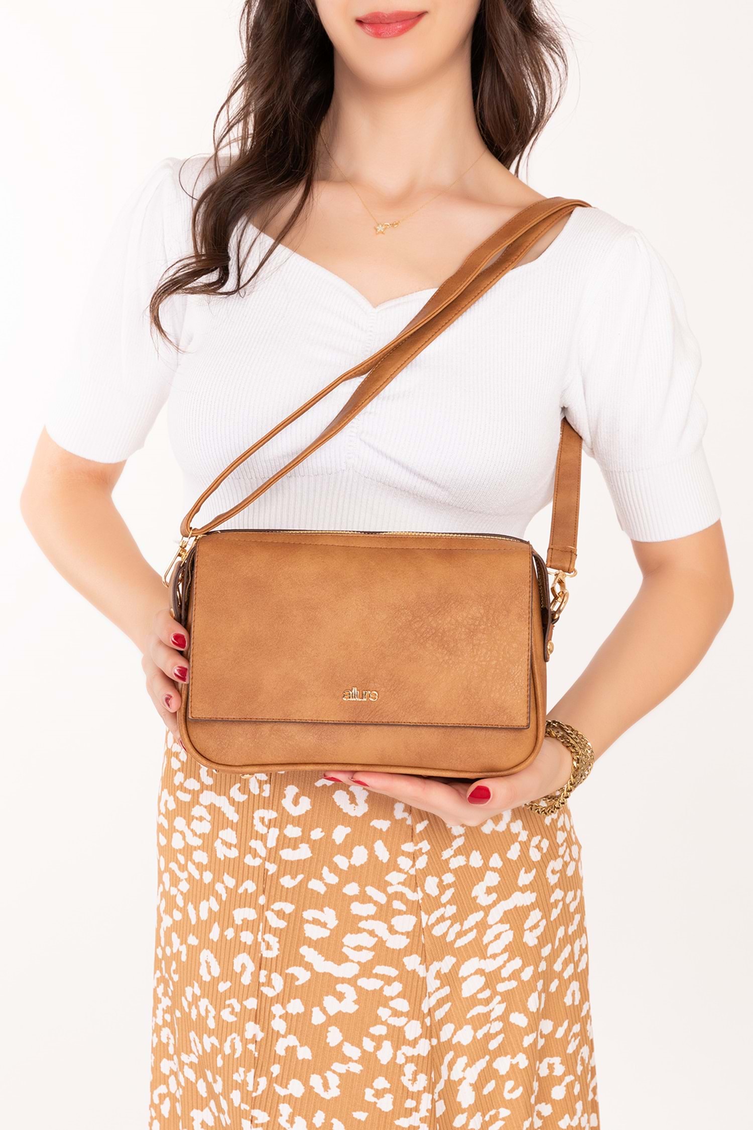 Gondol Kadın Çift Bölmeli El ve Omuz Çantası ald.1153 - Taba - TEK EBAT