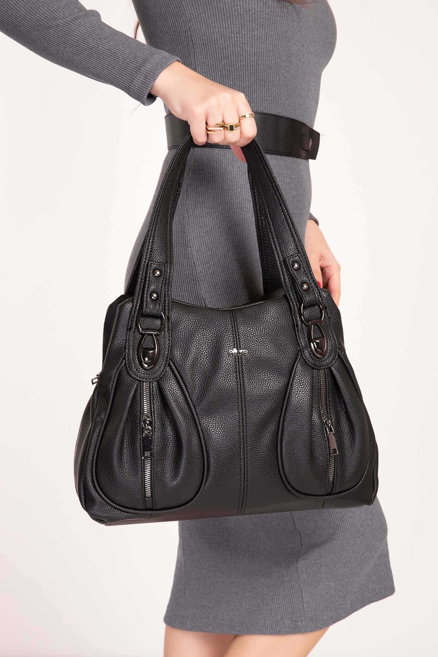 Gondol Kadın Çift Bölmeli El ve Omuz Çantası ald.5012 - Siyah - TEK EBAT