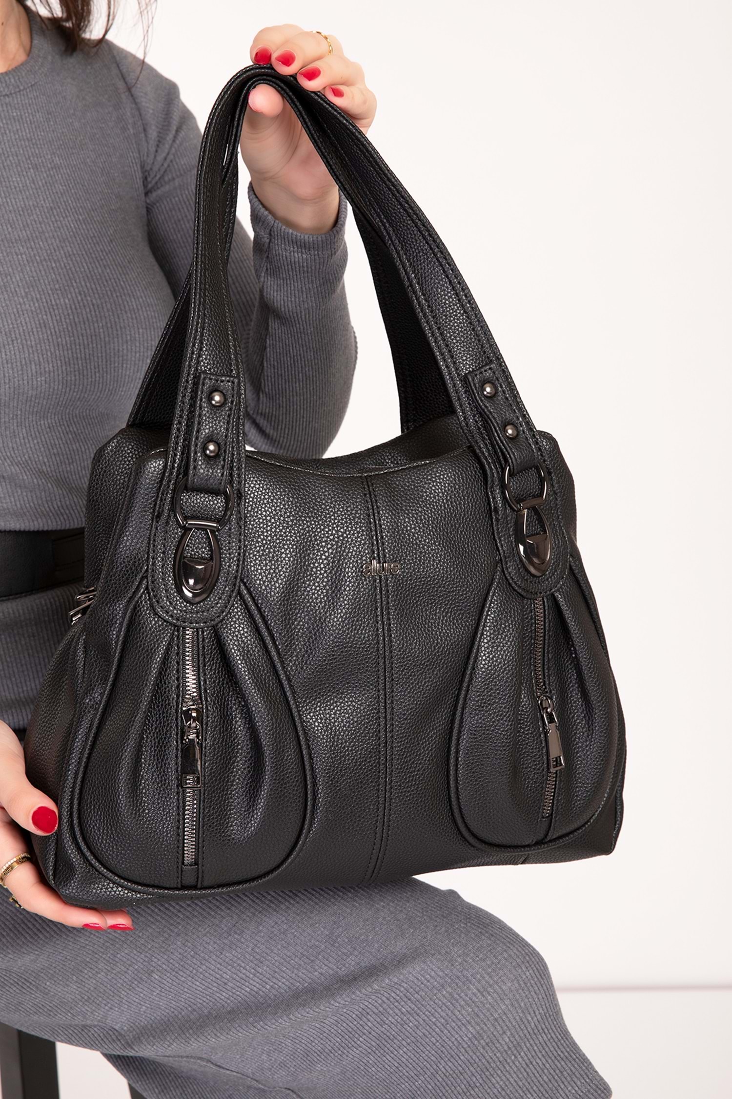 * Taşıma Şekli: El ve Omuz * Eni:32 cm * Boyu:25 cm * Derinliği:12 cm * Materyal:Suni Deri * Yardımcı Materyal:Mat Suni Deri * Dış Materyal : Suni Deri * İç Materyal:%100 Dokuma Astarlı * Doku:Yumuşak * Askı Özellik:Ayarlanabilir Uzun Askı Mevcut * Kapama Detay:Fermuarlı