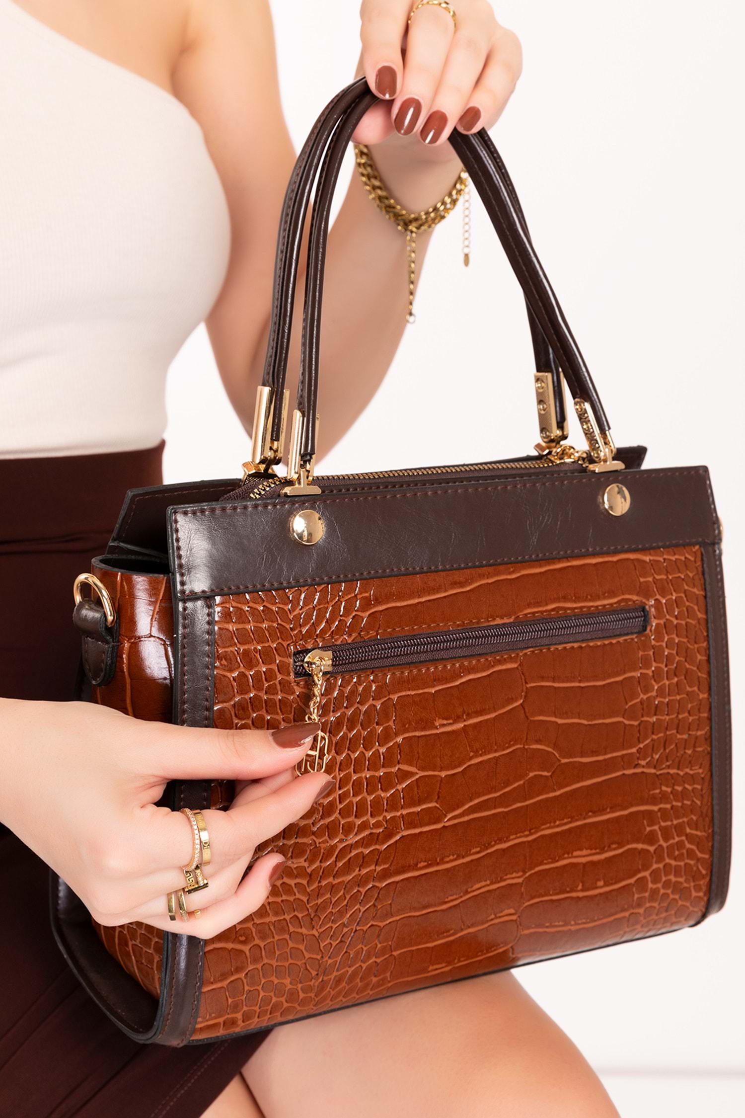 * Taşıma Şekli: El ve Omuz Çanta * Genişlik : 39 cm * Boyu :23 cm * Derinliği: 9 cm * Materyal:Suni Deri * Dış Materyal : Suni Deri * İç Materyal:%100 Dokuma Astarlı * Doku:Yumuşak * Askı Özellik:Ayarlanabilir Uzun Askı Mevcut * Kapama Detay:Fermuarlı