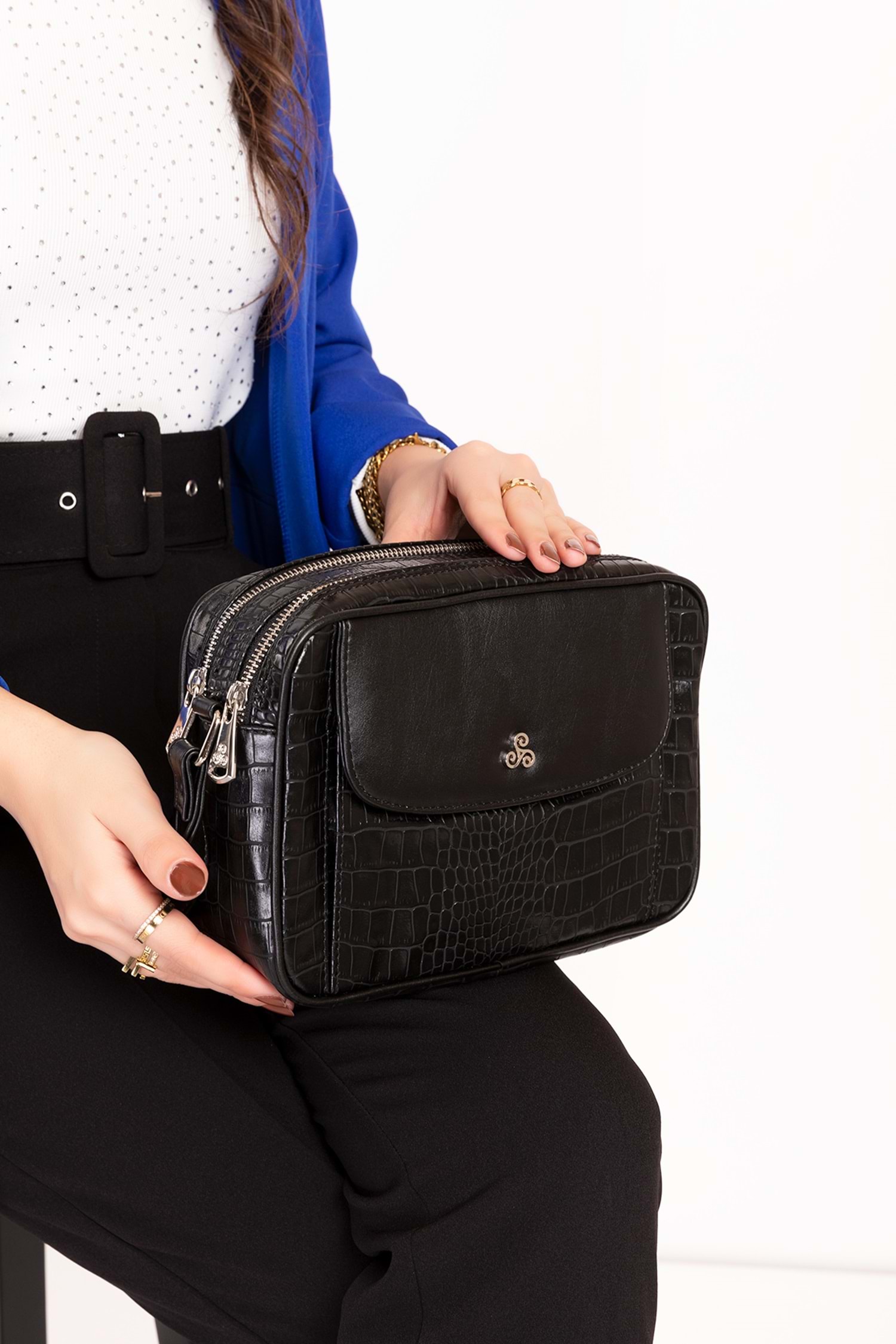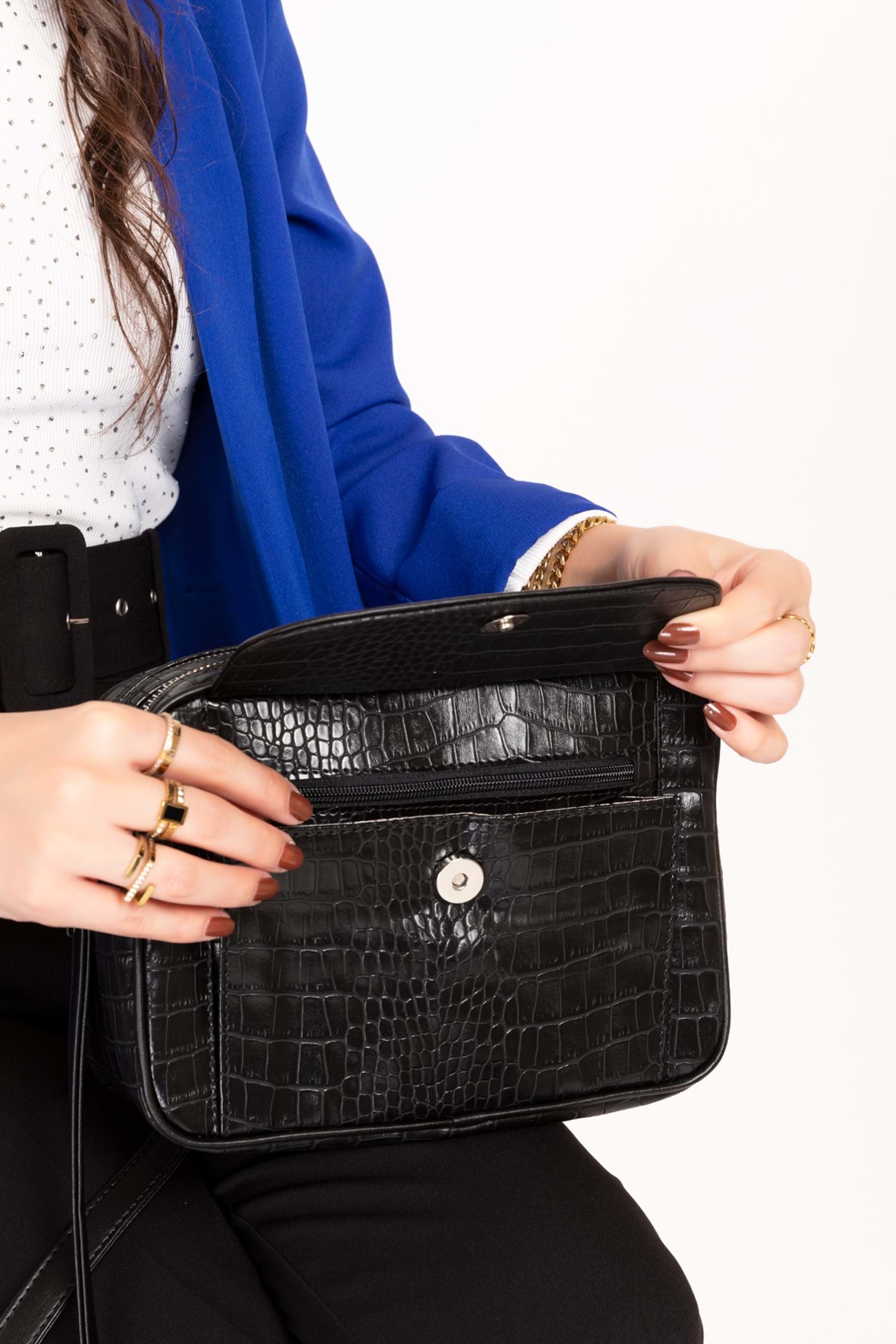 Gondol Yılan Deri Baskılı Şık Omuz Çanta ysm.1984 - Siyah Croco - TEK EBAT