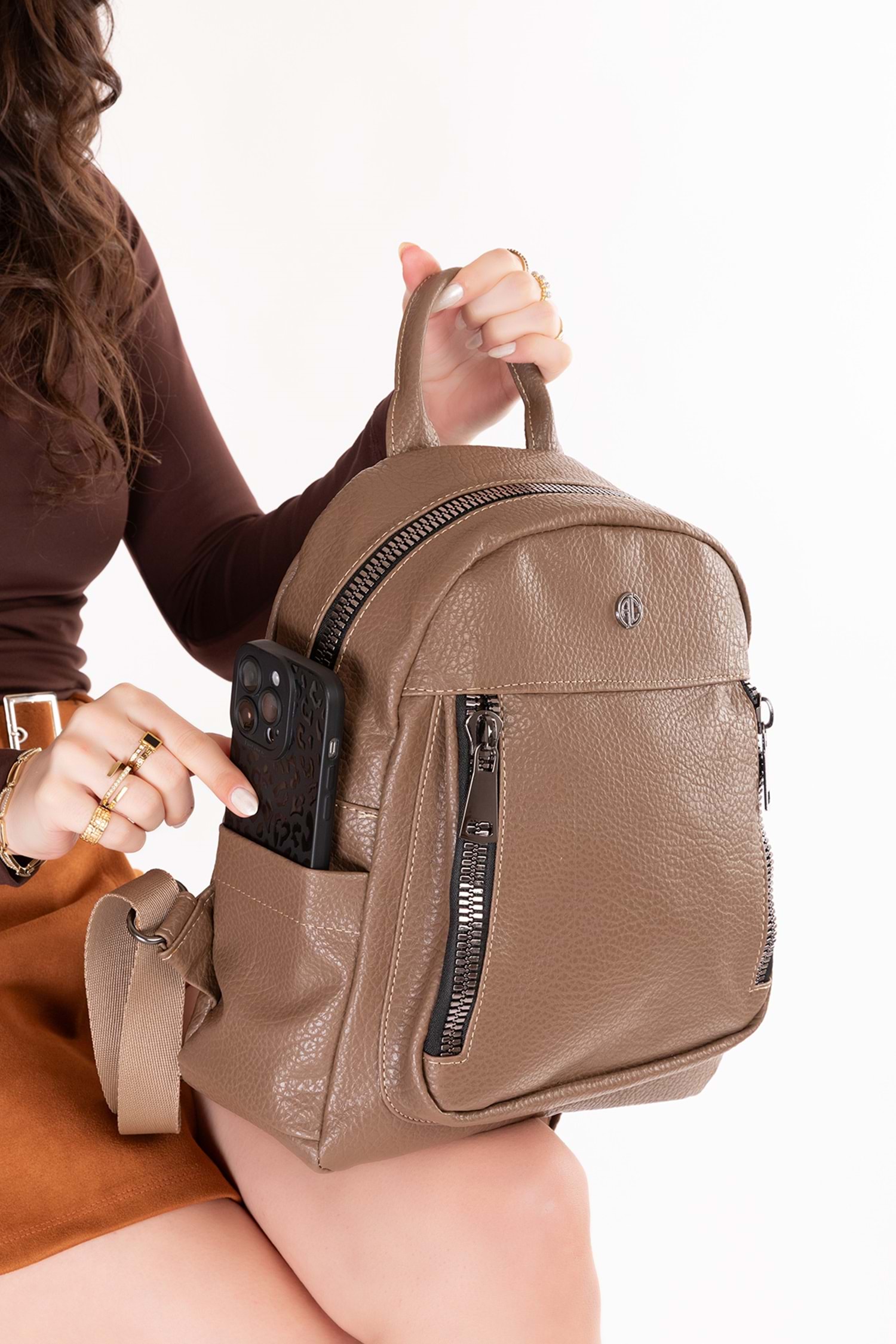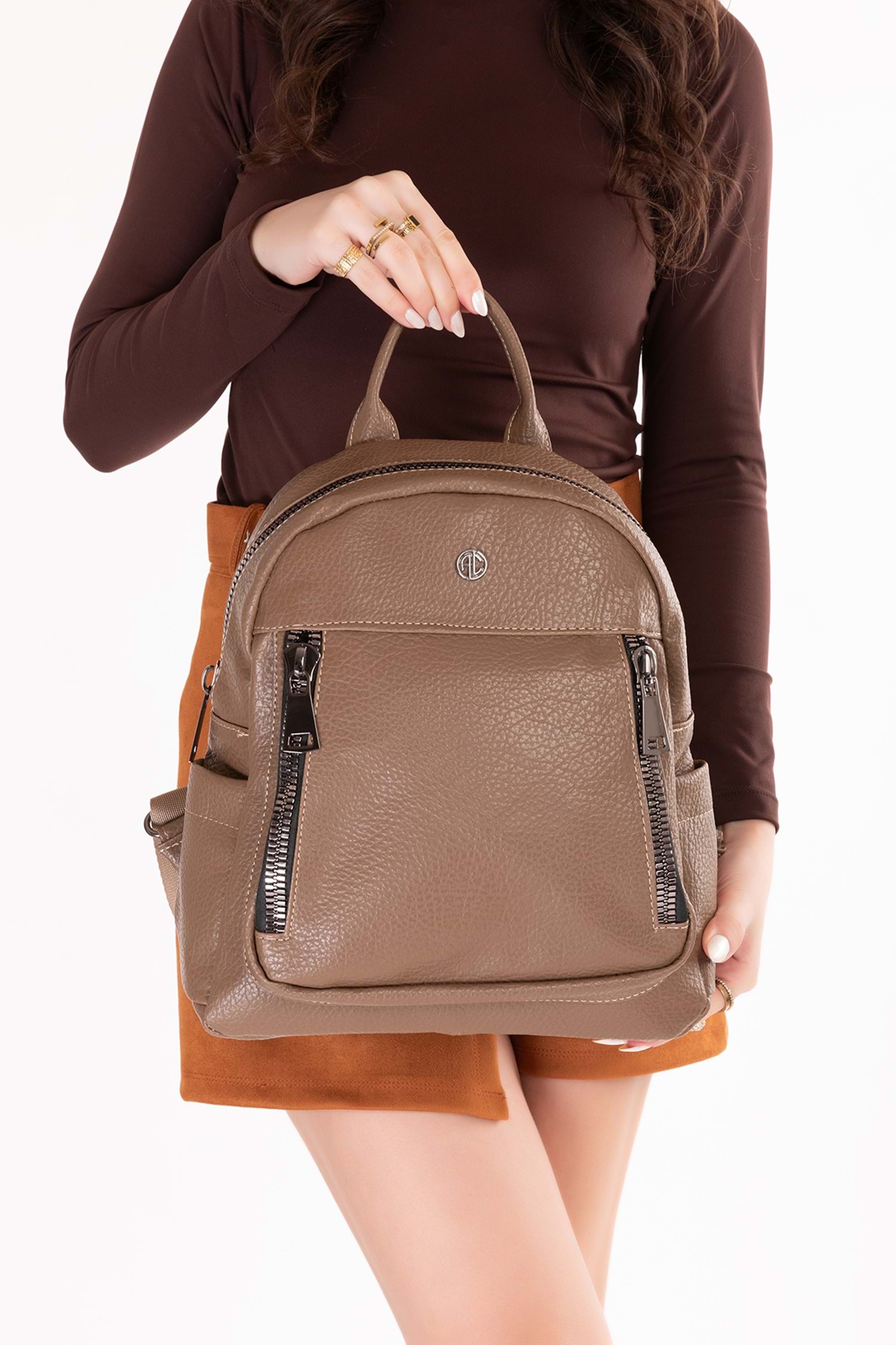 * Taşıma Şekli: El ve Sırt * Eni:32 cm * Boyu:32 cm * Derinliği:12 cm * Materyal:Suni Deri * Yardımcı Materyal:Mat Suni Deri * Dış Materyal : Suni Deri * İç Materyal:%100 Dokuma Astarlı * Doku:Yumuşak * Askı Özellik:Ayarlanabilir Uzun Askı Mevcut * Kapama Detay:Fermuarlı
