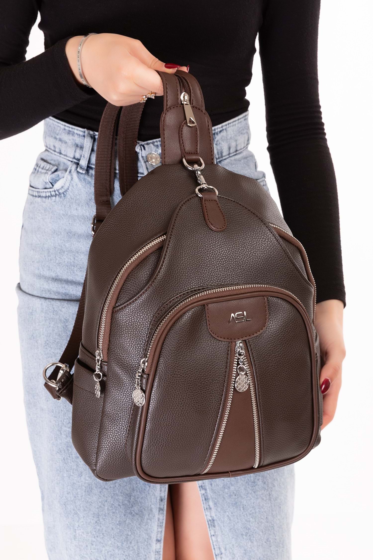 Gondol Kadın Taş Detaylı Günlük Sırt Çantası ald.80728 - Kahverengi - TEK EBAT